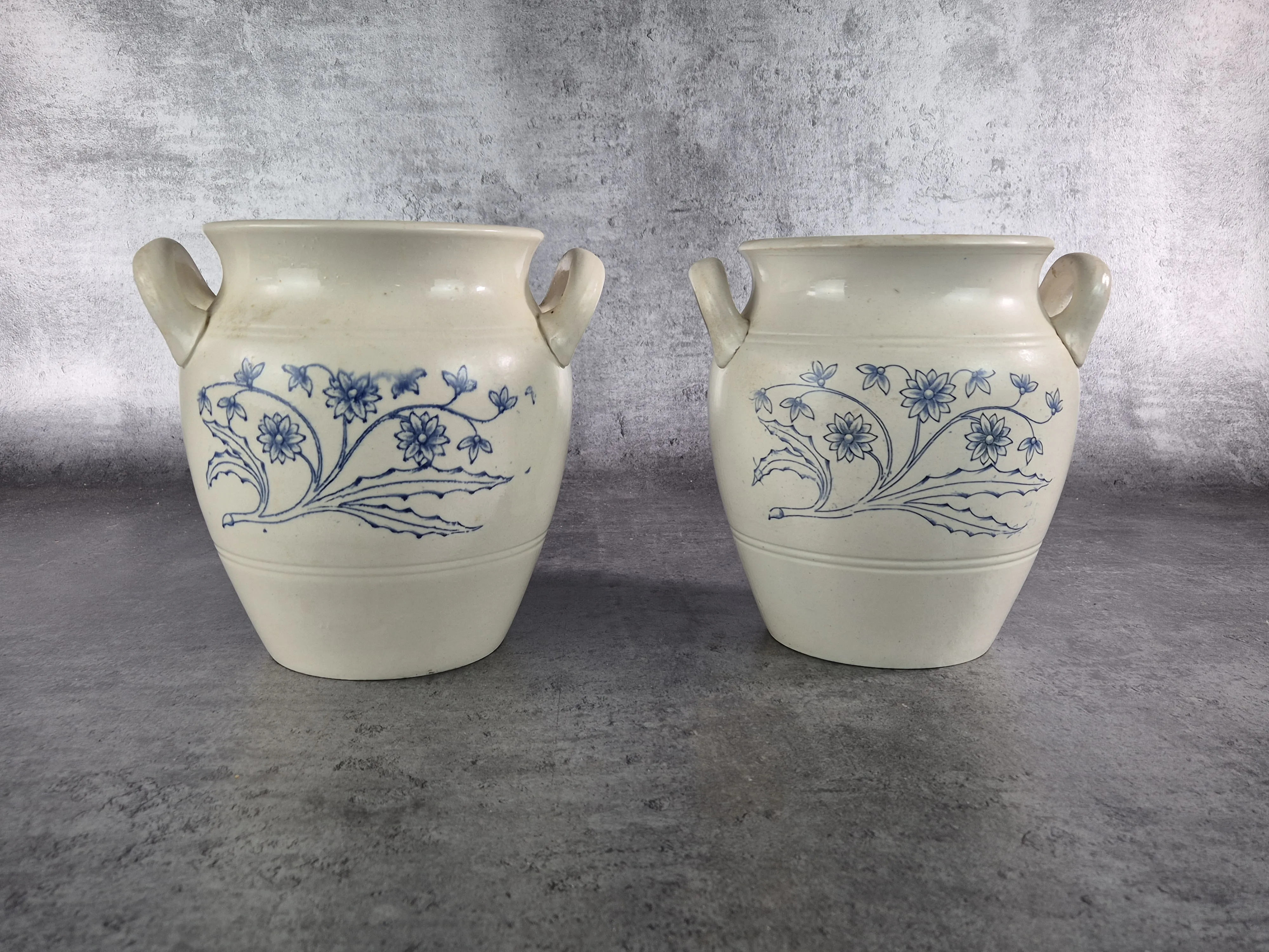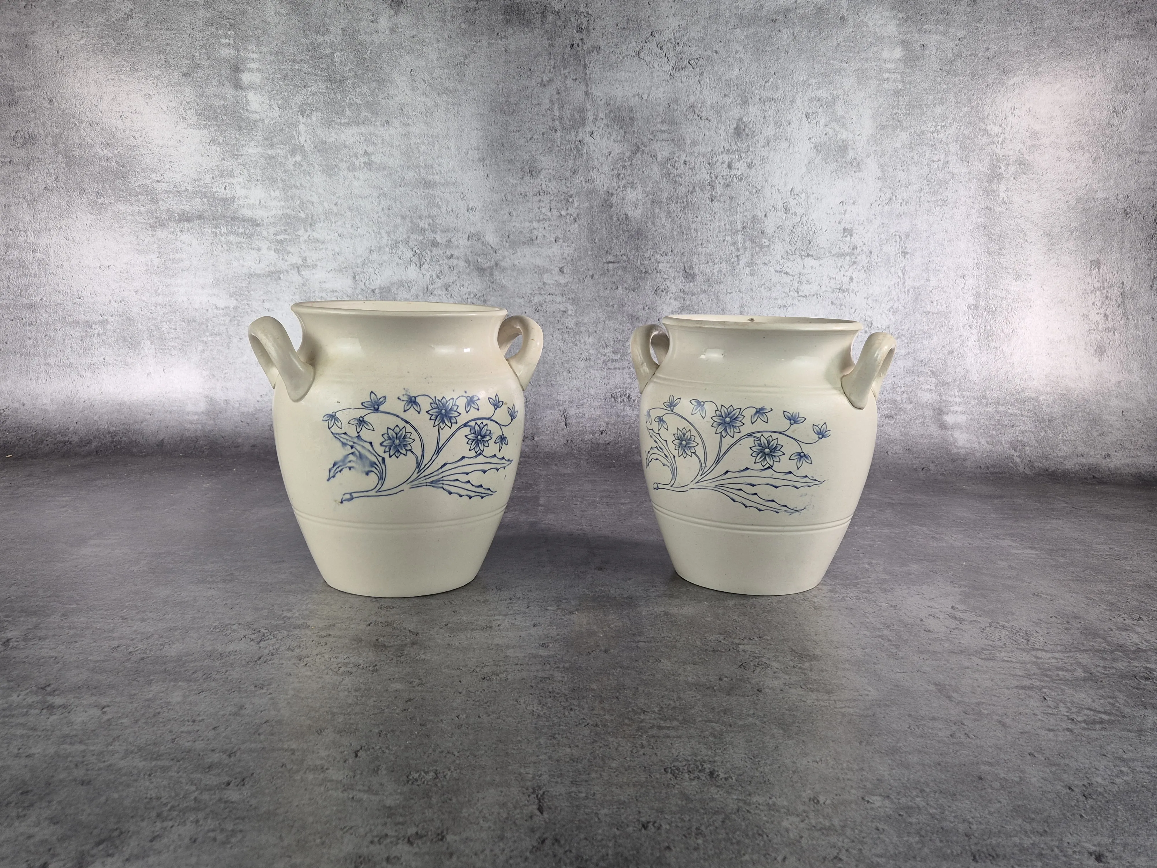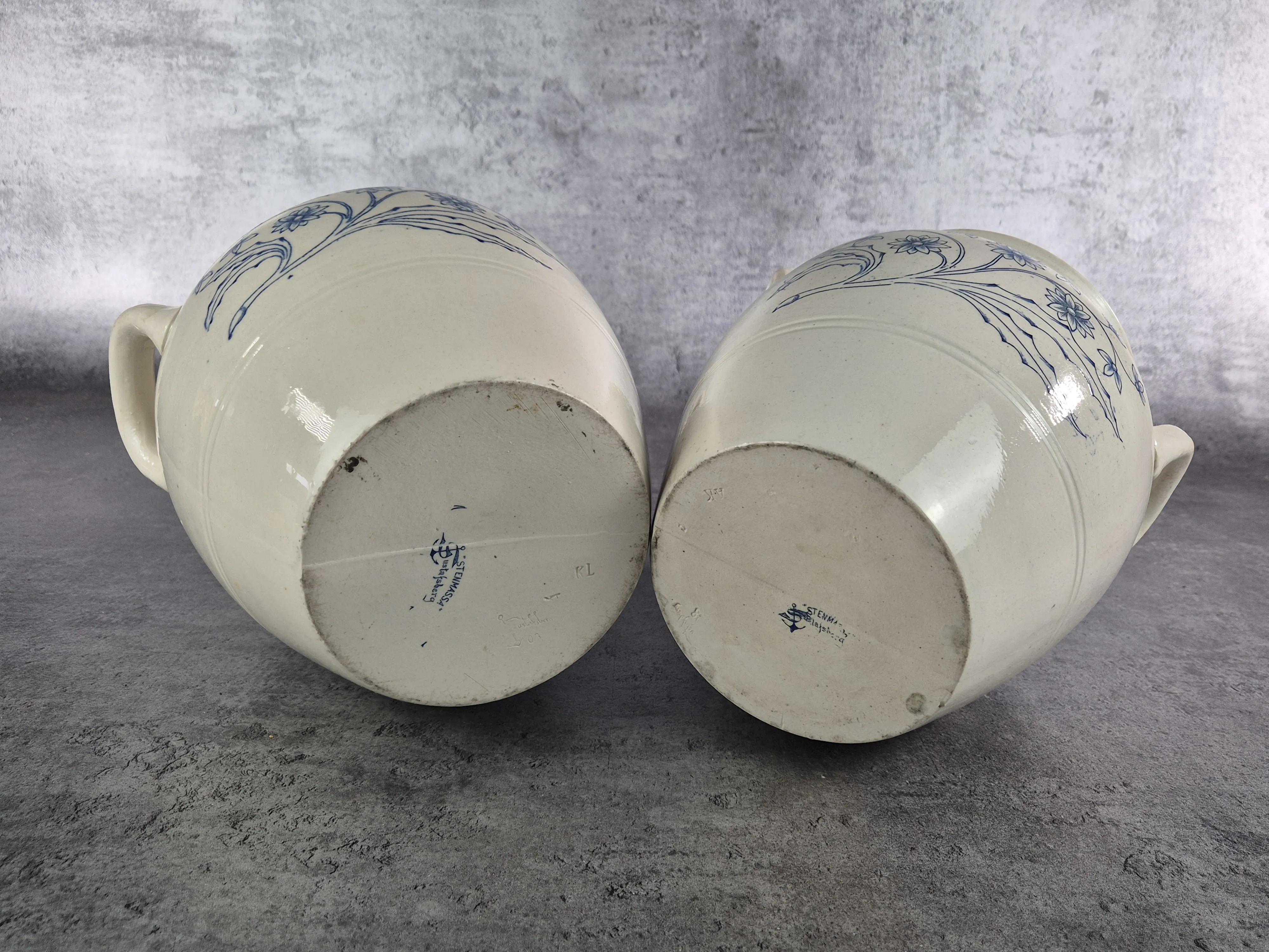 Klassiska Blå/vita krus märkt Gustavsberg. Höjd: 23cm. Bruksslitage