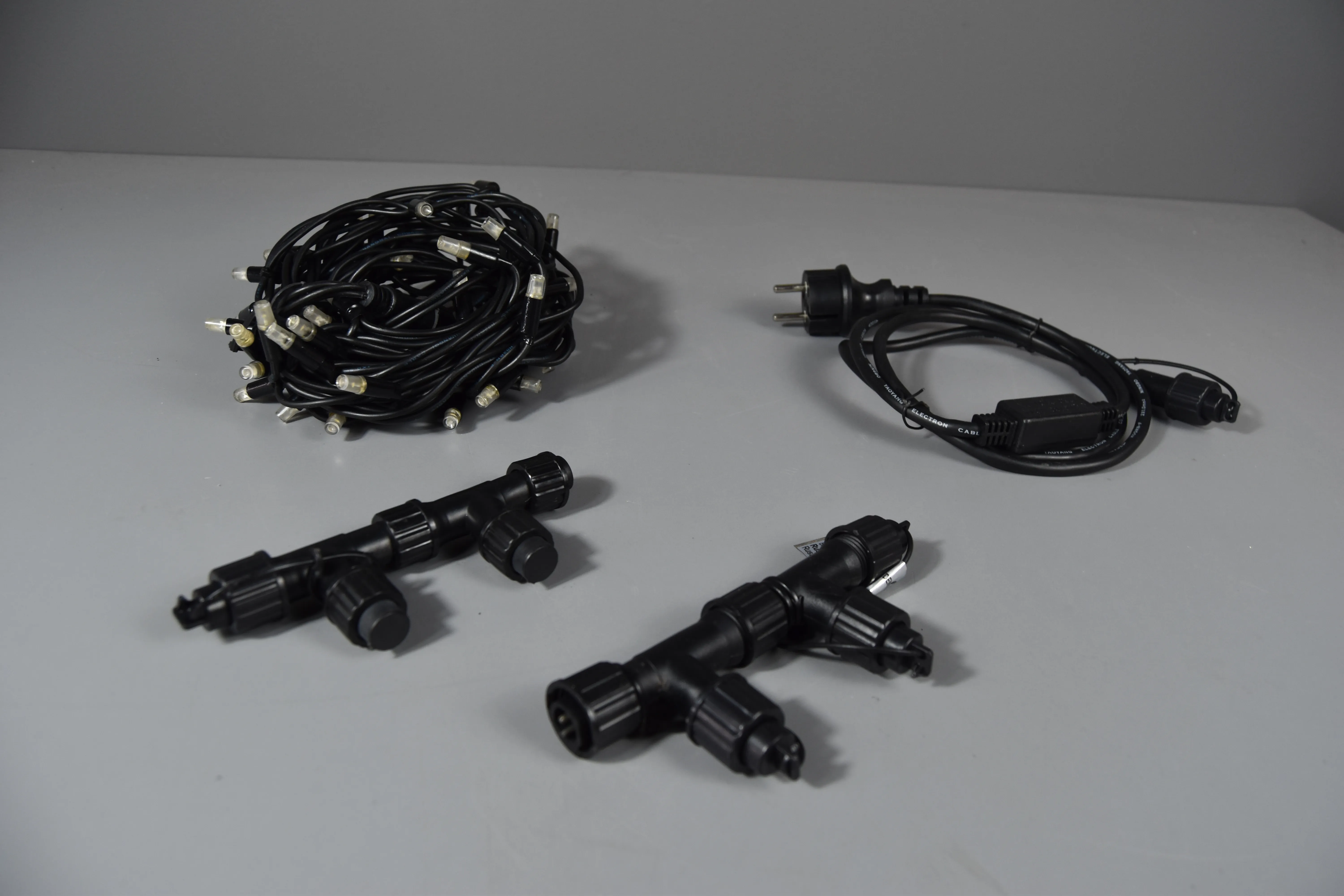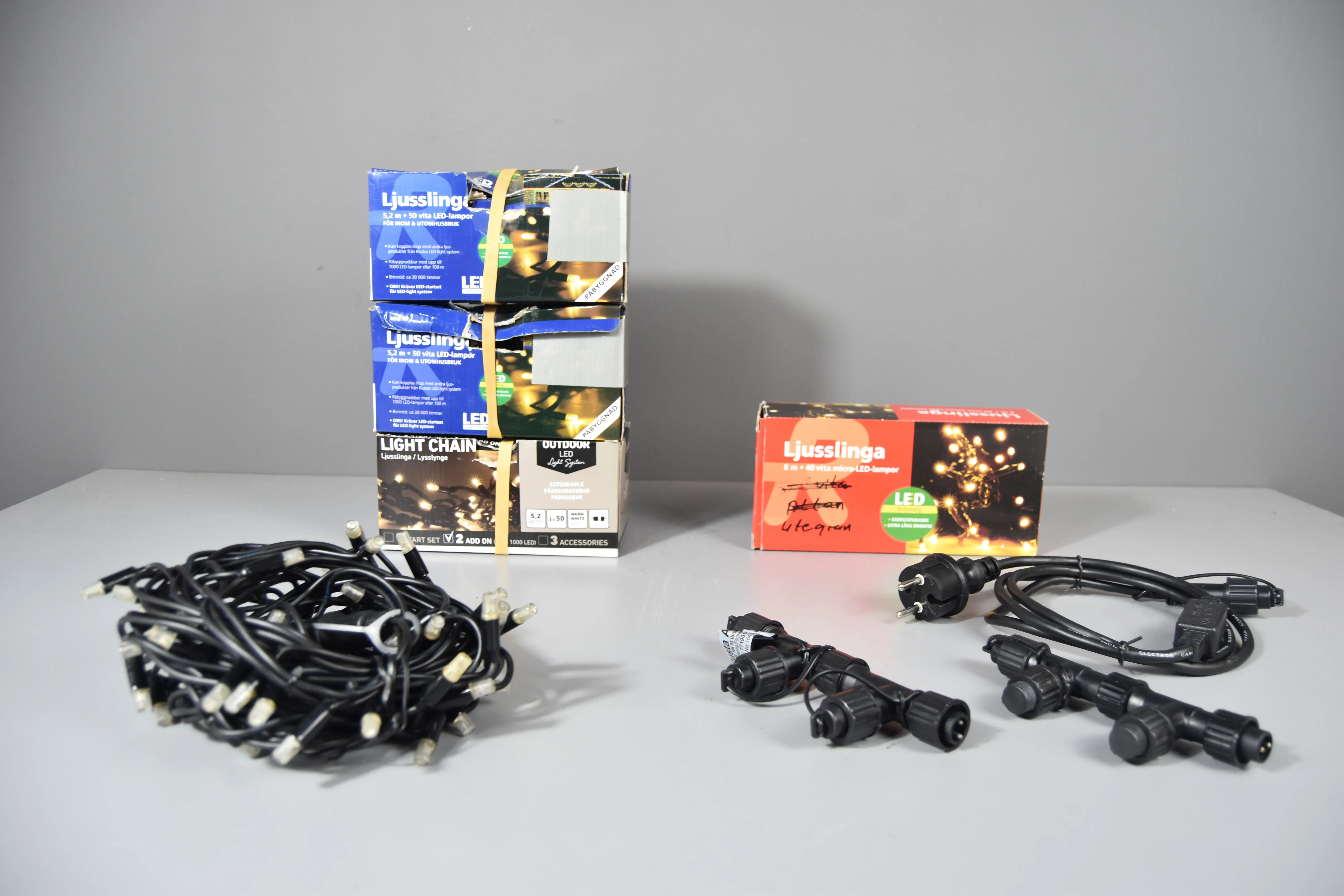 Ca 230 ledlampor. Komplett med anslutningssladd och förgreningar. Testad - 12/11-25 - fungerade vid testtillfälle. Funktionsgaranti lämnas ej.