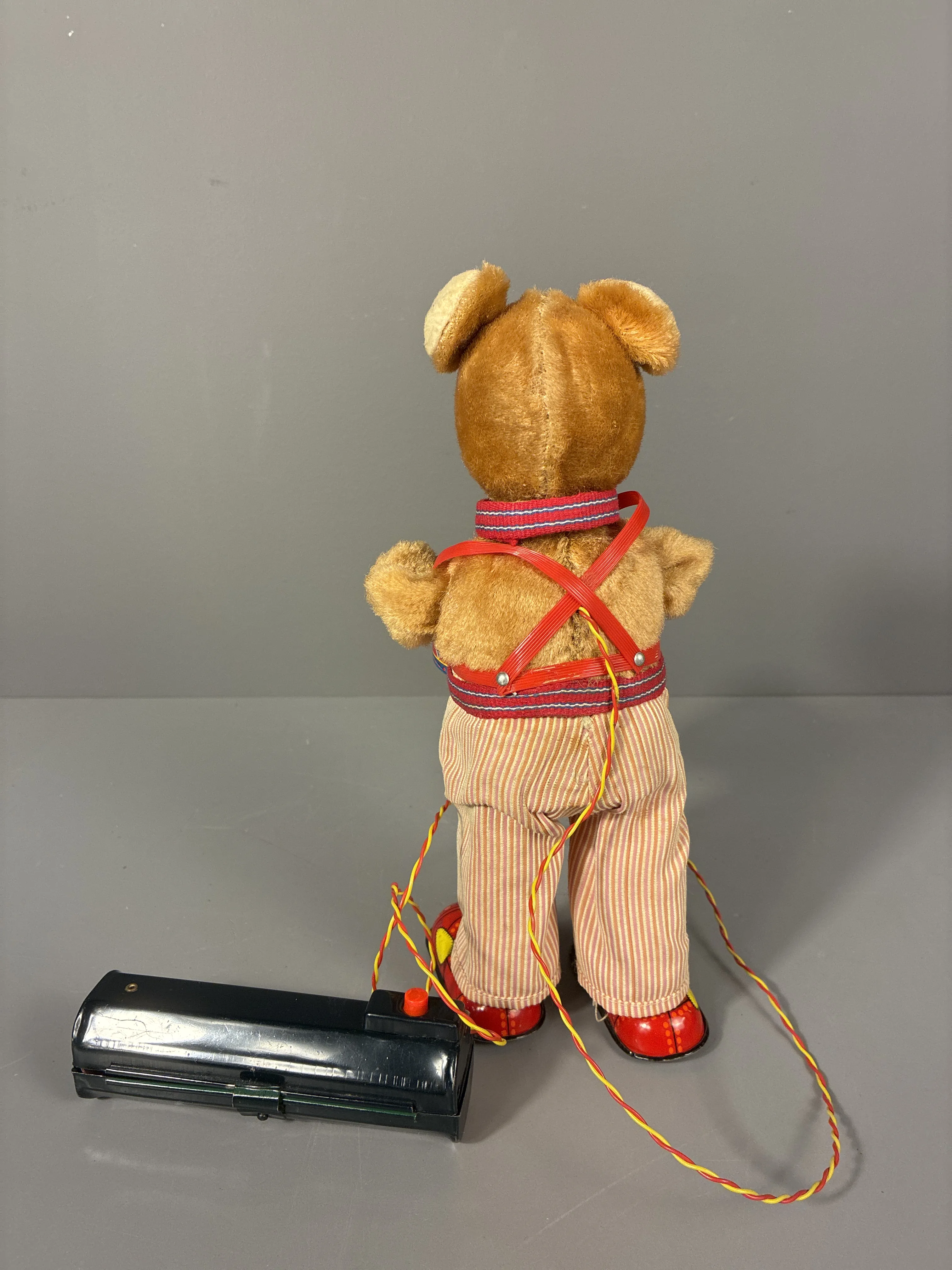 Nalle med trumma. Japan 1900-tal. Ej funktionstestad, Åldersslitage. Höjd: 28cm.