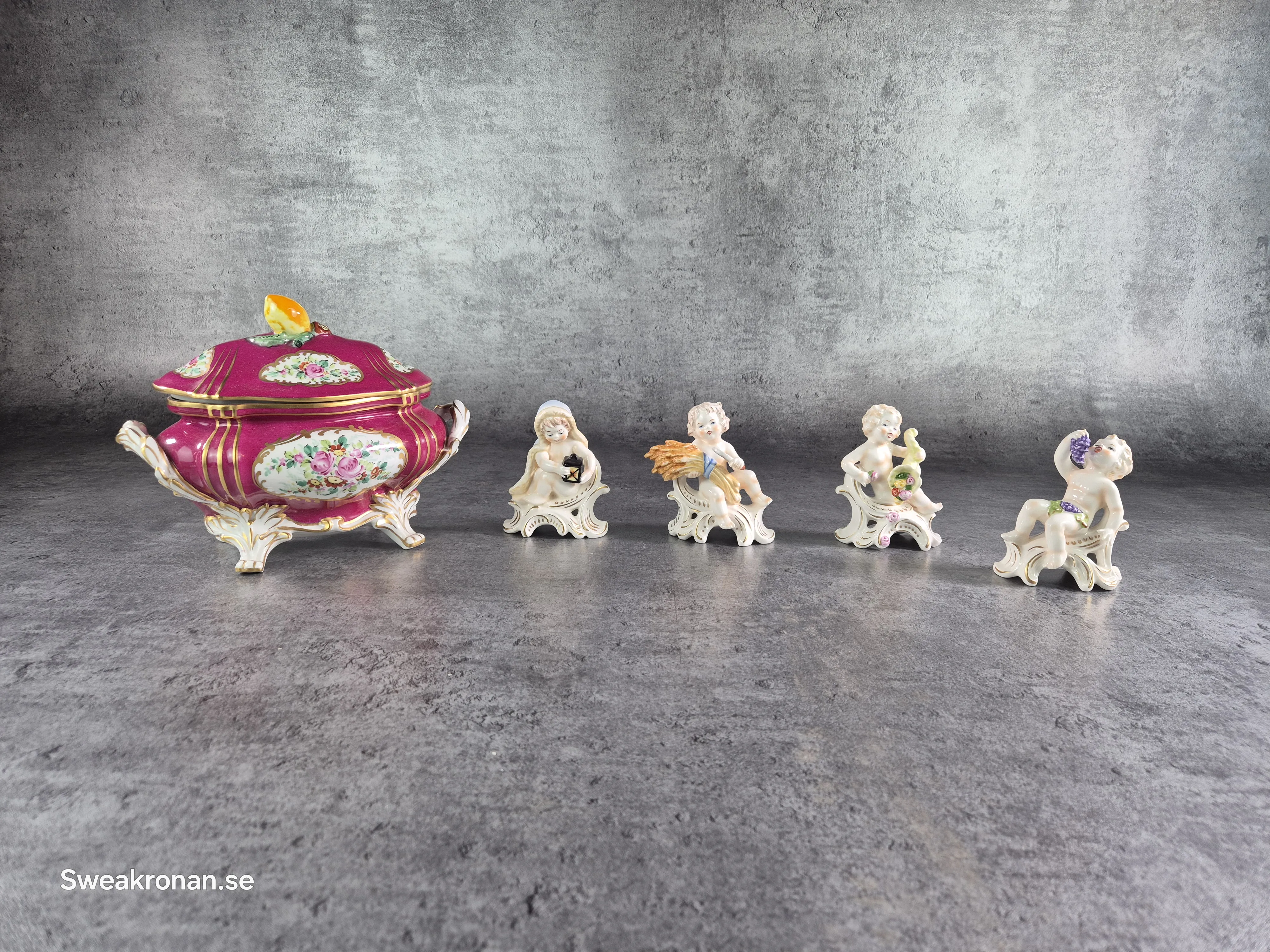 Lockskål, Frankrike och 4st Figuriner, Goebel.