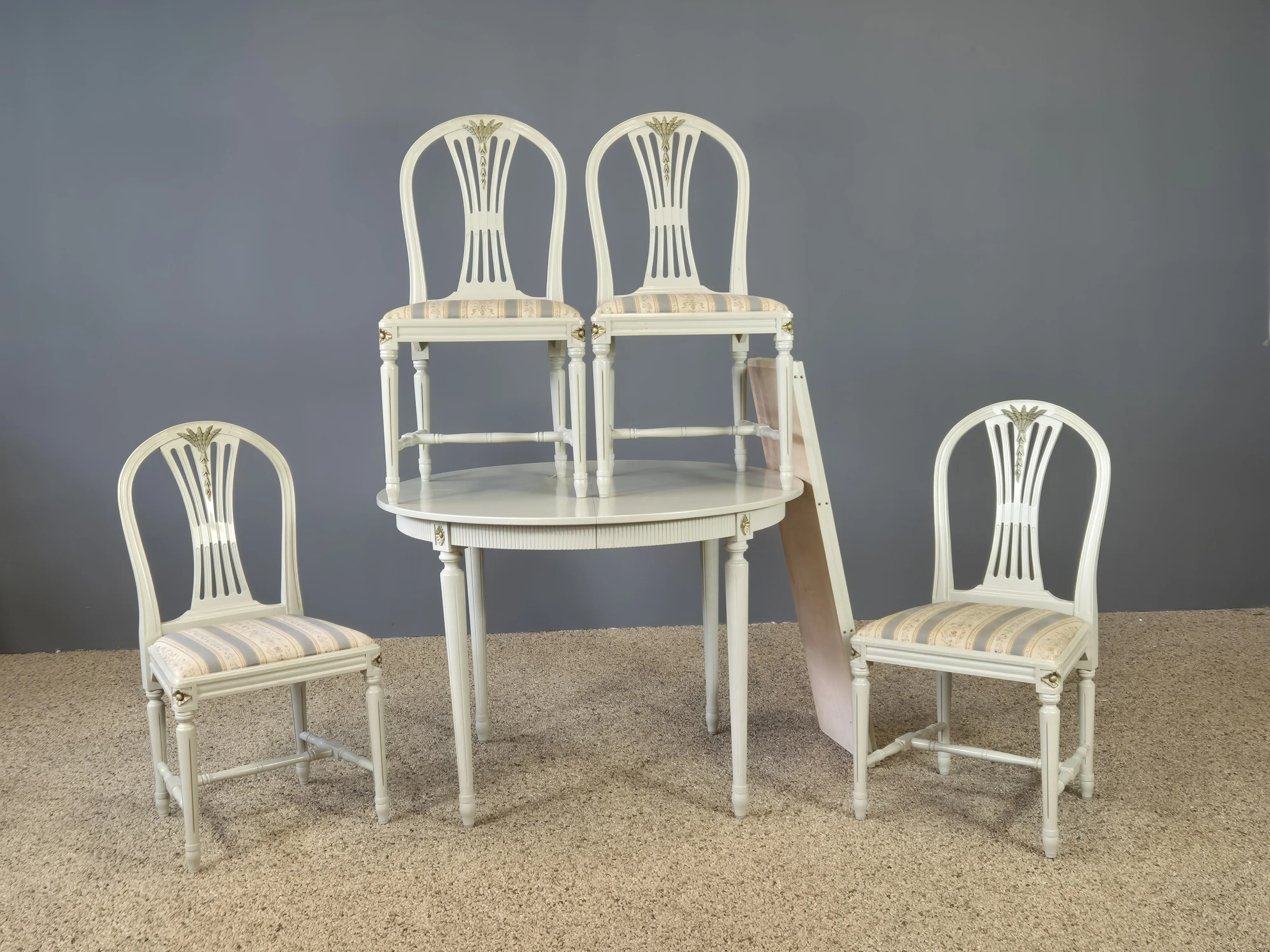 237.Matgrupp, bord och fyra stolar, gustaviansk stil