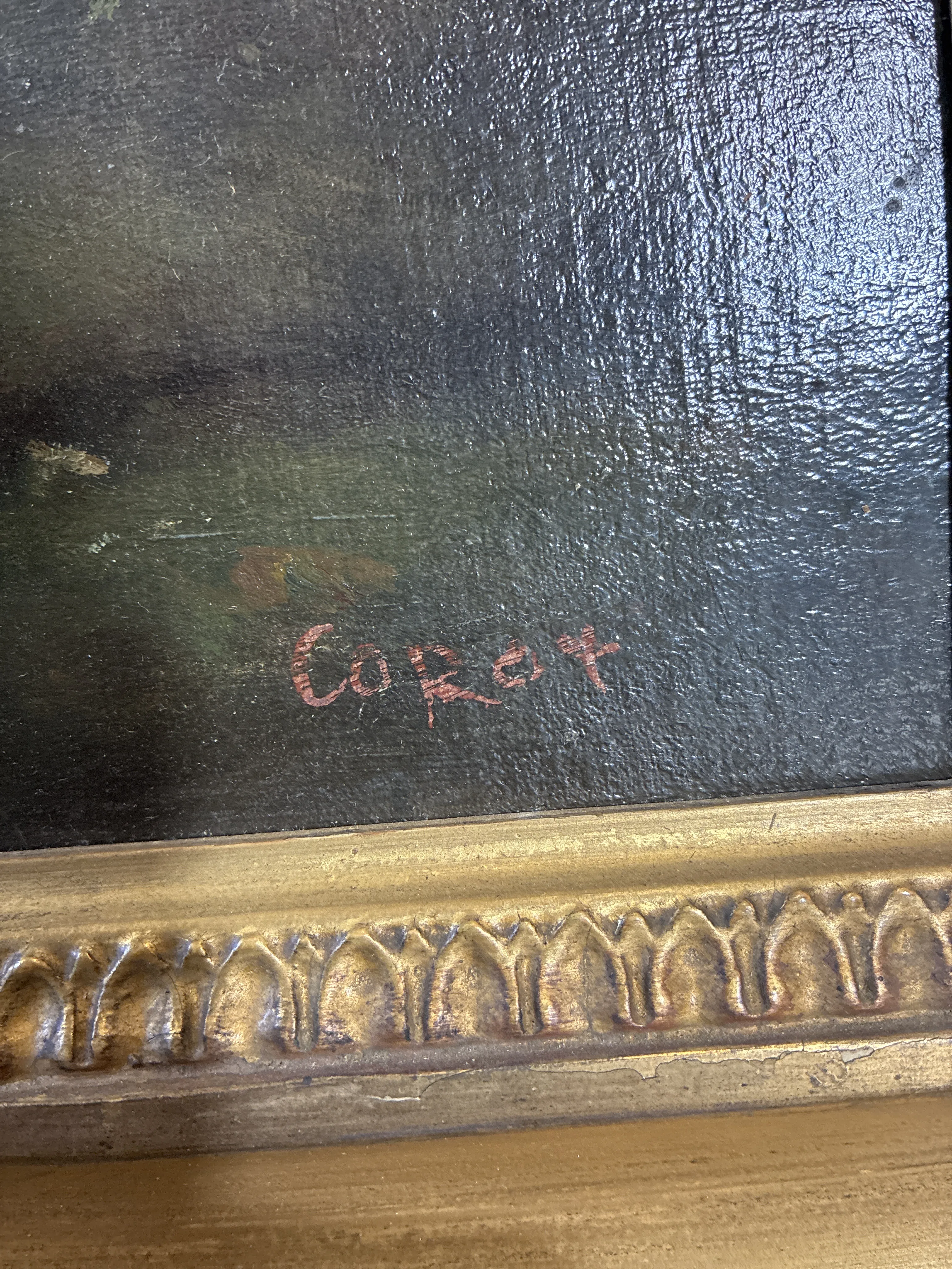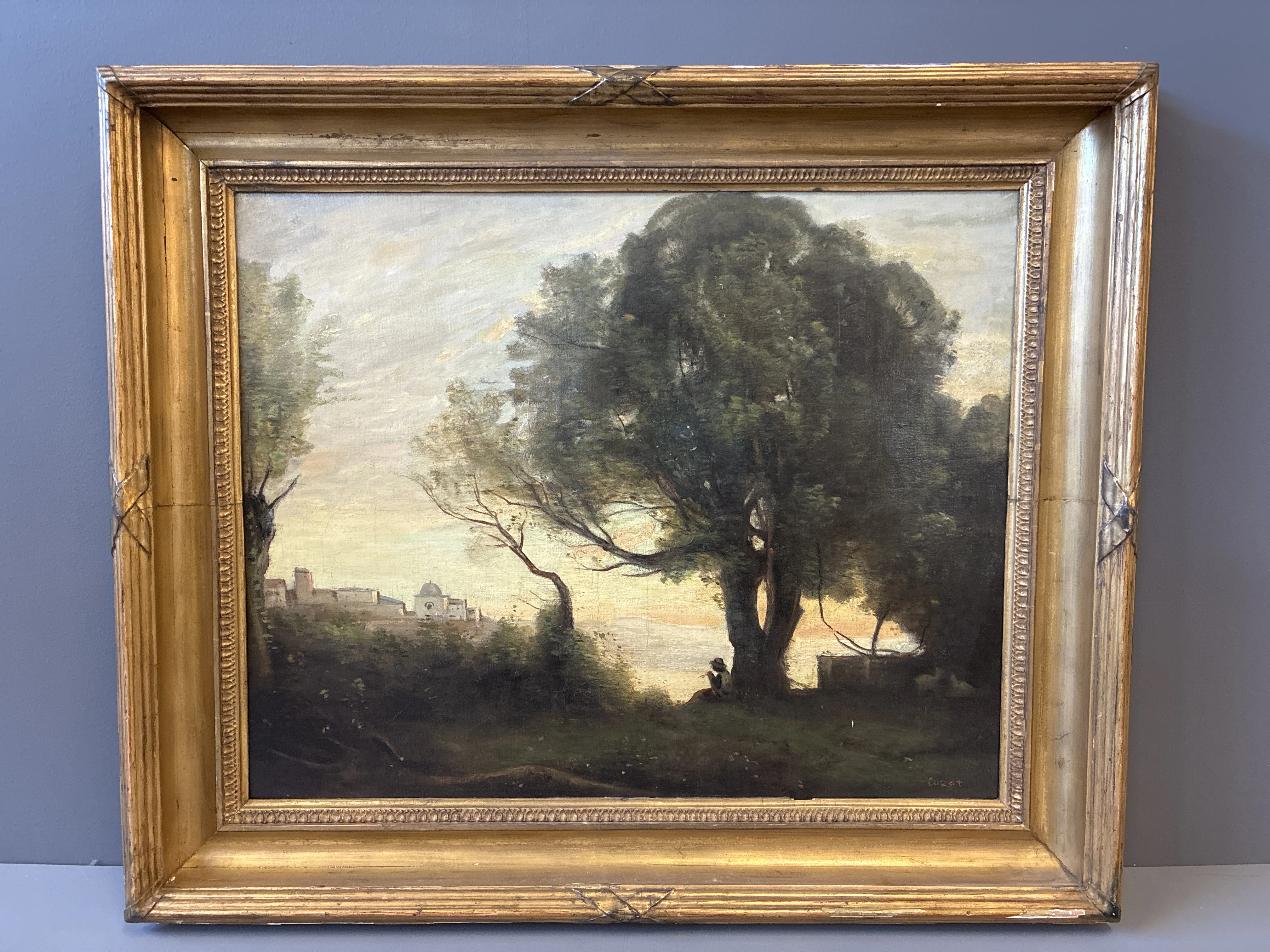 Välgjord oljemålning på duk efter Camille Carot kända målning "Souvenir de Castelgandolfo" 1865. Ramyttermått: B99cm x 84cm. Åldersslitage.