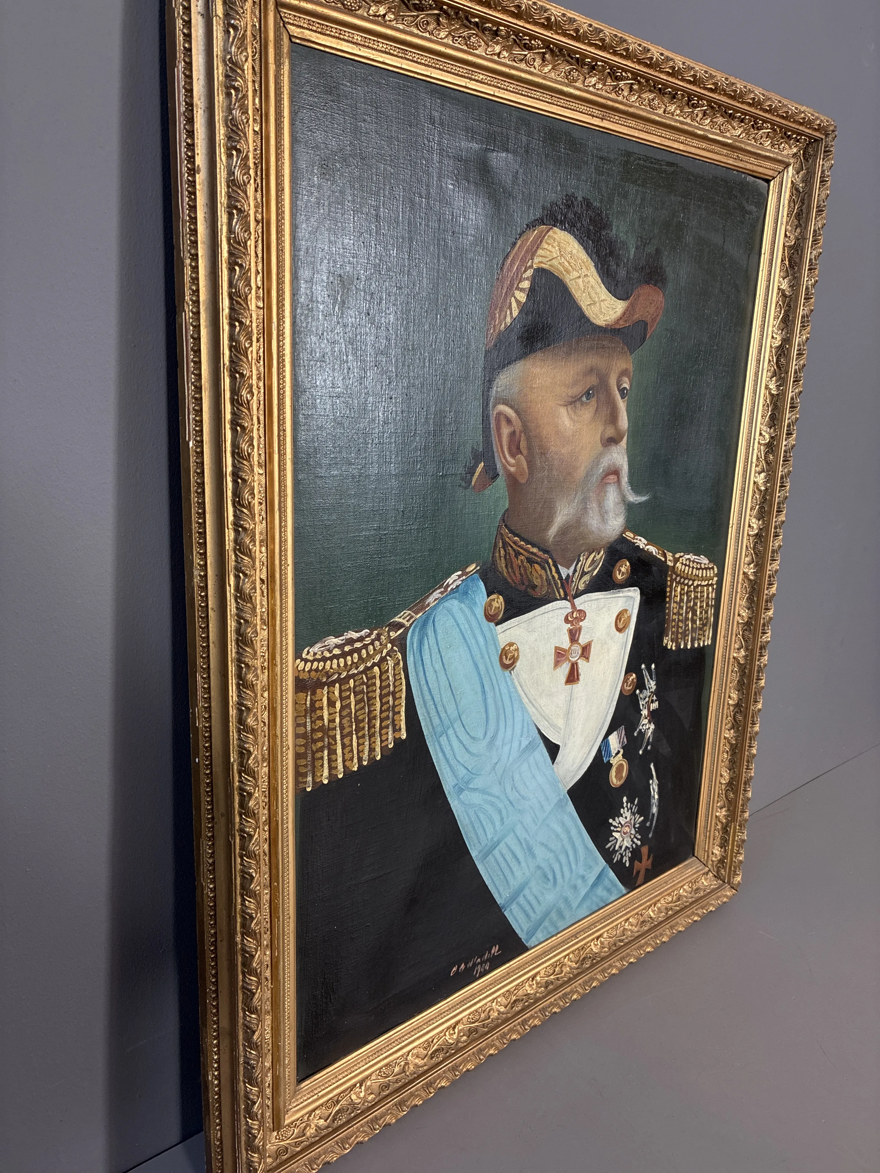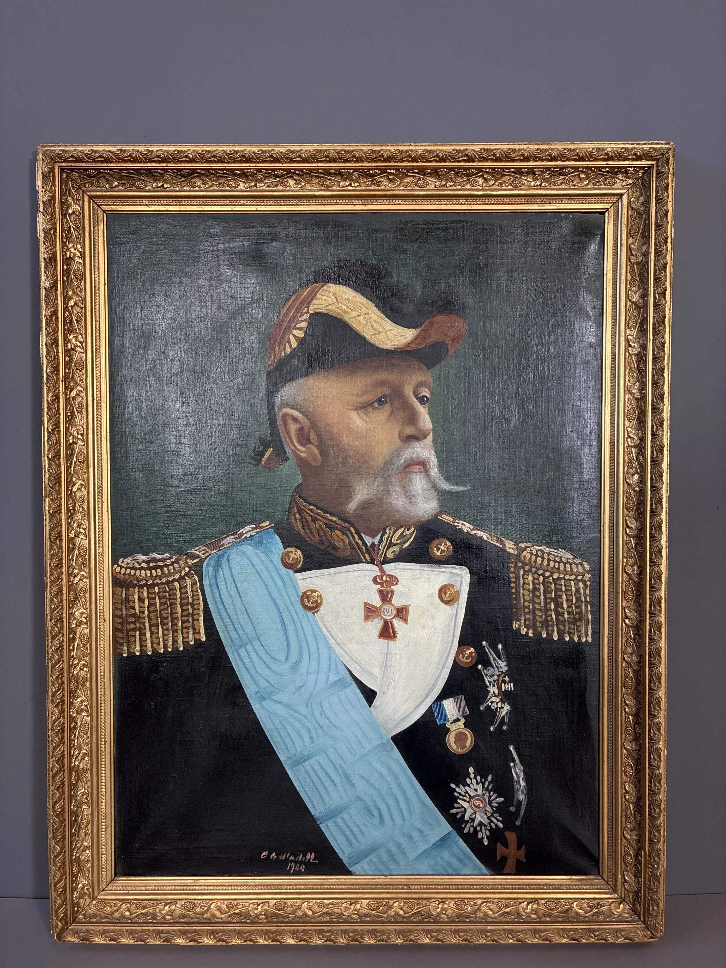 Olja på duk. Porträtt av Oscar II. Ramyttermått: 76cm x 98cm. Åldersslitage och lagning.