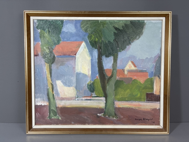 Stadsvy av Holger Almqvist. Ramyttermått: 61cm x 51,5cm.