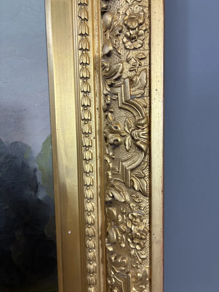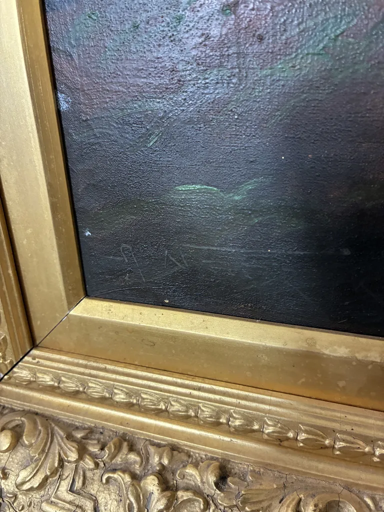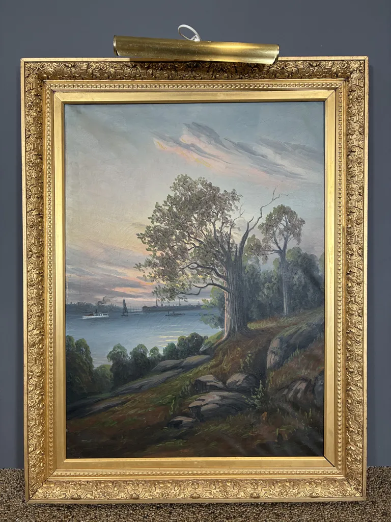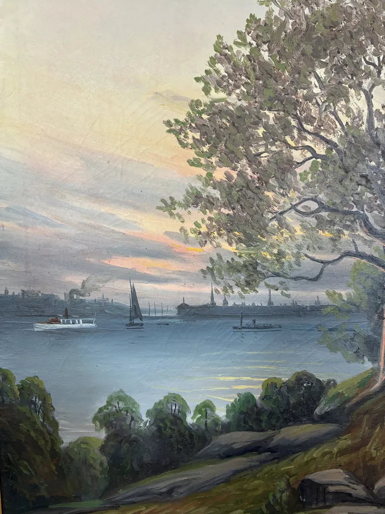 Förmodligen motiv från Stockholm. Krackileringar och åldersslitage. Ramyttermått: 91cm x 116cm
