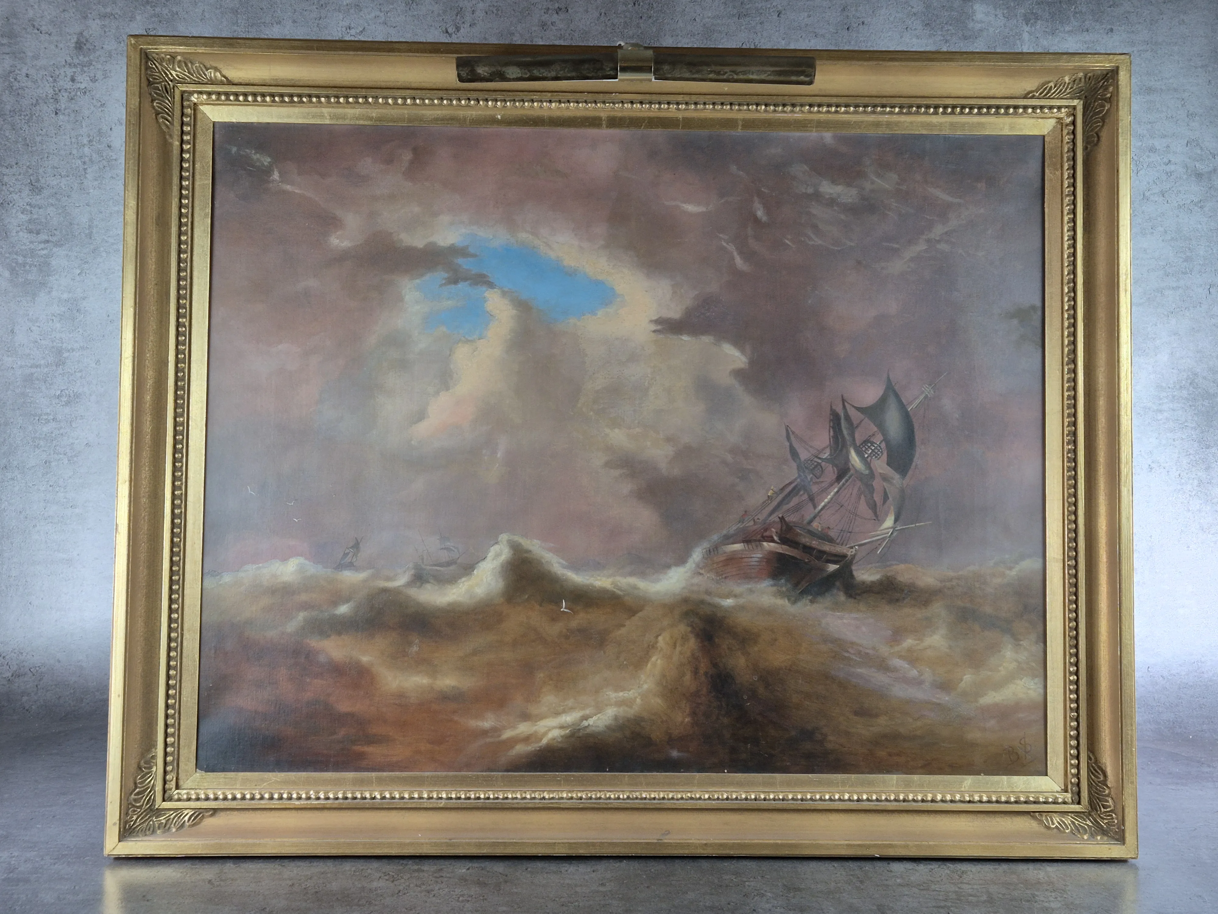 Havsmotiv i storm. Ram med belysning.