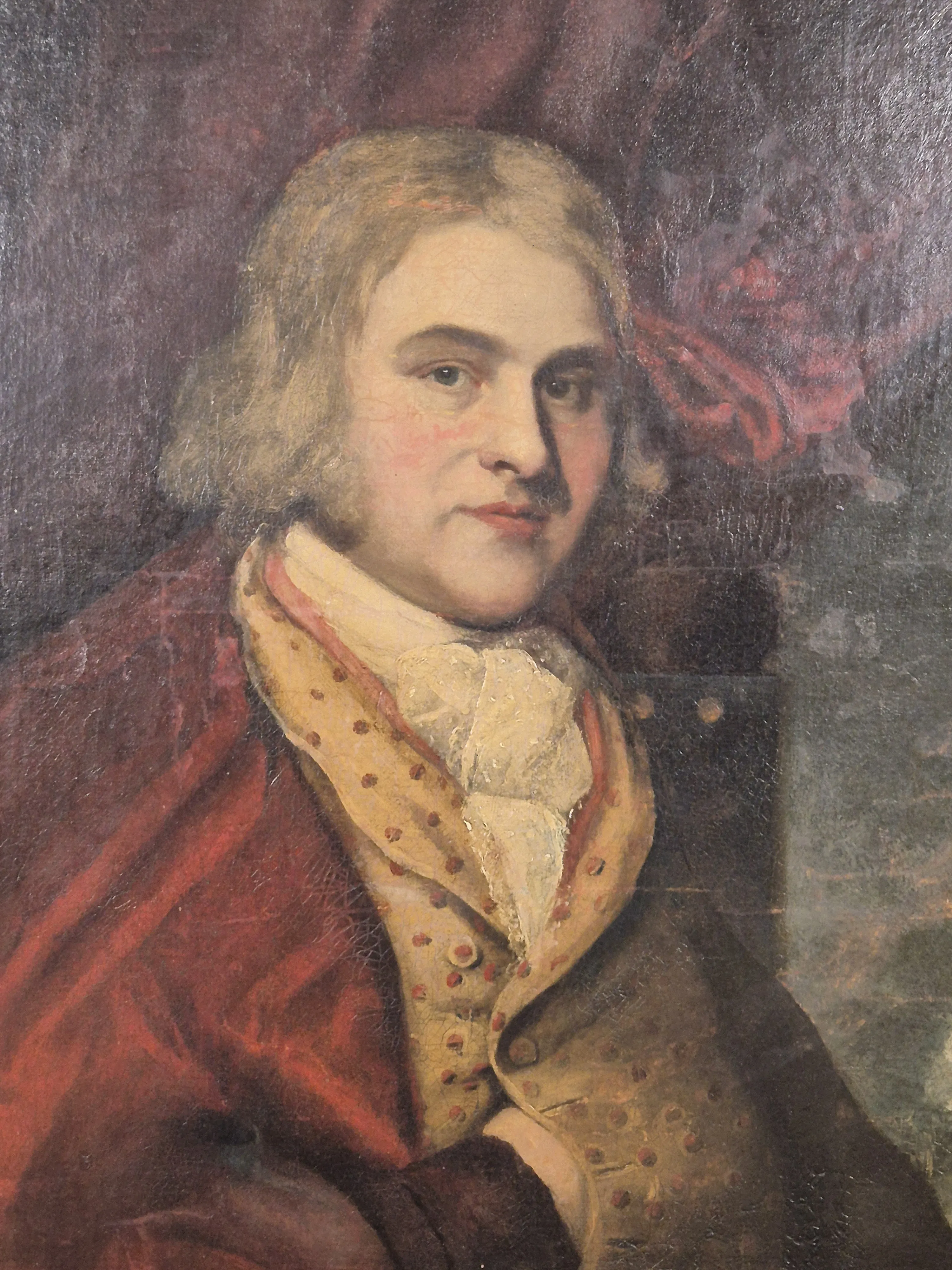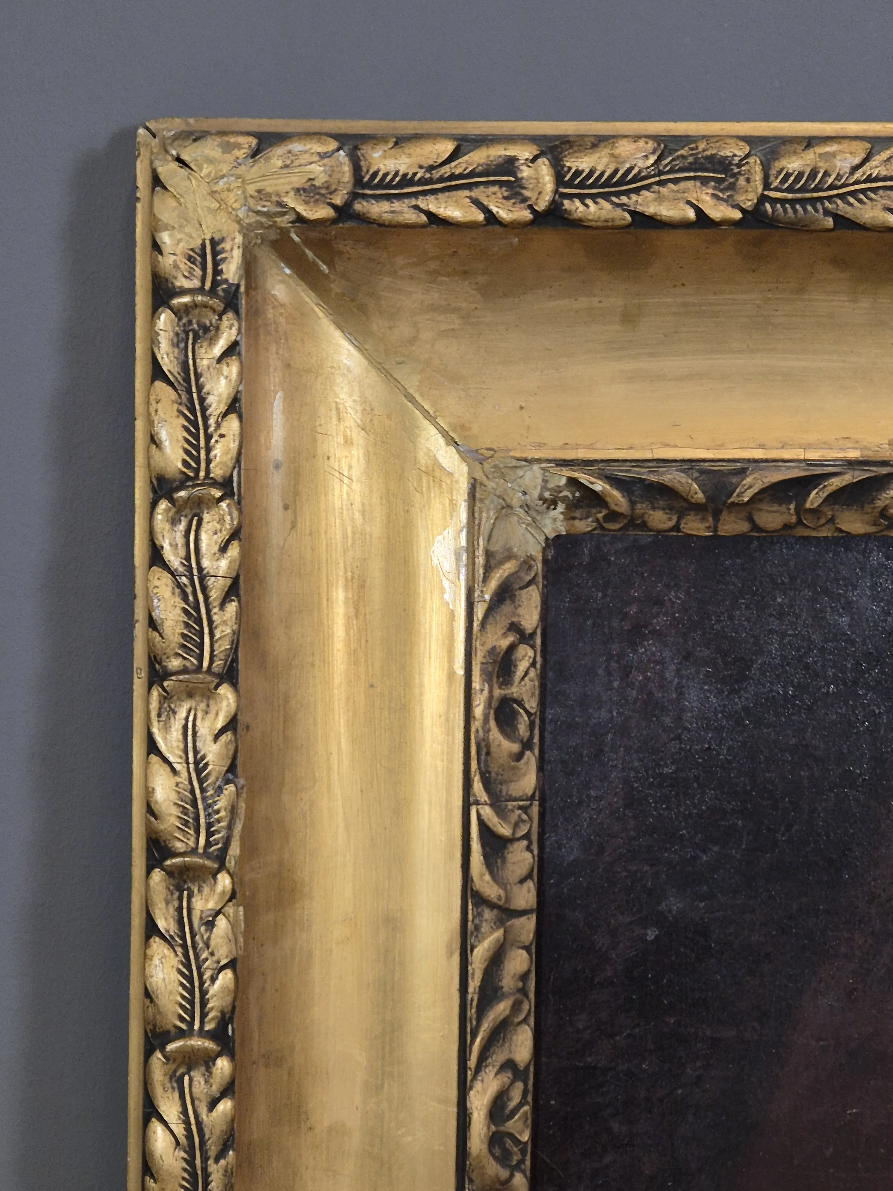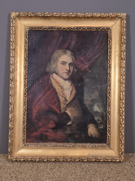 Oljemålning i pampig ram. Ramyttermått: 92cm x 118cm Krackelering och åldersslitage förekommer.