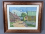 Gårdsbild med korsvirkeshus. Ramyttermått: 46cm x 38cm