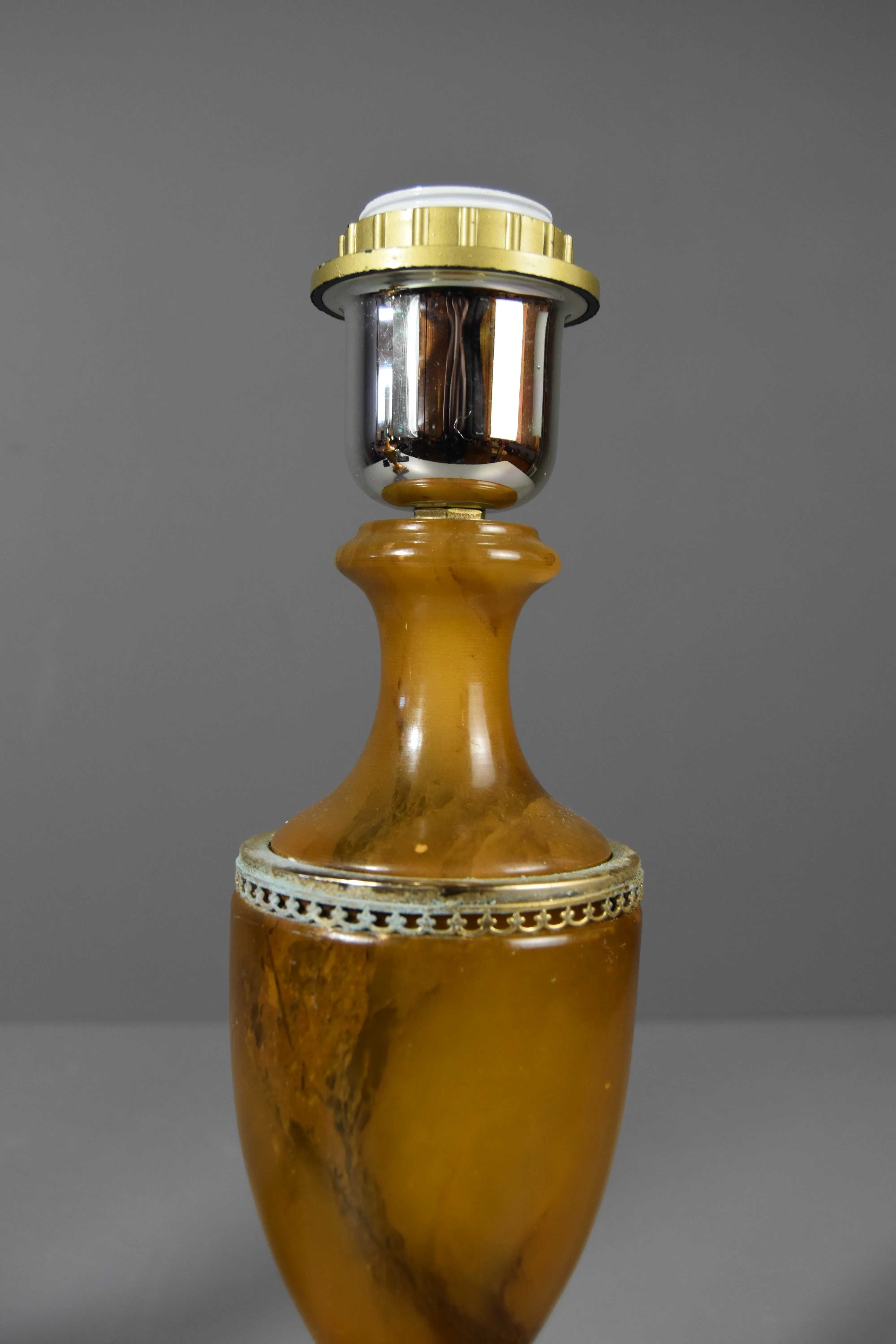 Höjd 34cm. Ej el. Bruksslitage. Ärgat på mässing. Nagg.