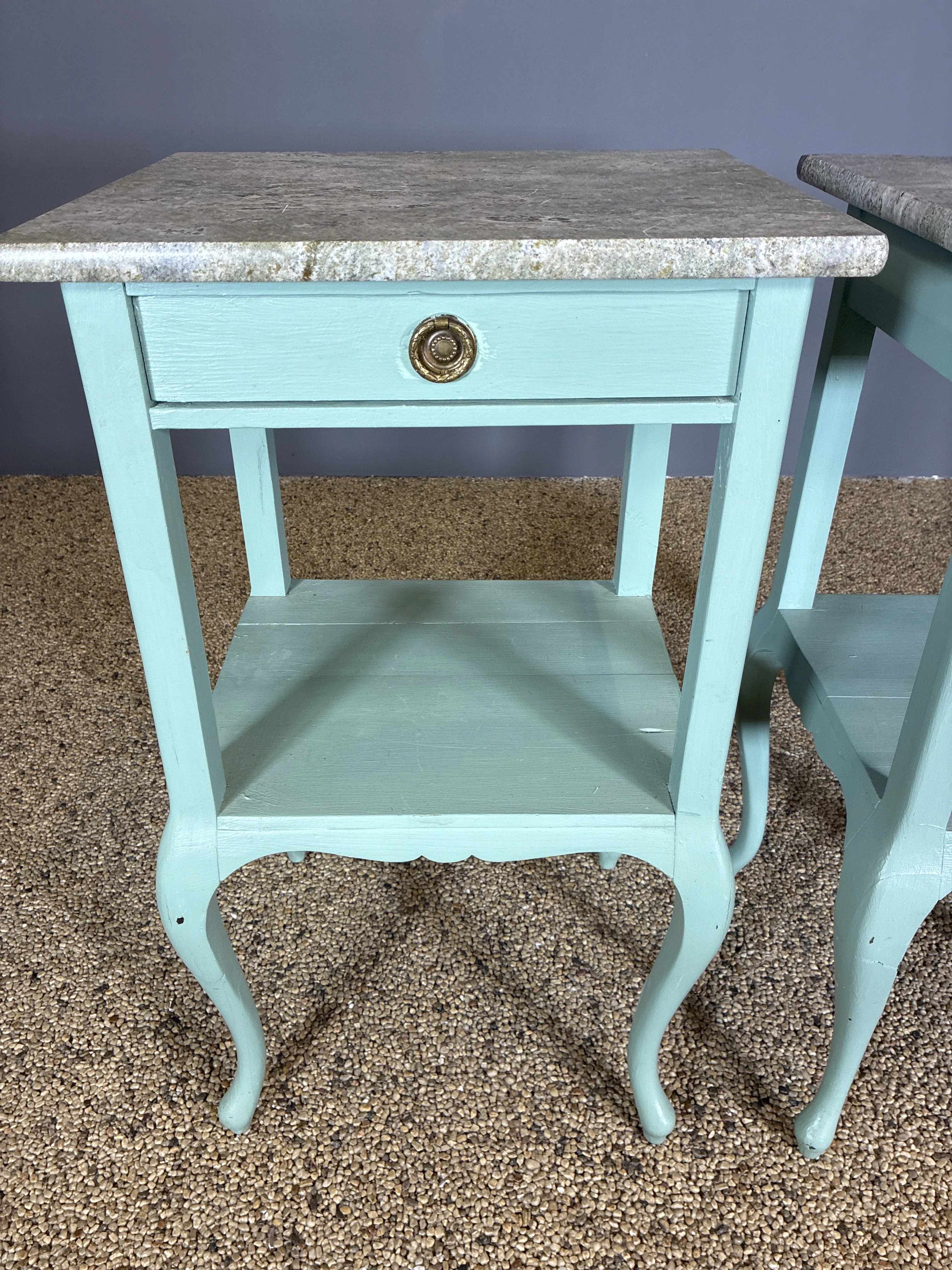 Bondrokoko bord med låda och skivor av Kolmårdsmarmor. Bruksslitage. Höjd: 74cm Bredd: 42cm.