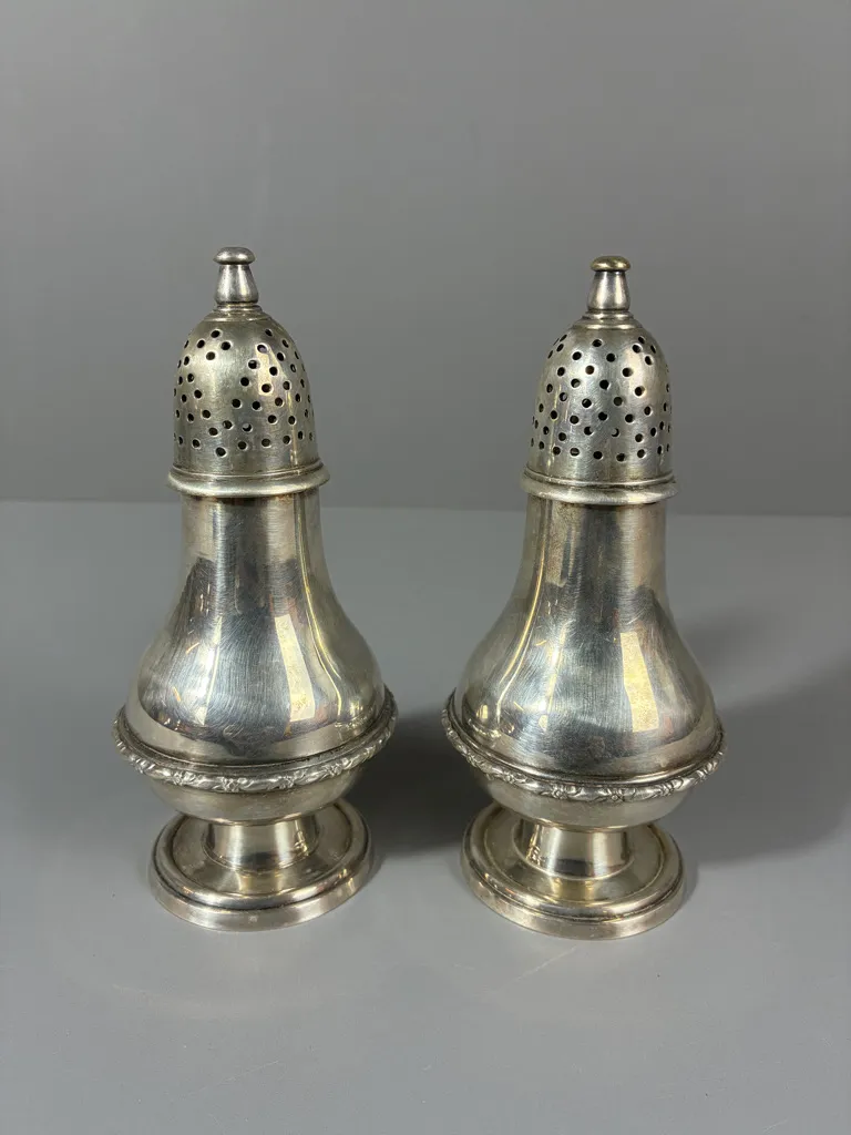 Ett par i nysilver. Höjd:16cm.