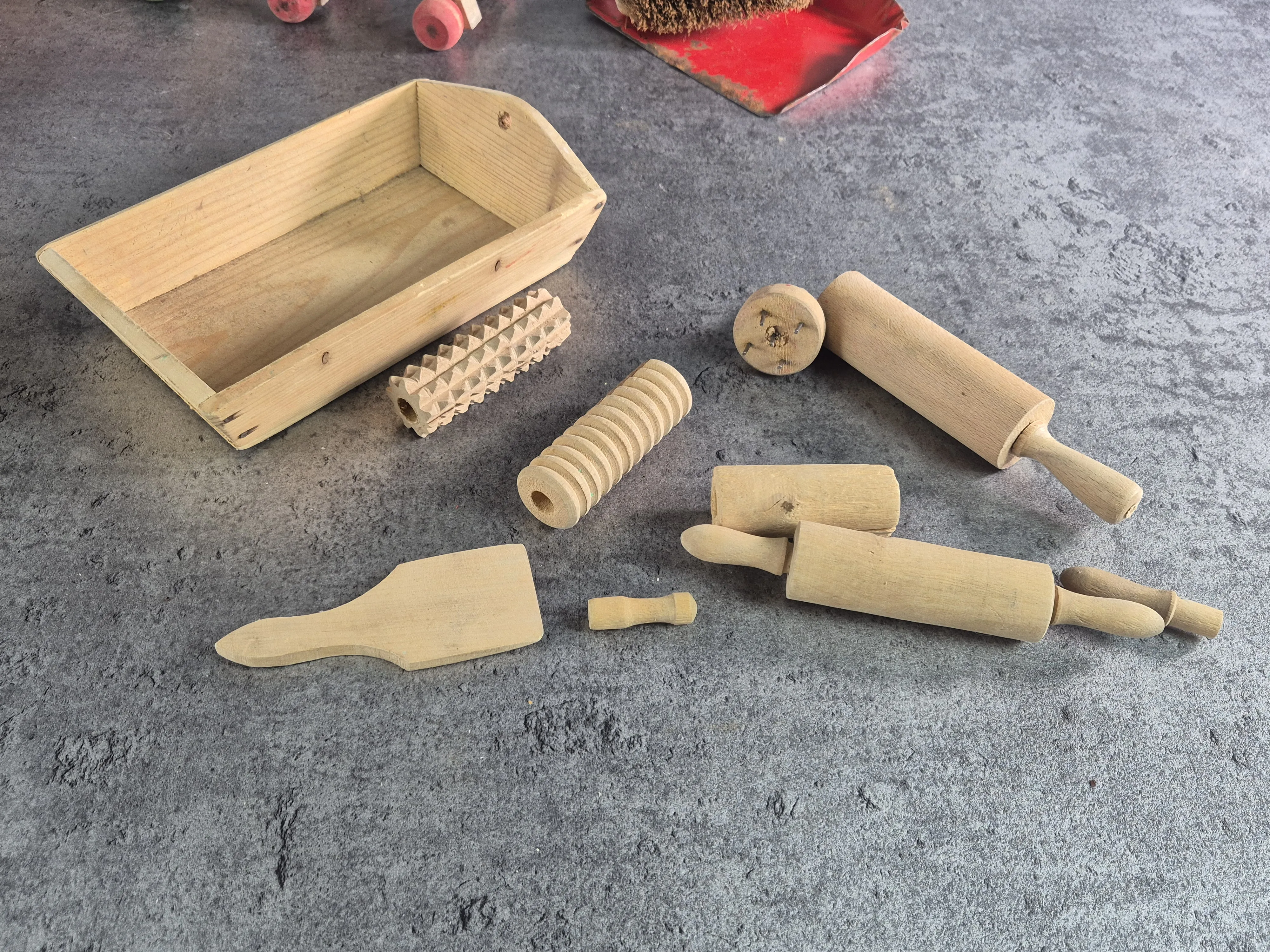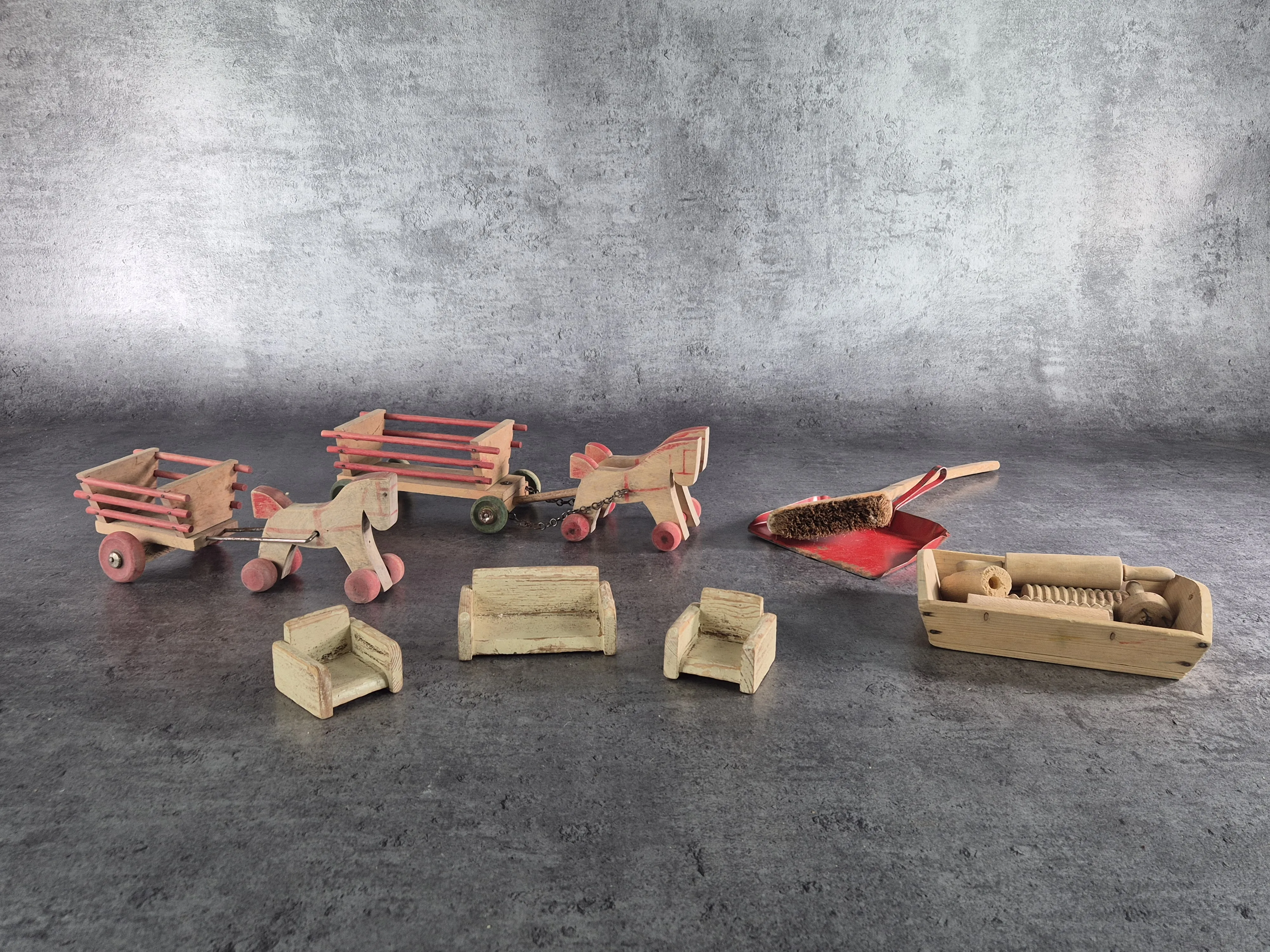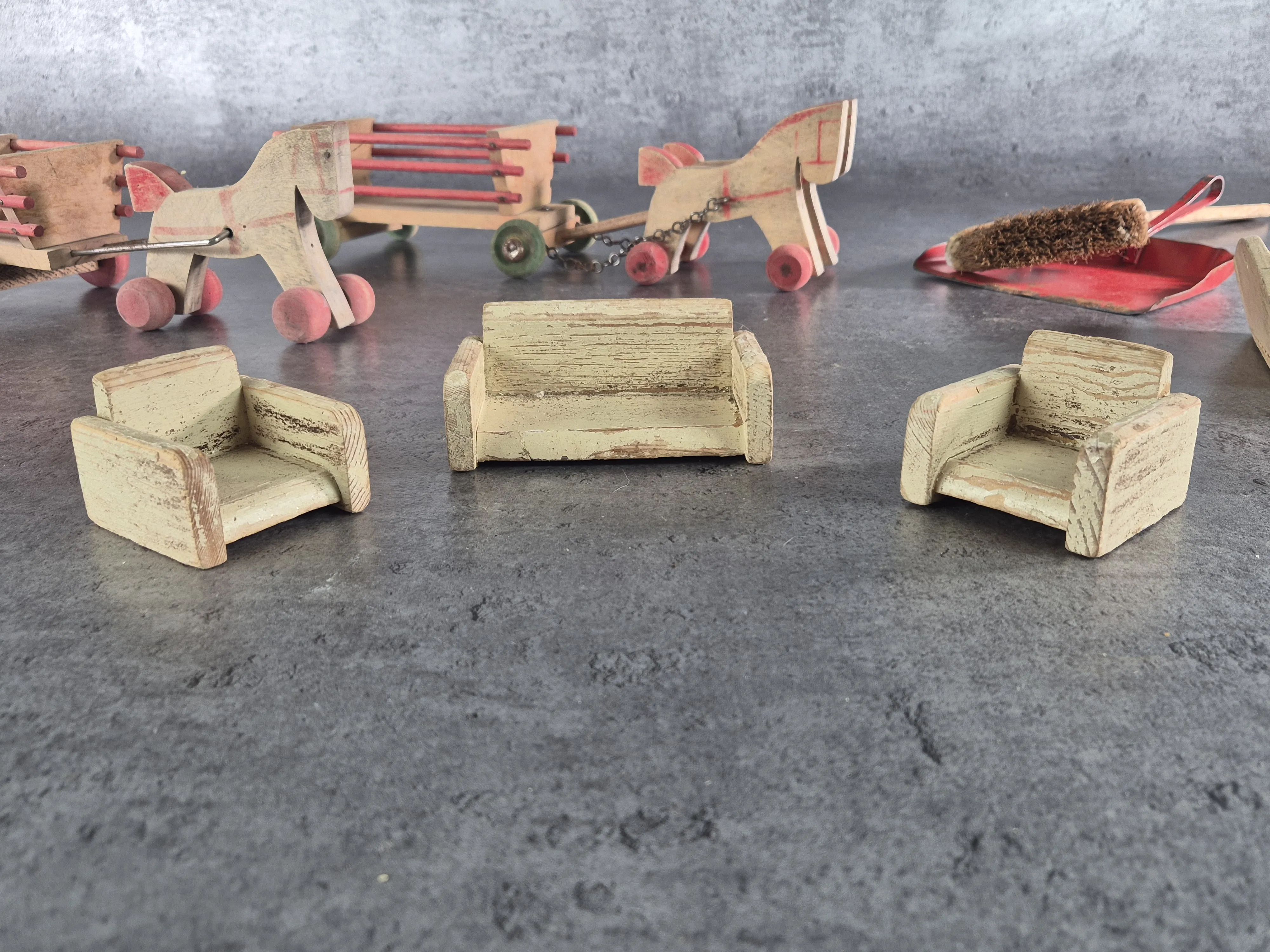 Parti äldre träleksaker.