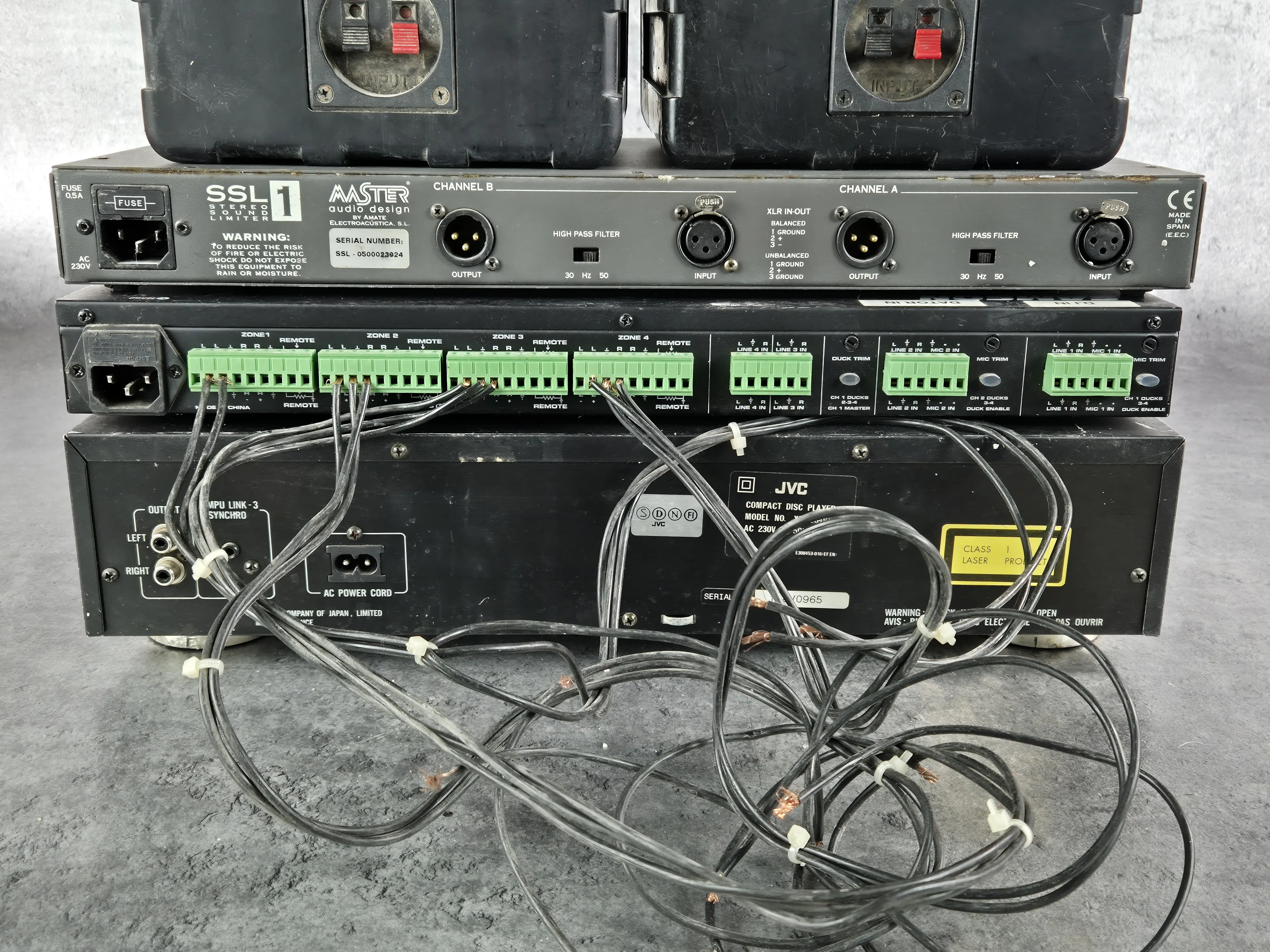 Innehåller Limiter, 4 kanal steriomixer, CD-spelare och DJ mixer Numark samt högtalare för medhörning. Ej funktionstestad.