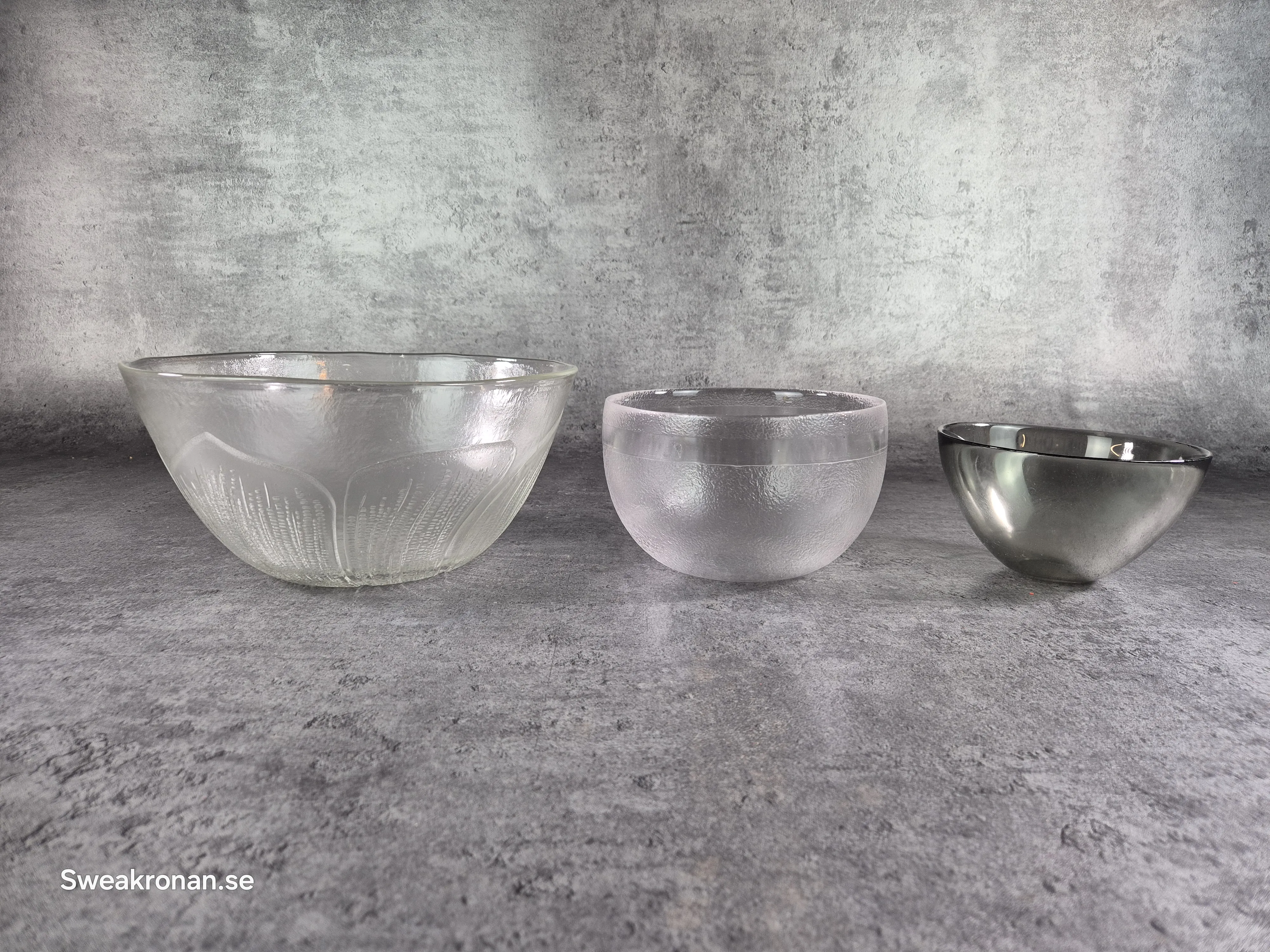 Största skålen: Höjd 13cm Dia 27cm. Bruksslitage.