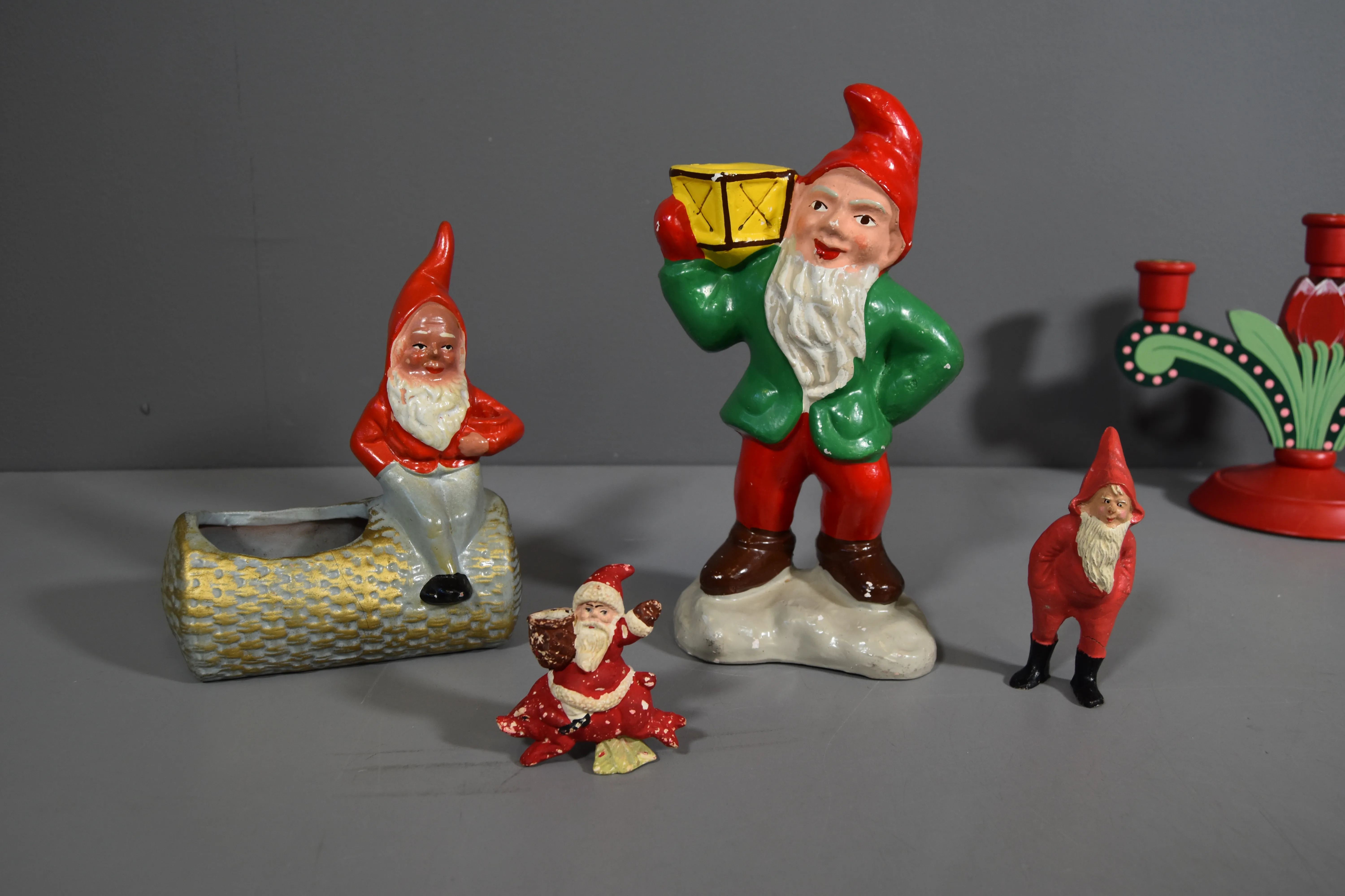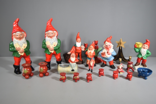 198. Parti julpynt. Bl.a. äldre tomtar.