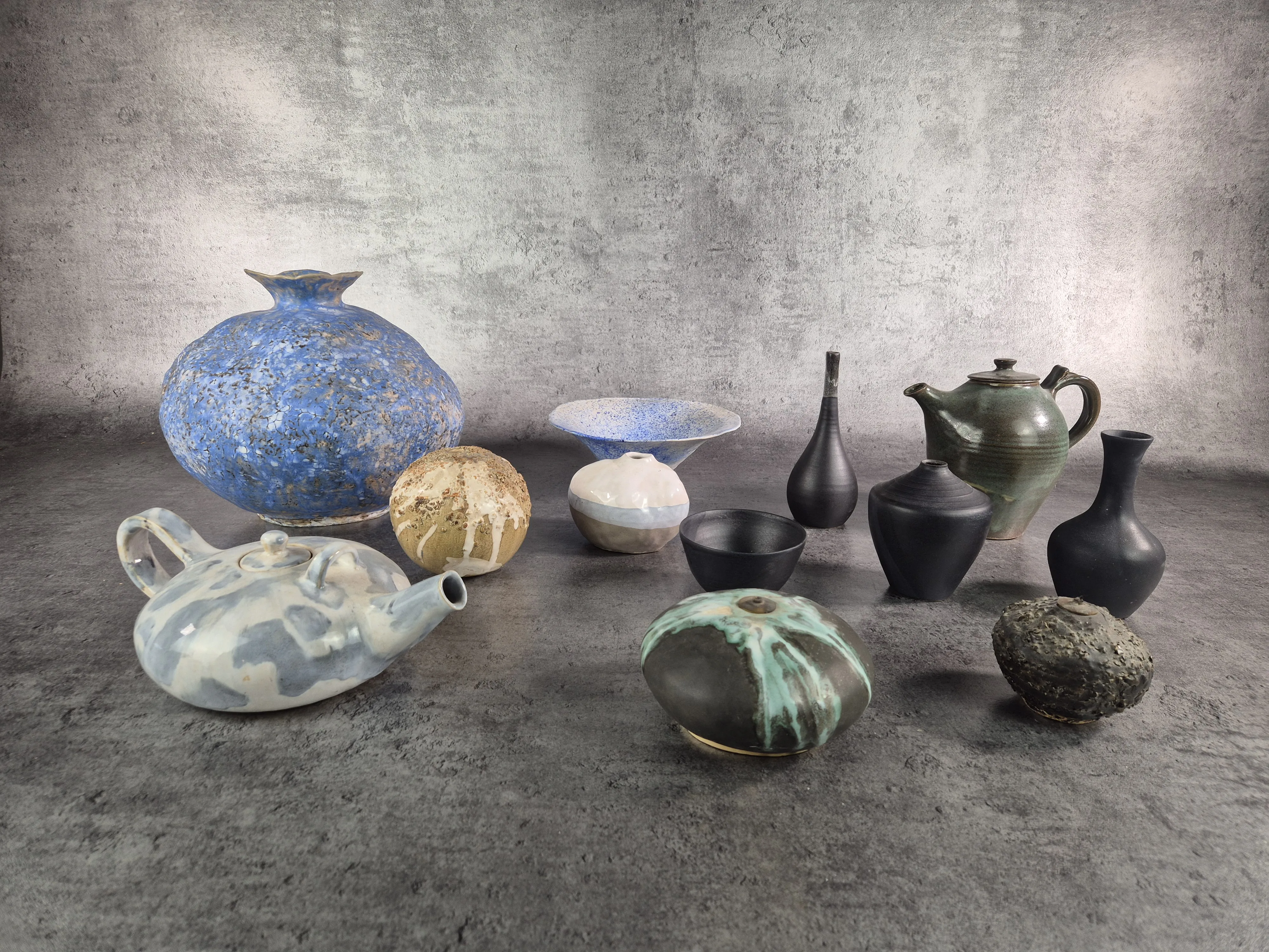Glaserad Keramik signerad C-G A. Höjd på den blå vasen: 26cm.