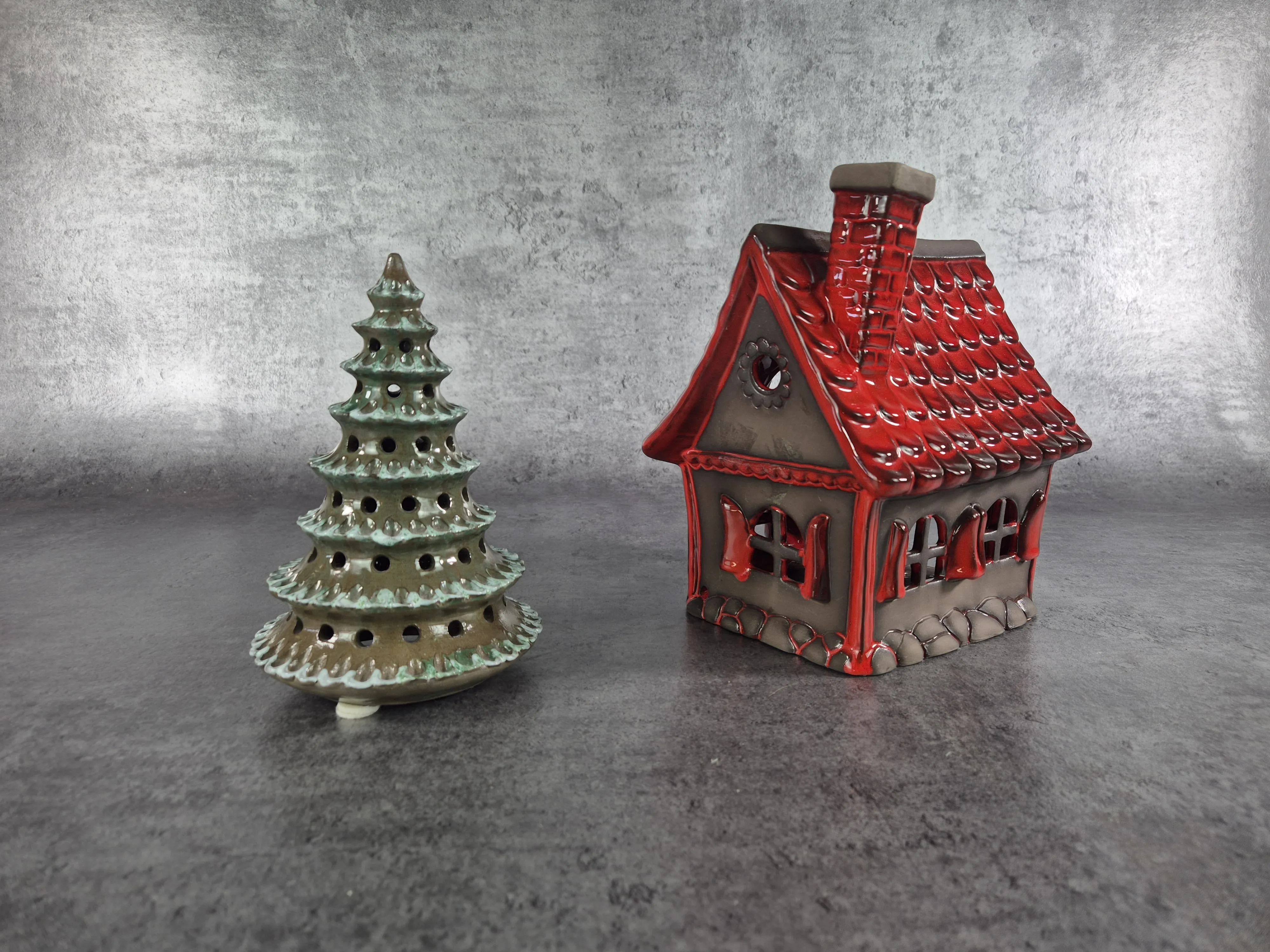 Hus: Höjd 25ccm Bredd 20cm Djup 20cm. Bruksslitage. Lampa, ej funktionstestad.