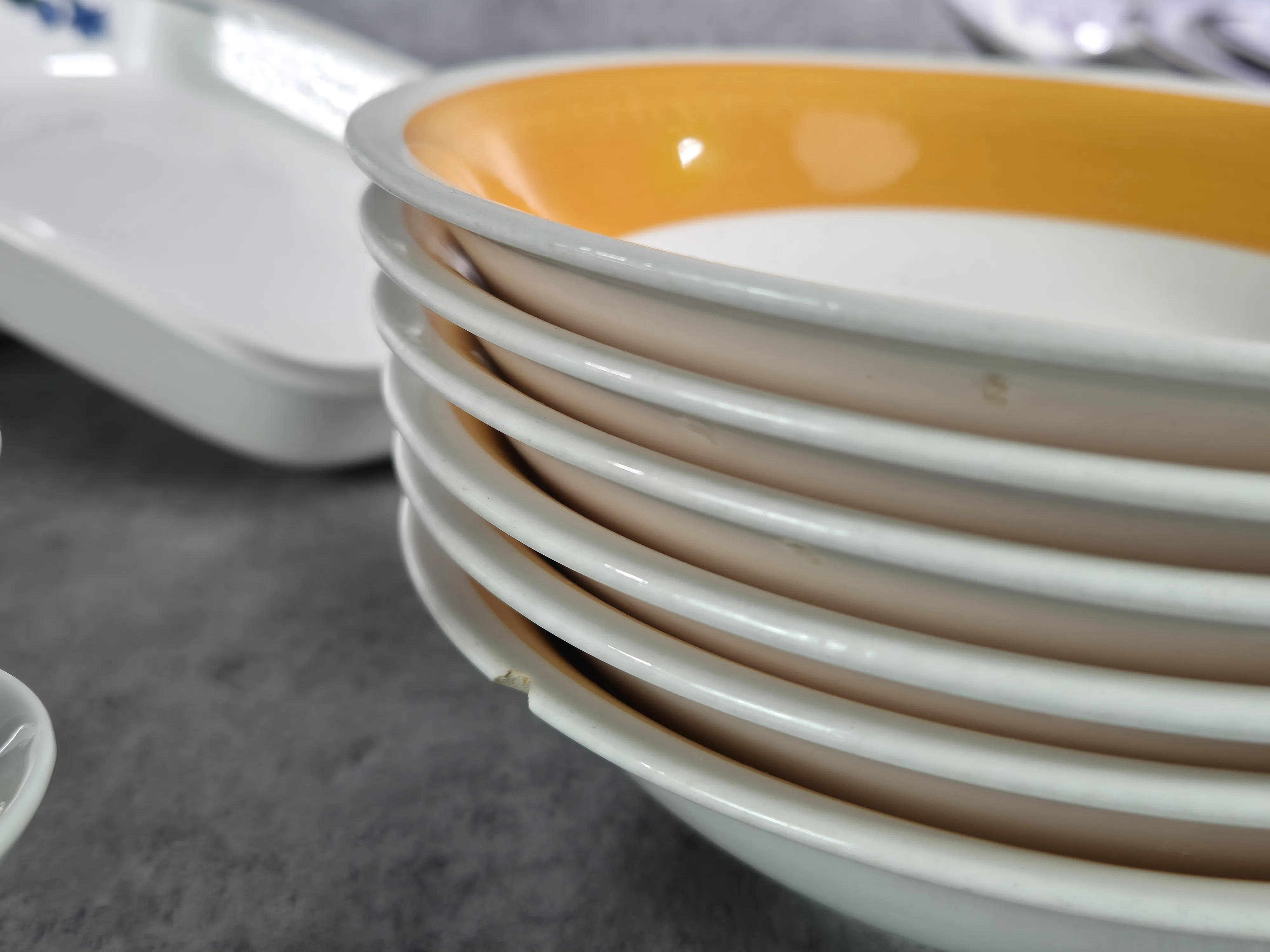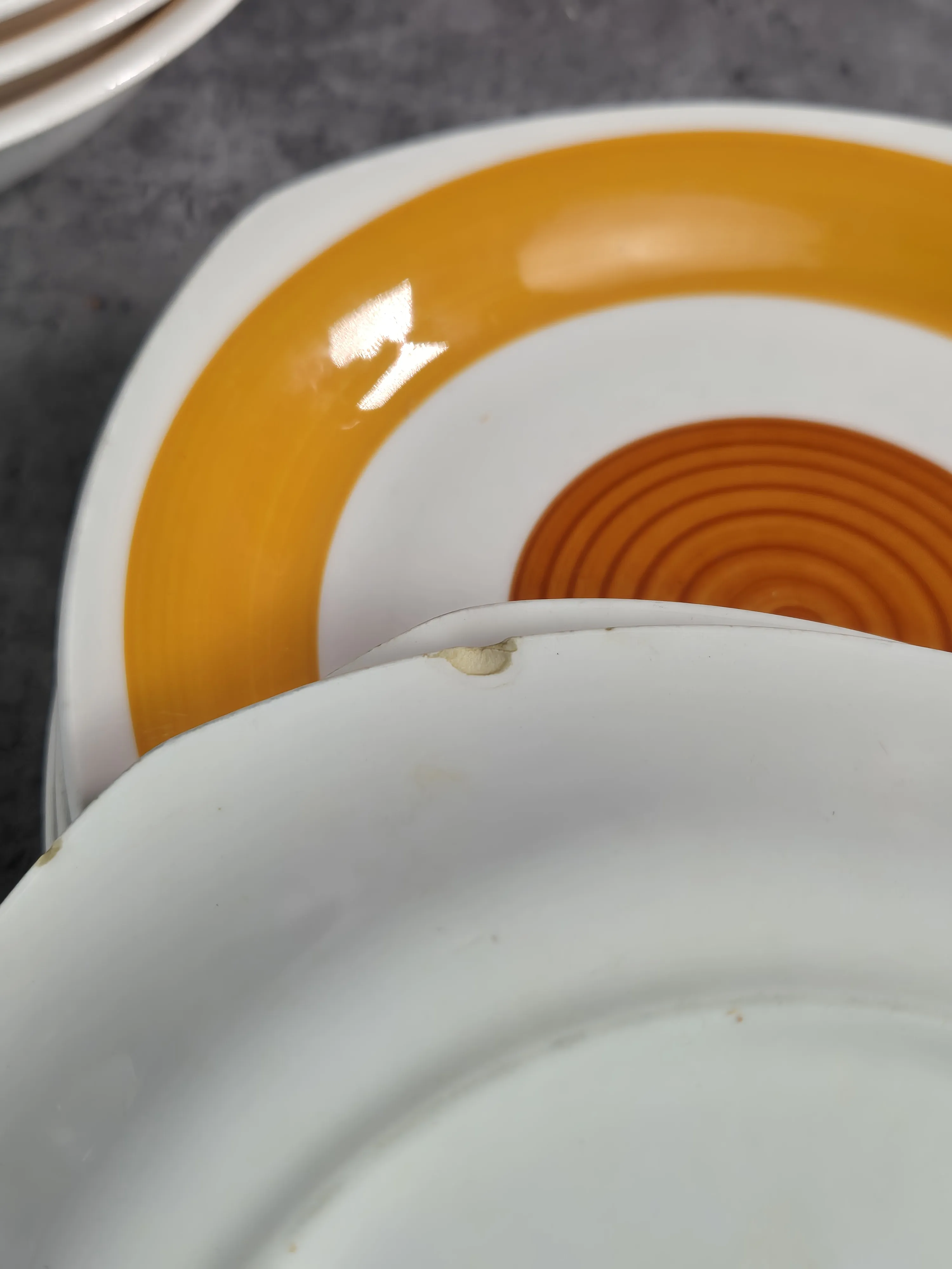 Nagg, slitage. Sprickor i stor sylvia skål.