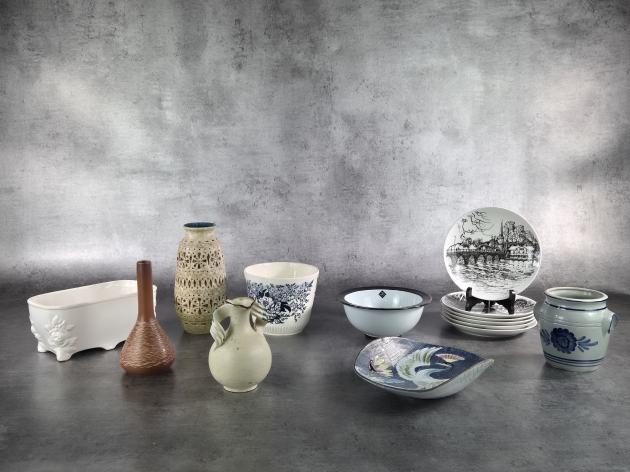 Upsala Ekeby vas: Höjd 16cm. Bruksslitage.