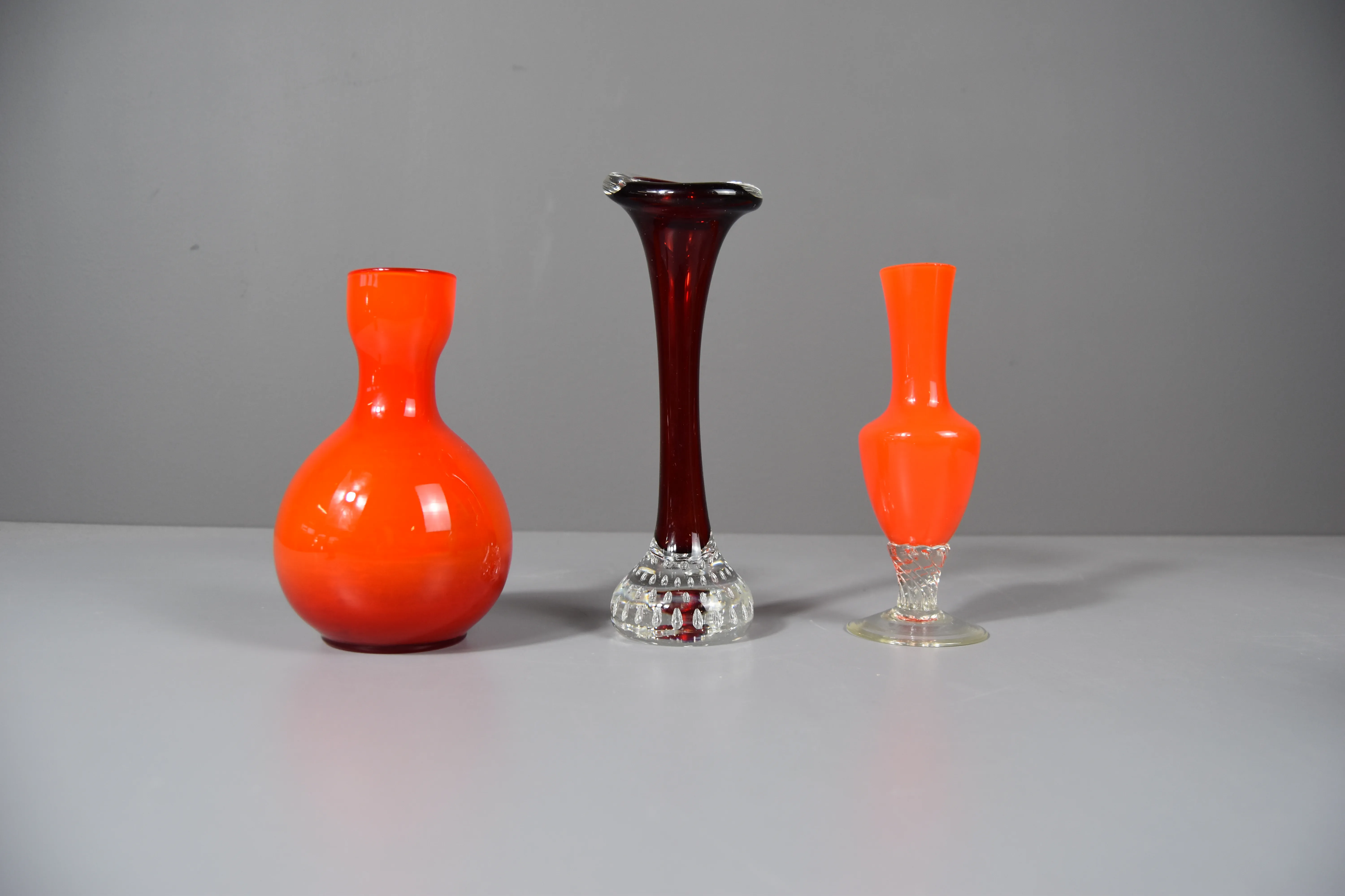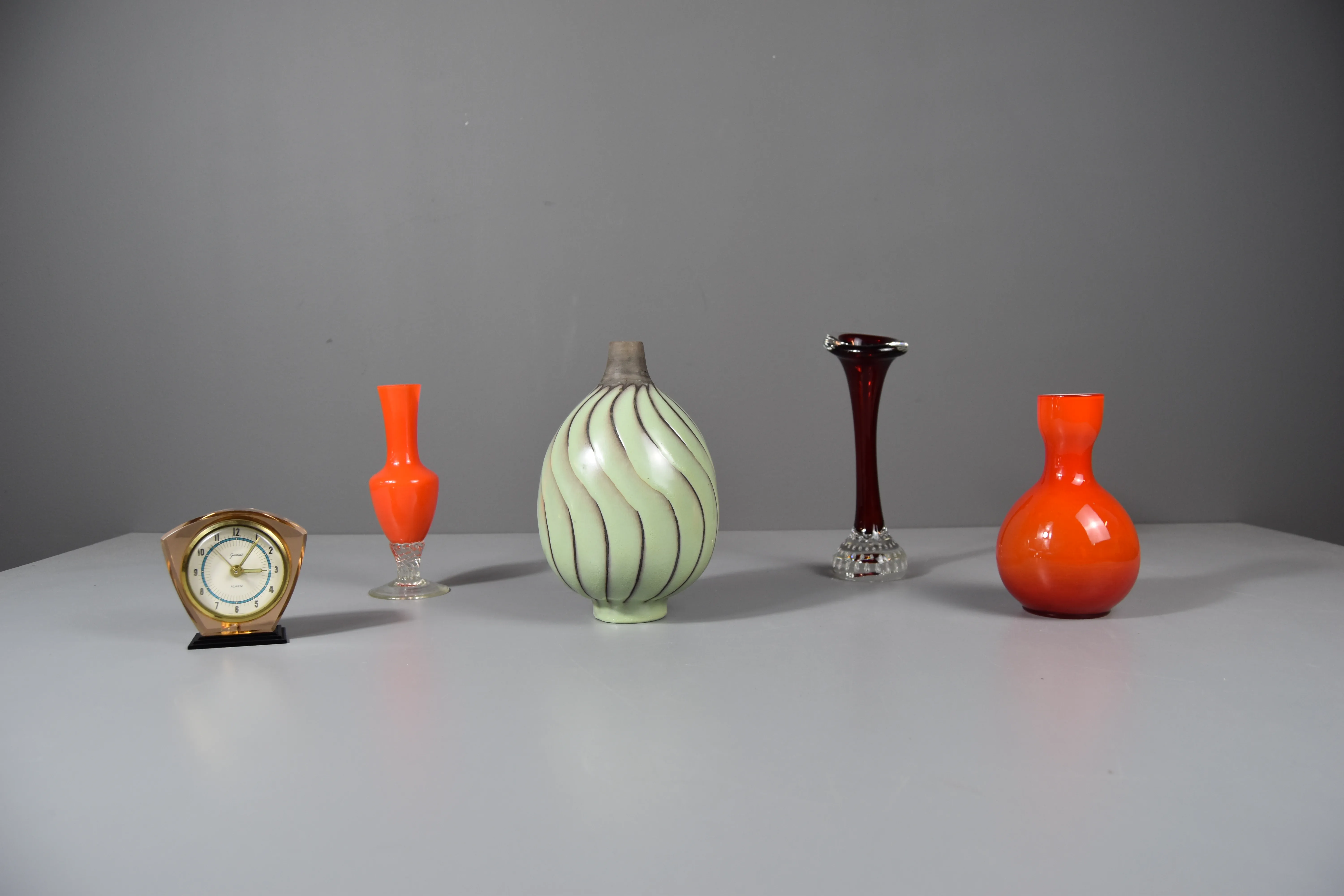 Upsala Ekeby vas: Höjd 19cm. Bruksslitage. Klocka, slitage. Ej funktionstestad. Orange vas, mindre nagg.