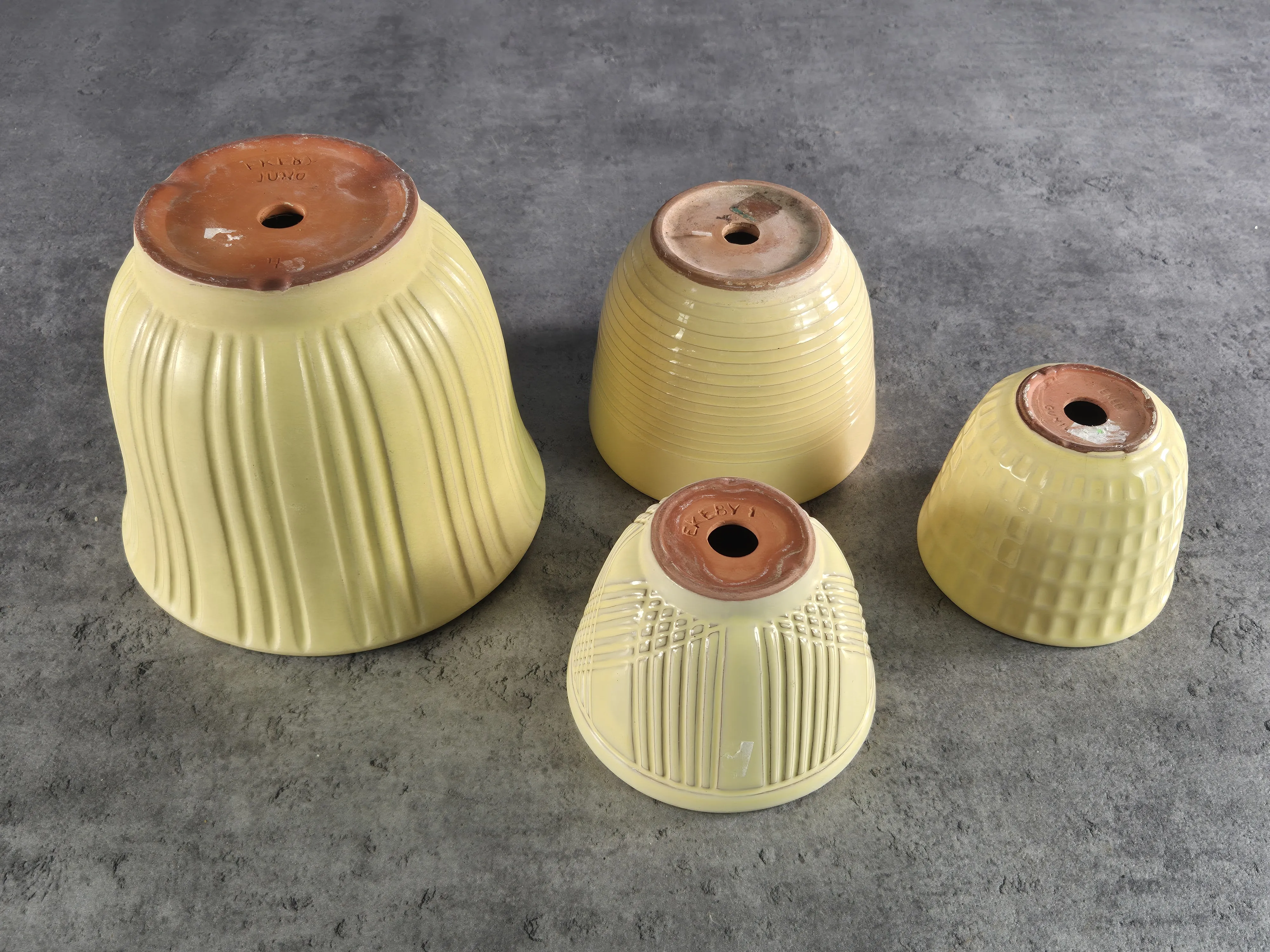 Största: Höjd 15cm Dia 17,5cm. Sprickor.