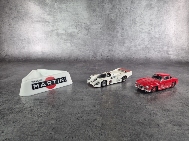 Modellbilar samt askfat Martini. Mercedes i metall skala 1/24.