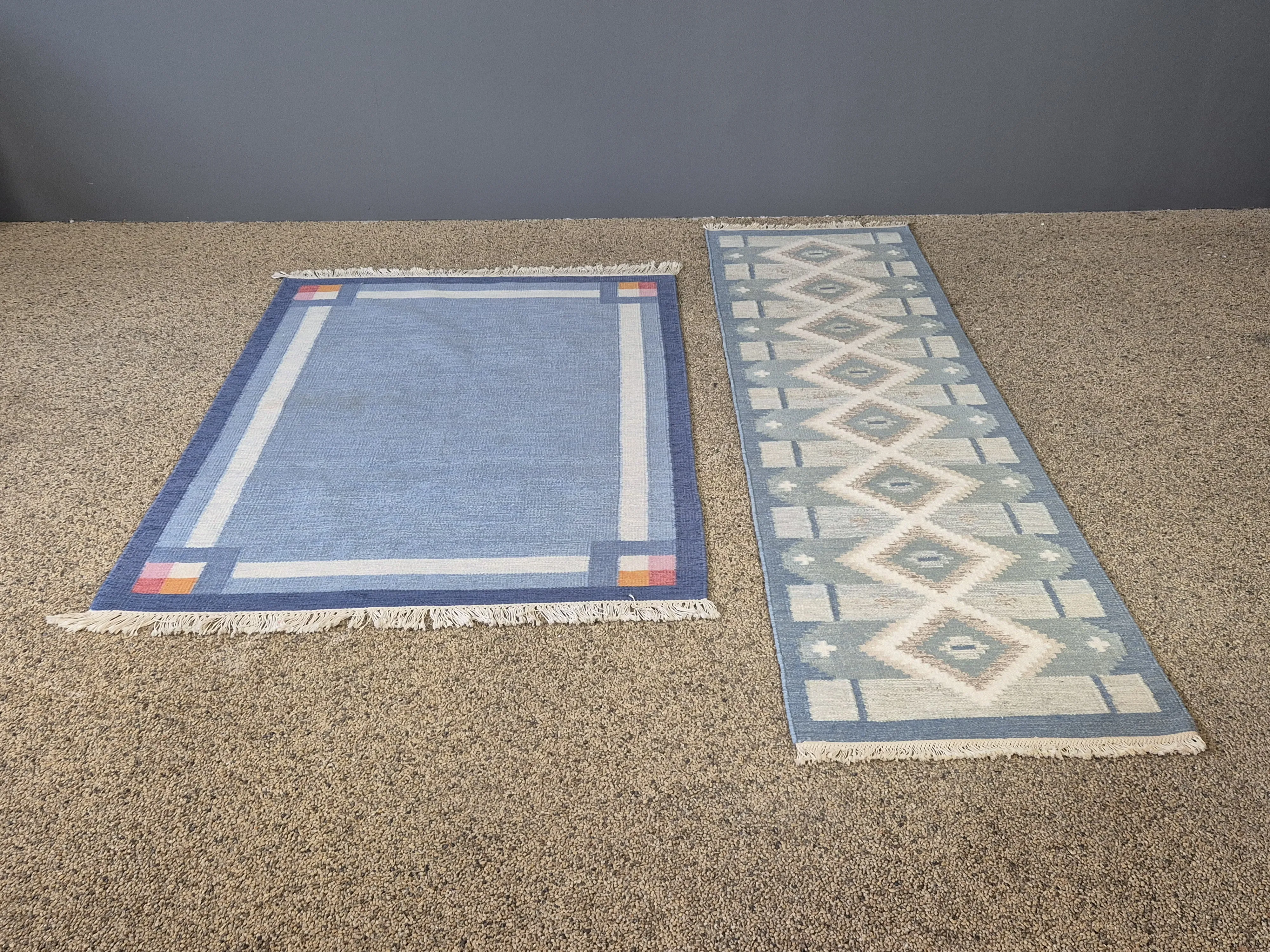 Ca 195x140cm, samt 287x80cm. Bruksslitage.