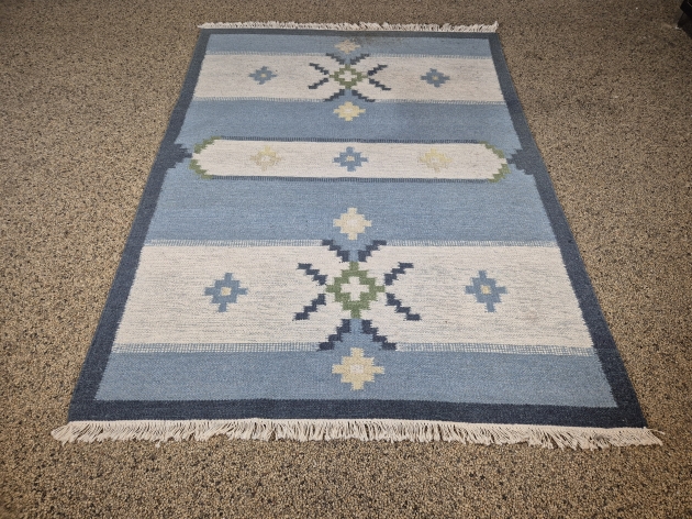 Ca 240x172cm. Fläckar. Bruksslitage.
