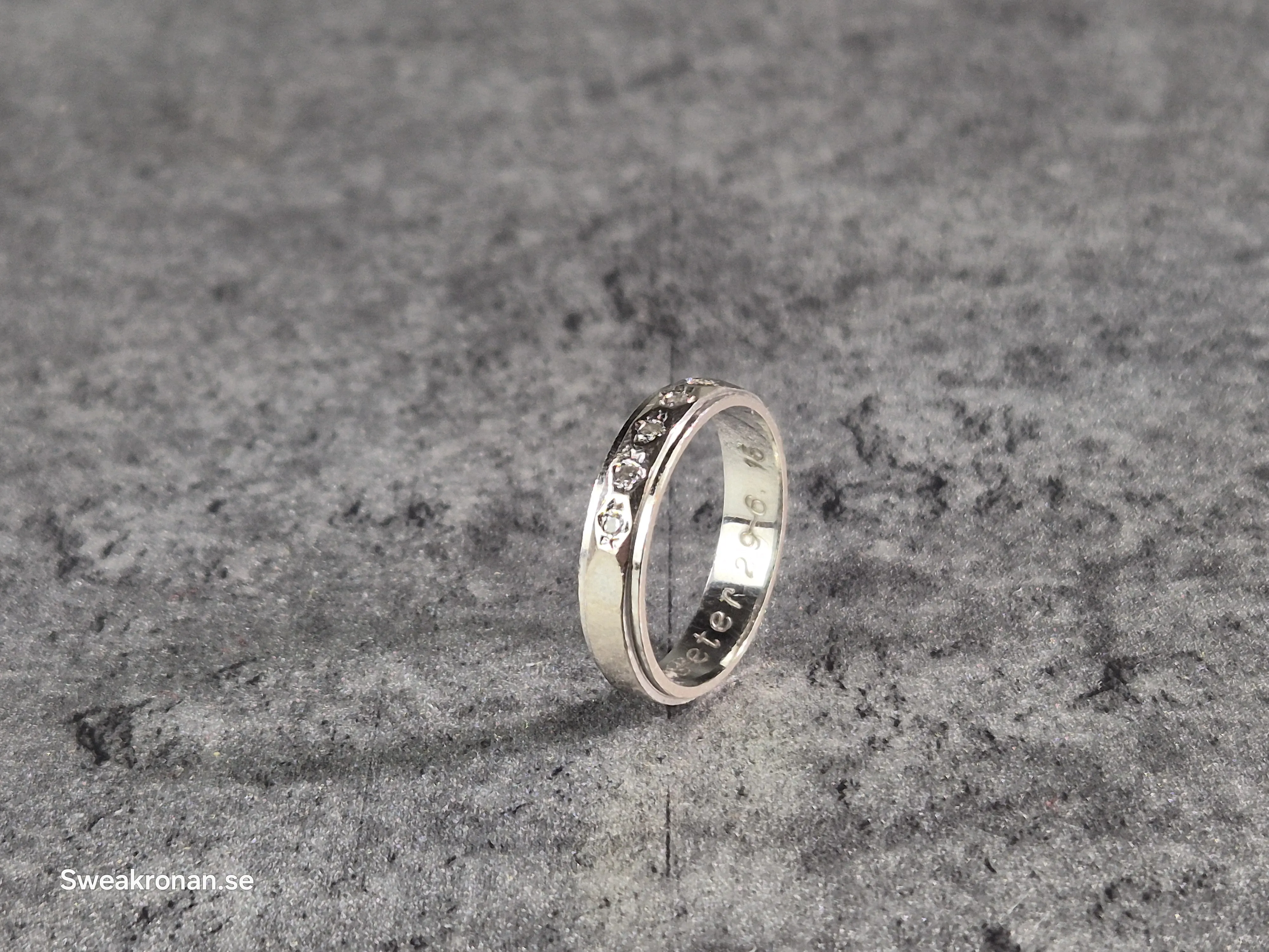 Totalvikt: ca 3,6g. Innerdia: ca 16,4mm. Graverad.