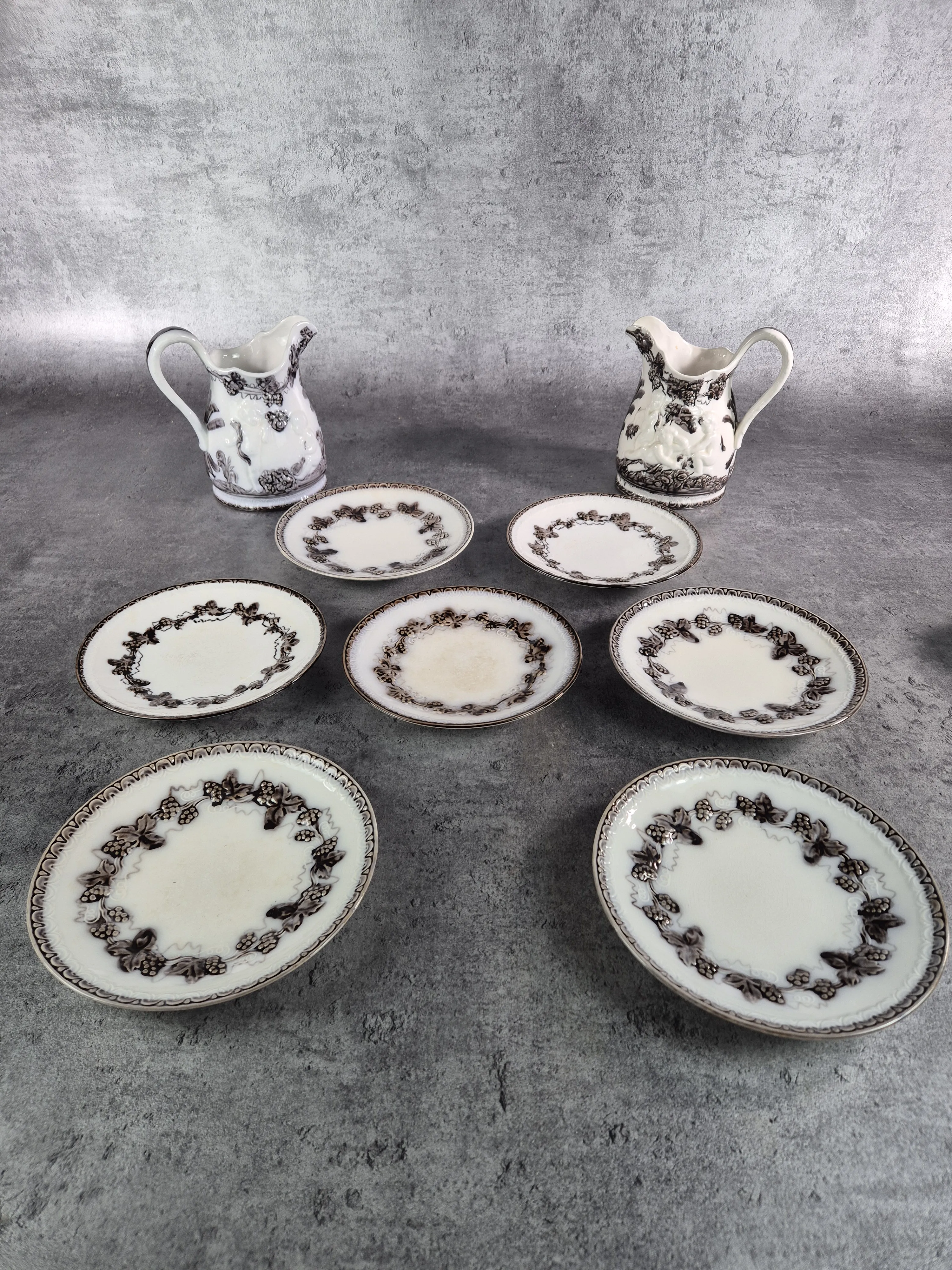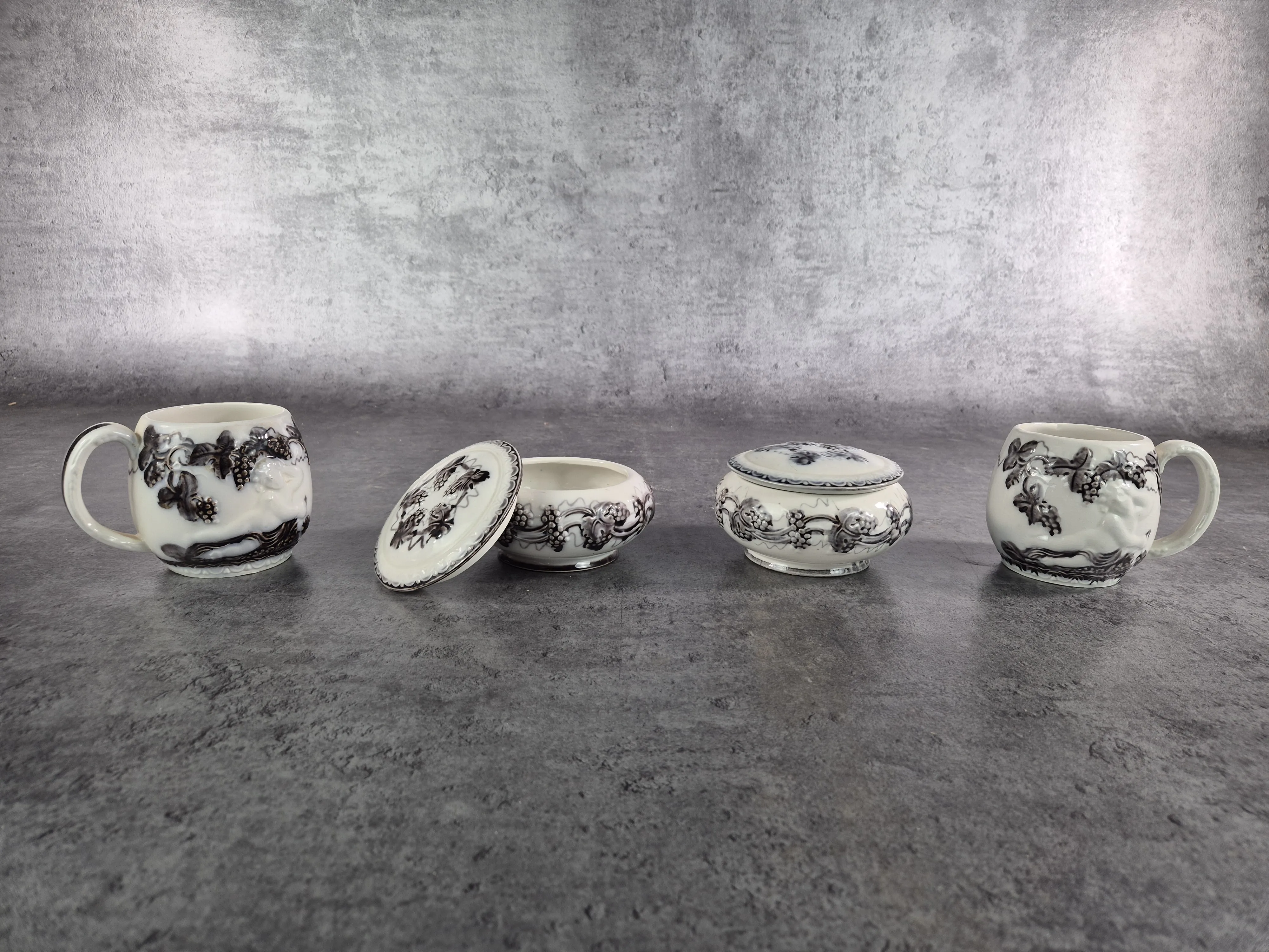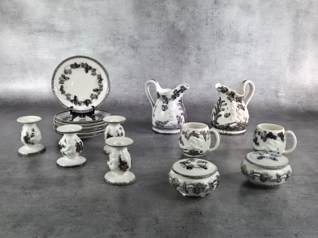 Parti porslin i 17st delar, bestående av fat, kannor, koppar, ljusstakar samt skålar. Bruksslitage.