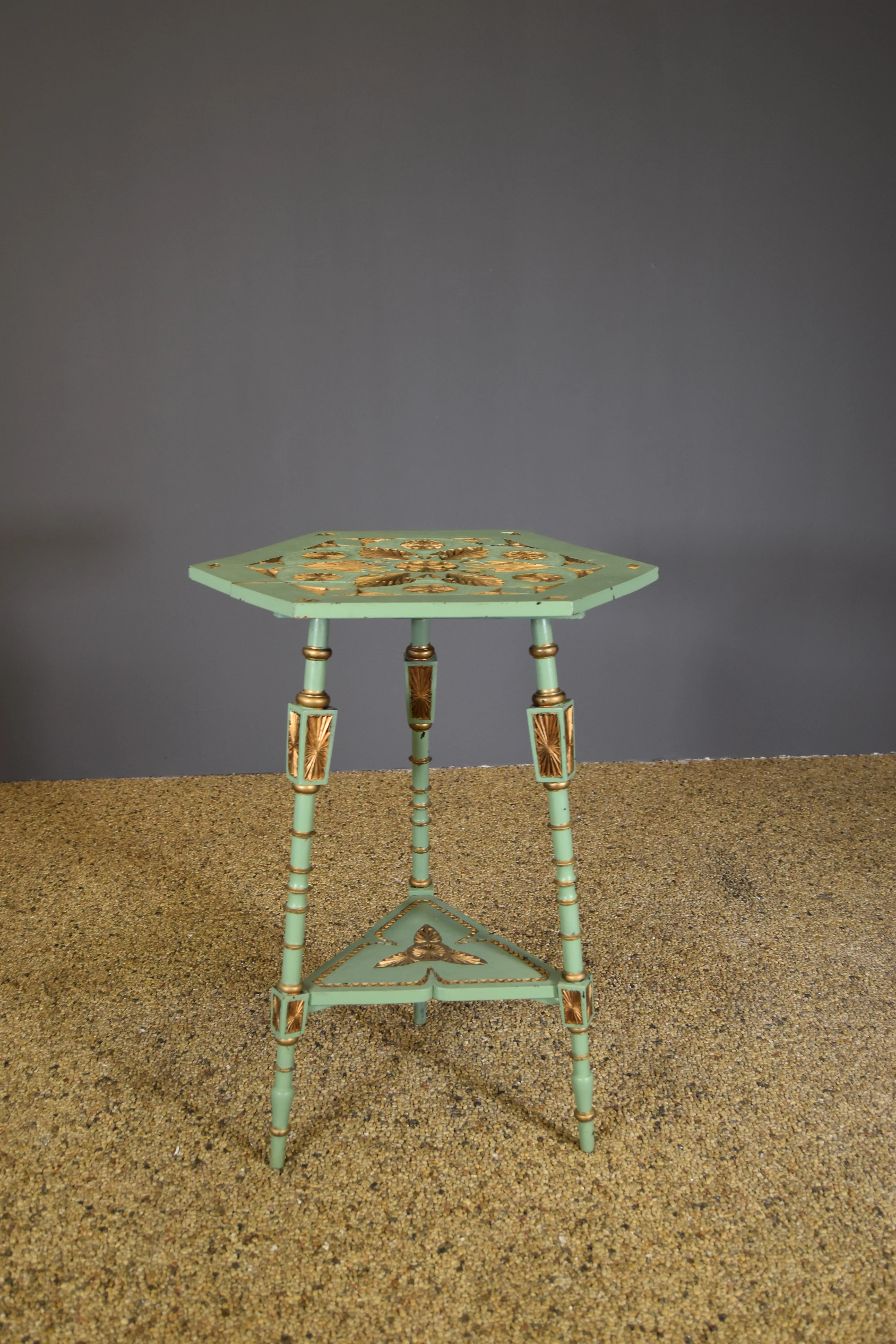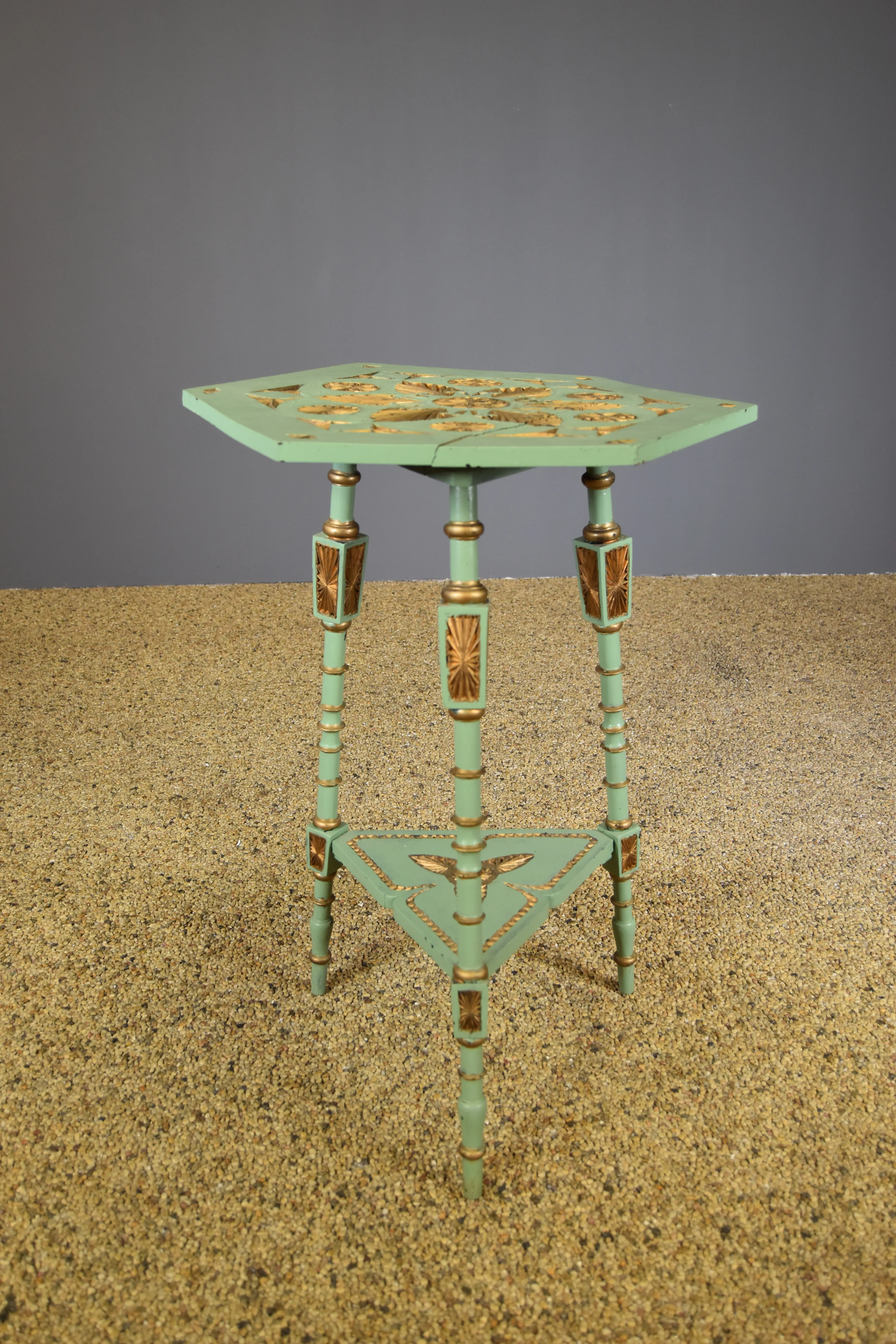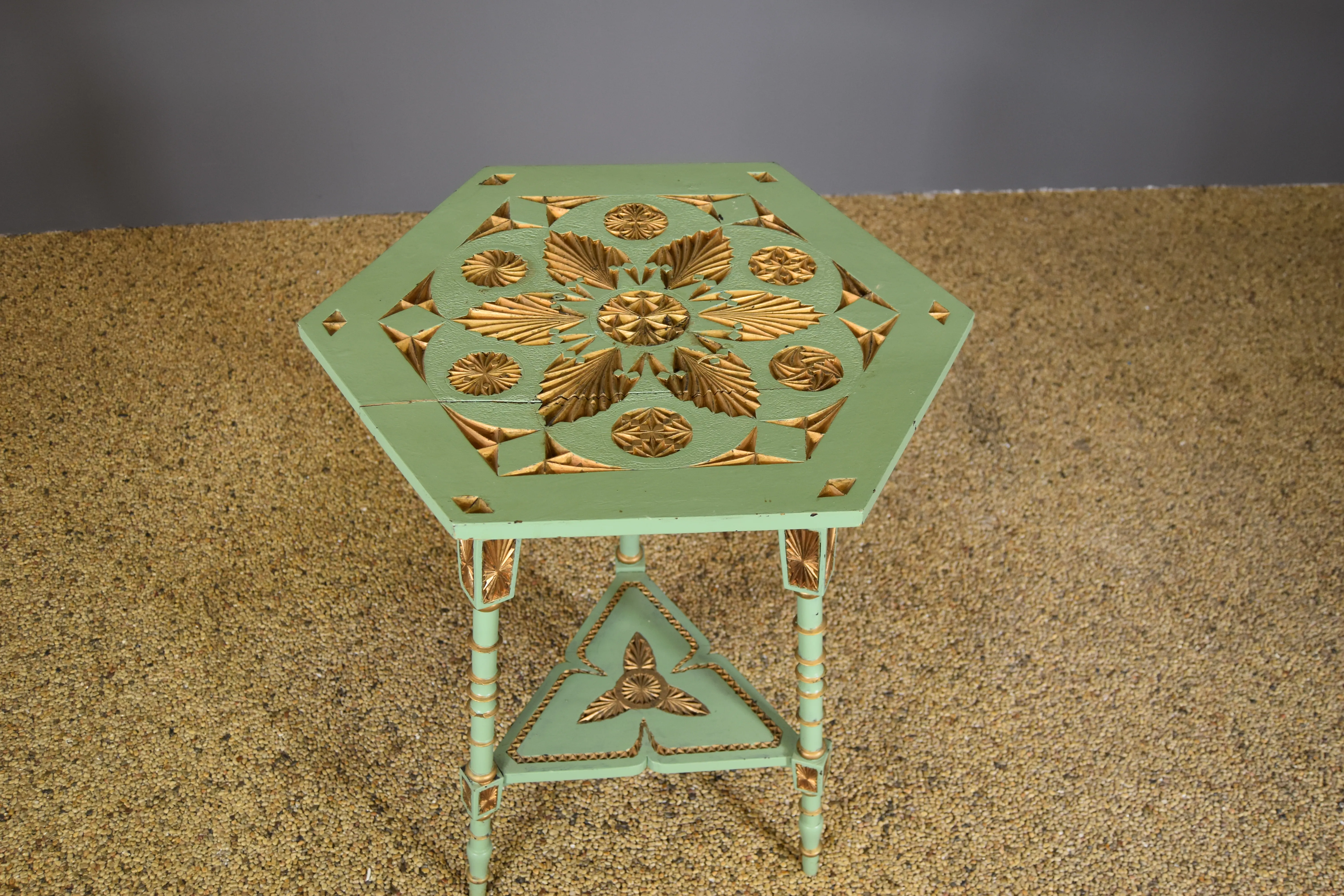 141. Sidobord. Snidat trä. Bemålat.