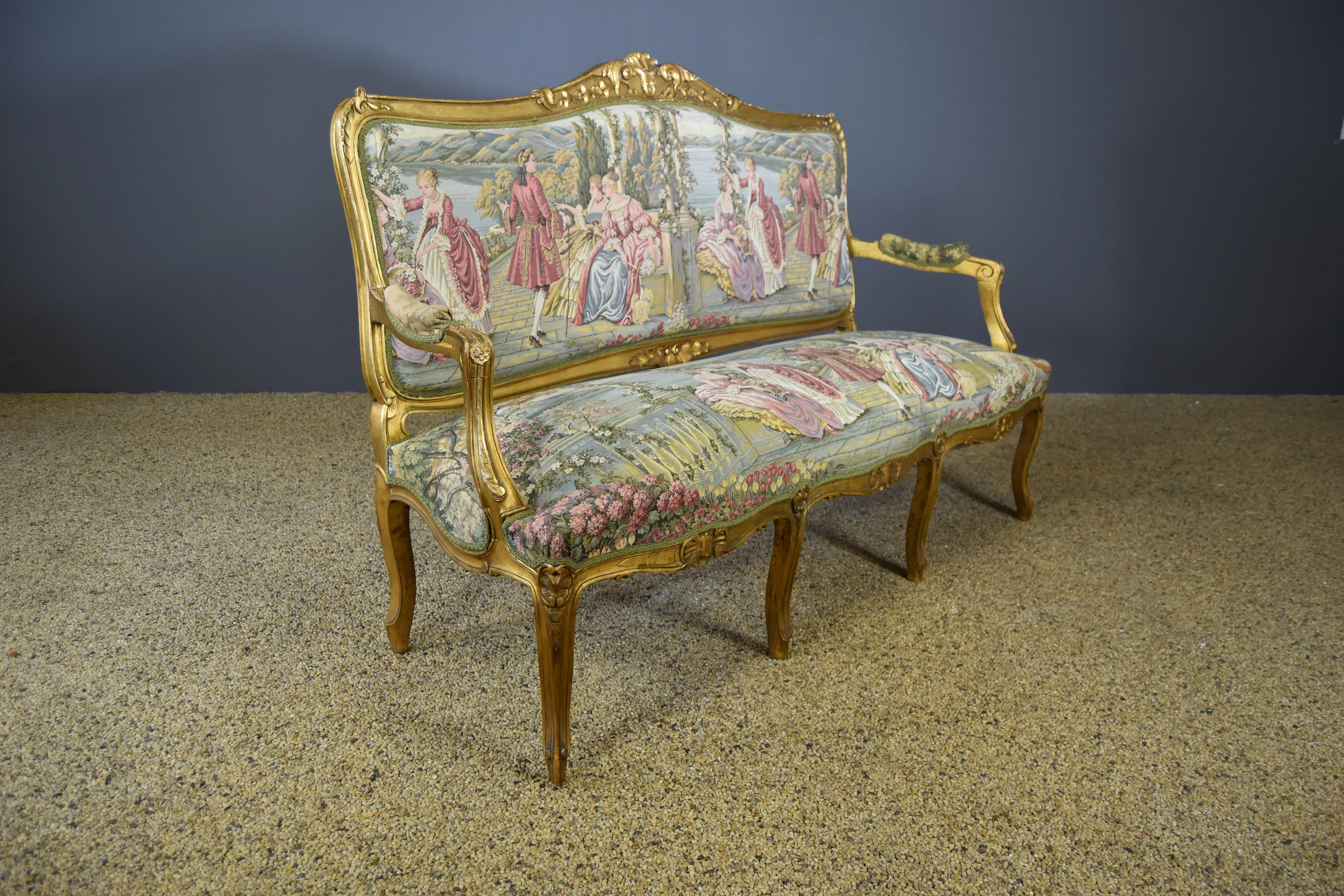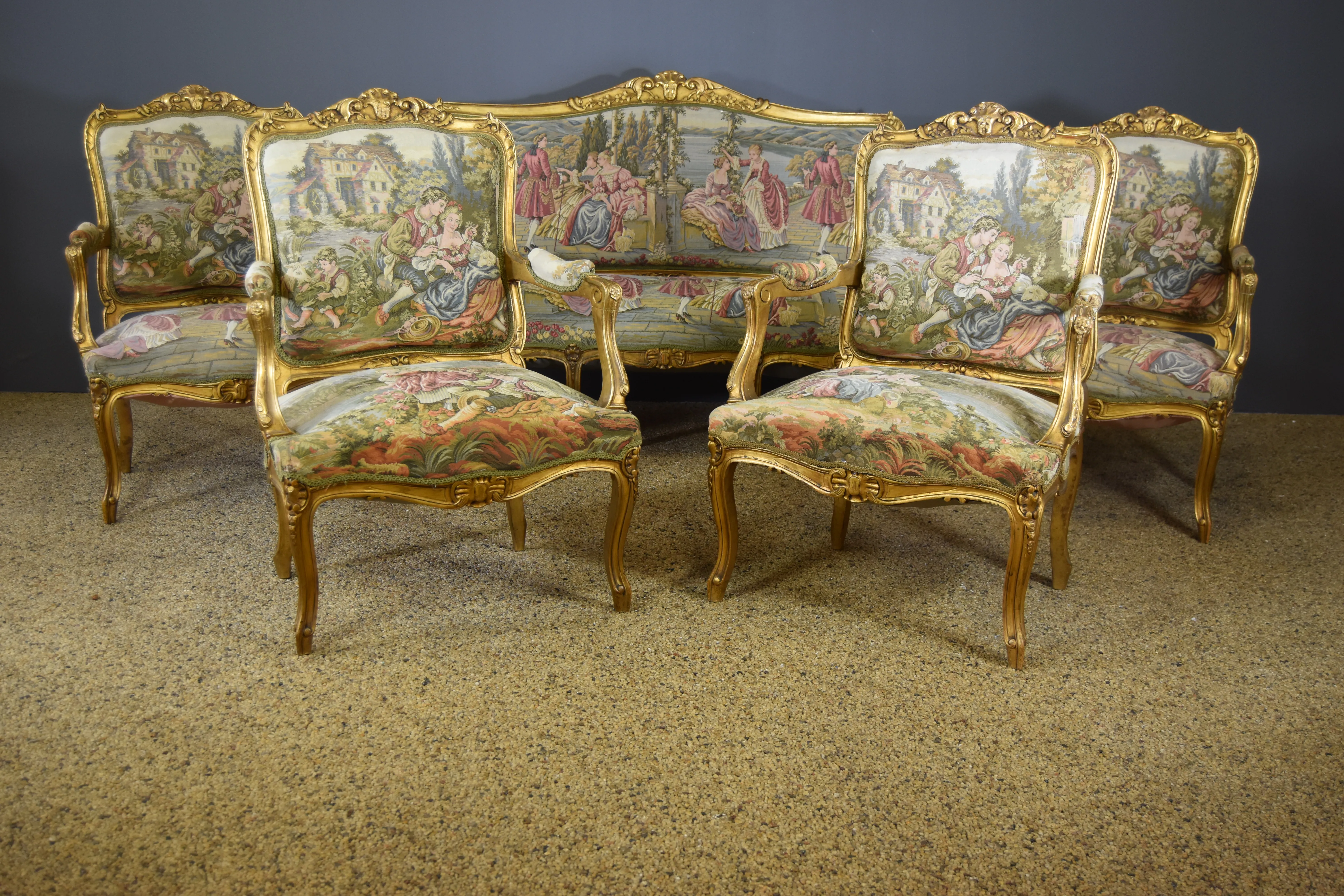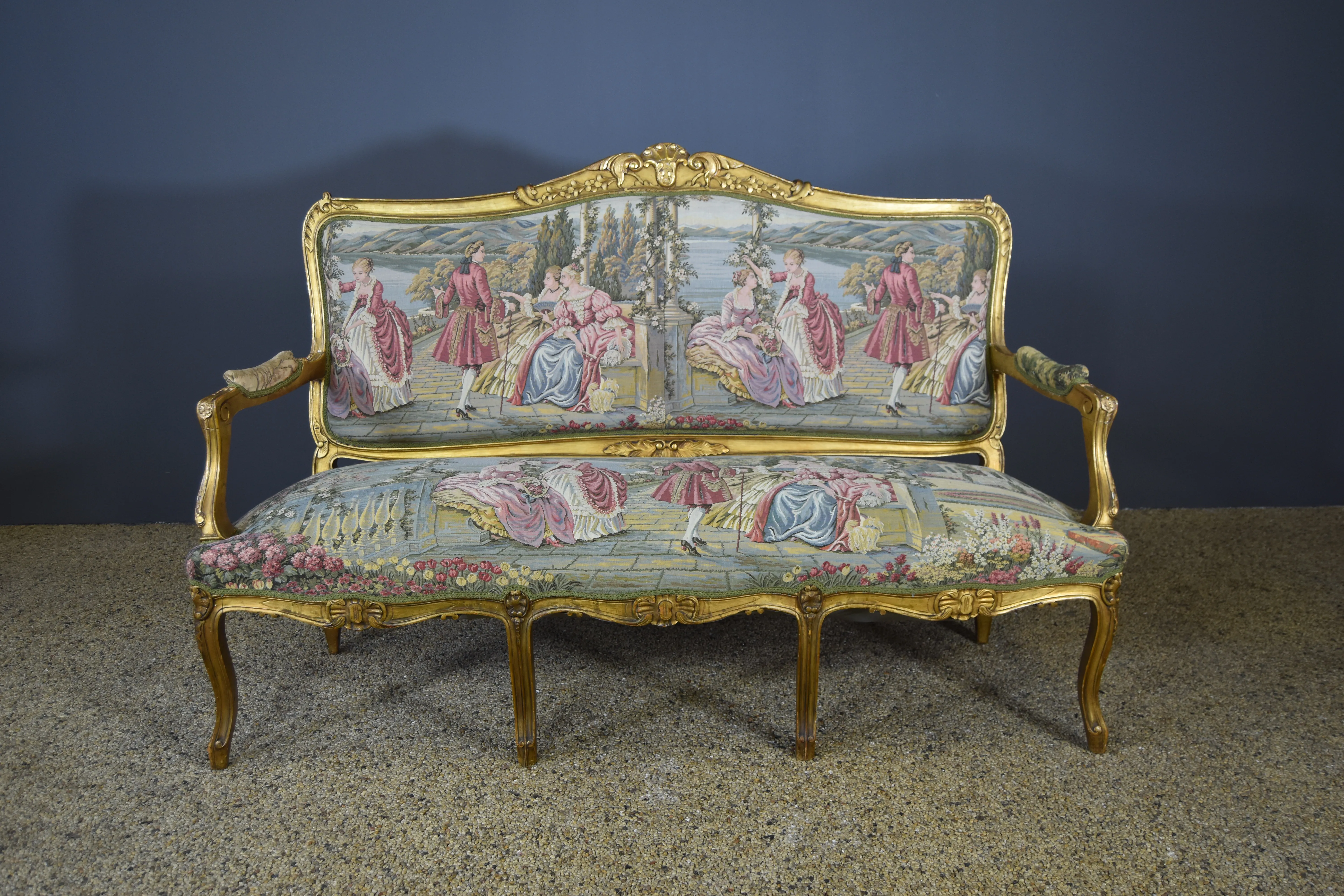 243. Sittgrupp, soffa och 4st karmstolar. Förgyllda, Rokokostil.
