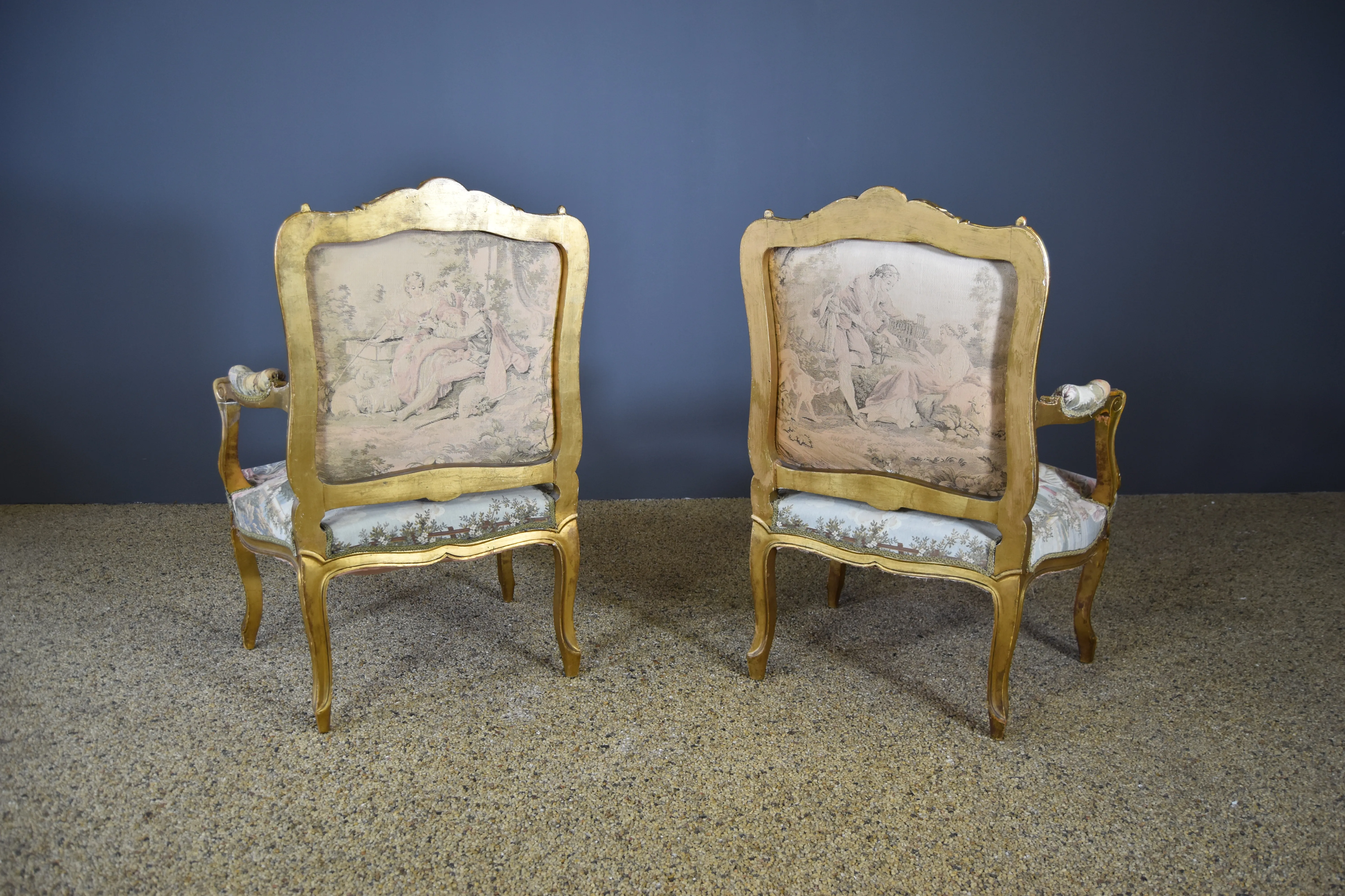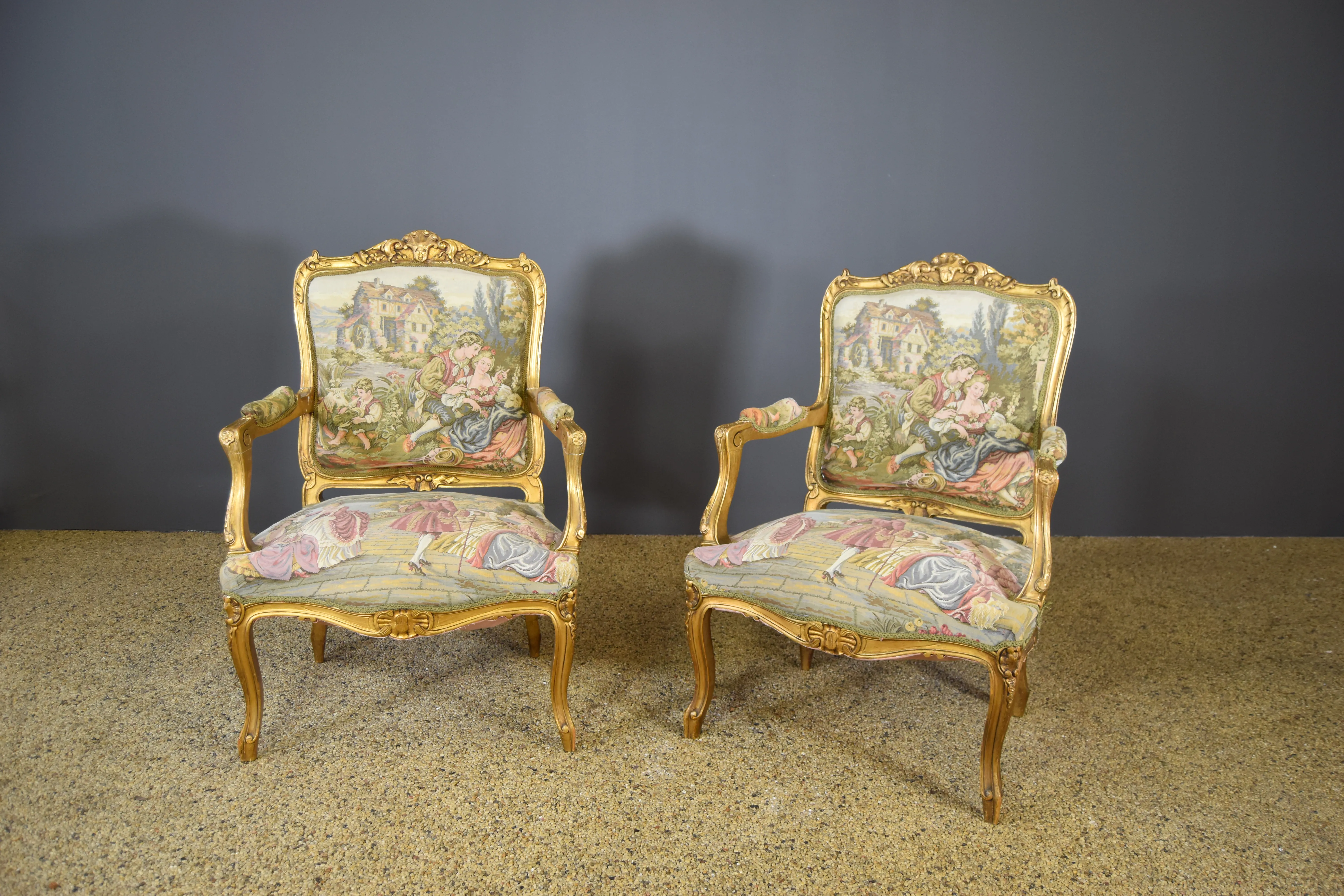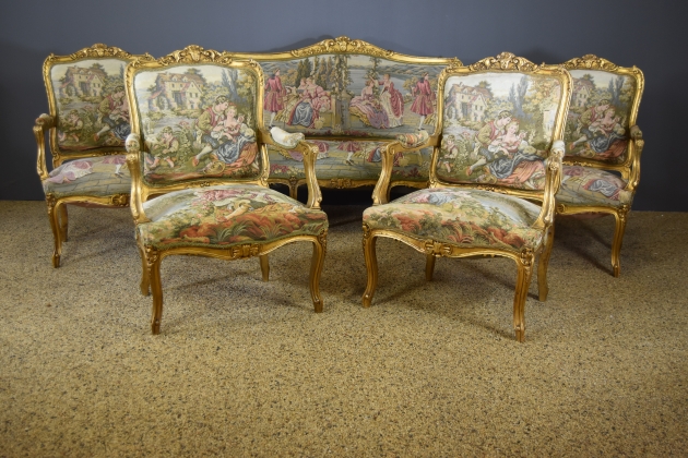 243. Sittgrupp, soffa och 4st karmstolar. Förgyllda, Rokokostil.