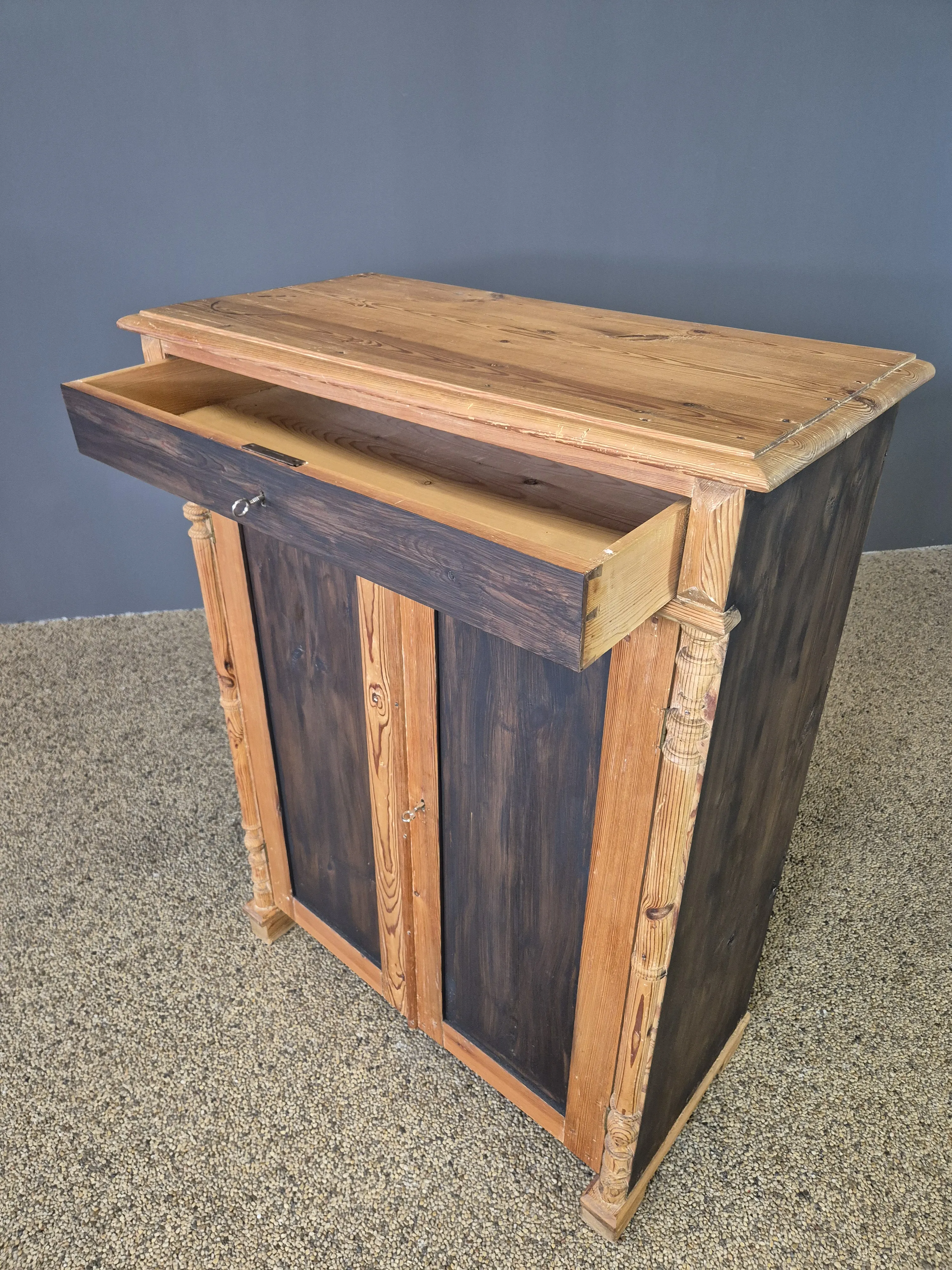 Höjd 127cm Bredd 98cm Djup 47cm. Bruksslitage. Nyckel saknas.