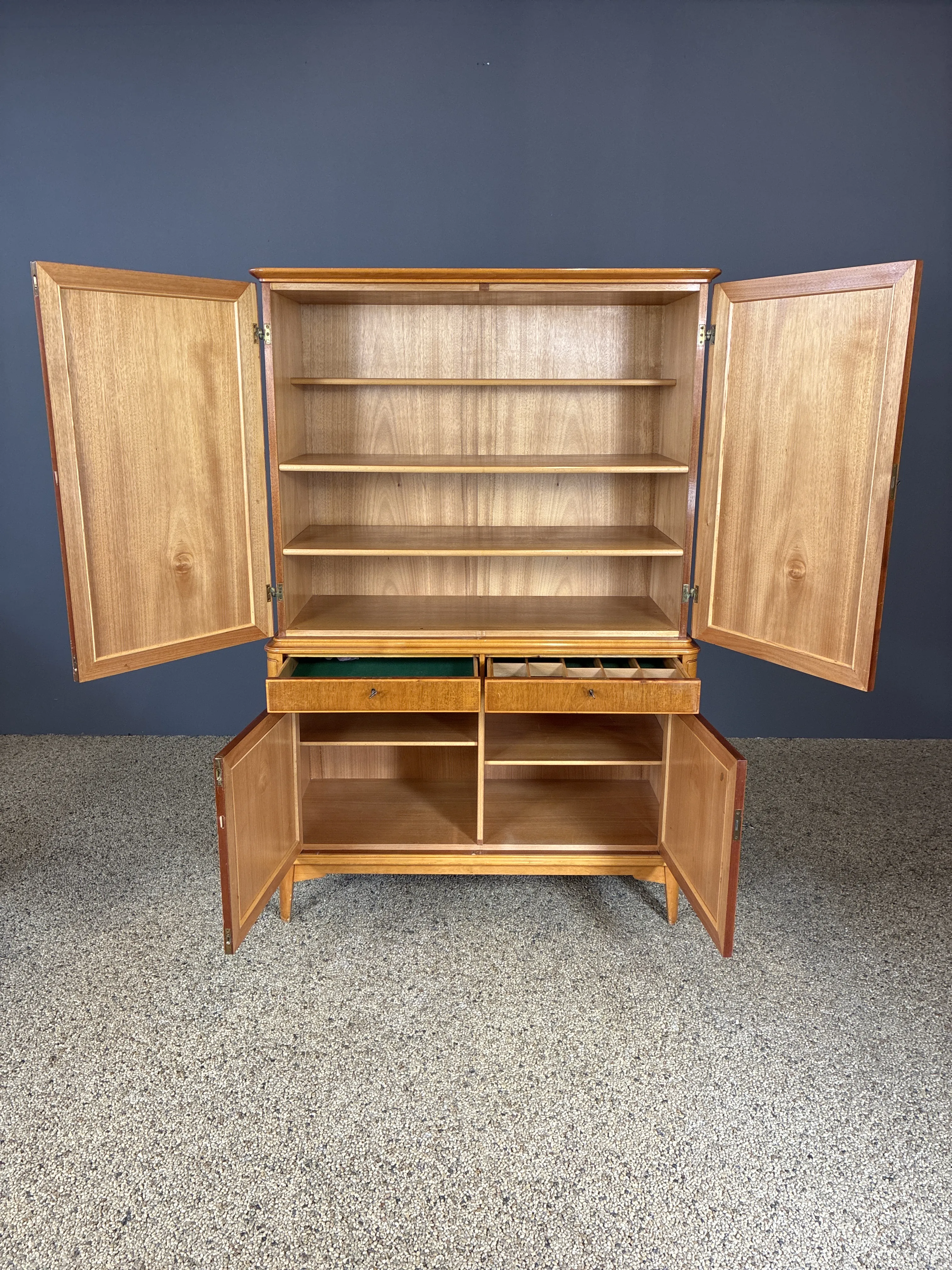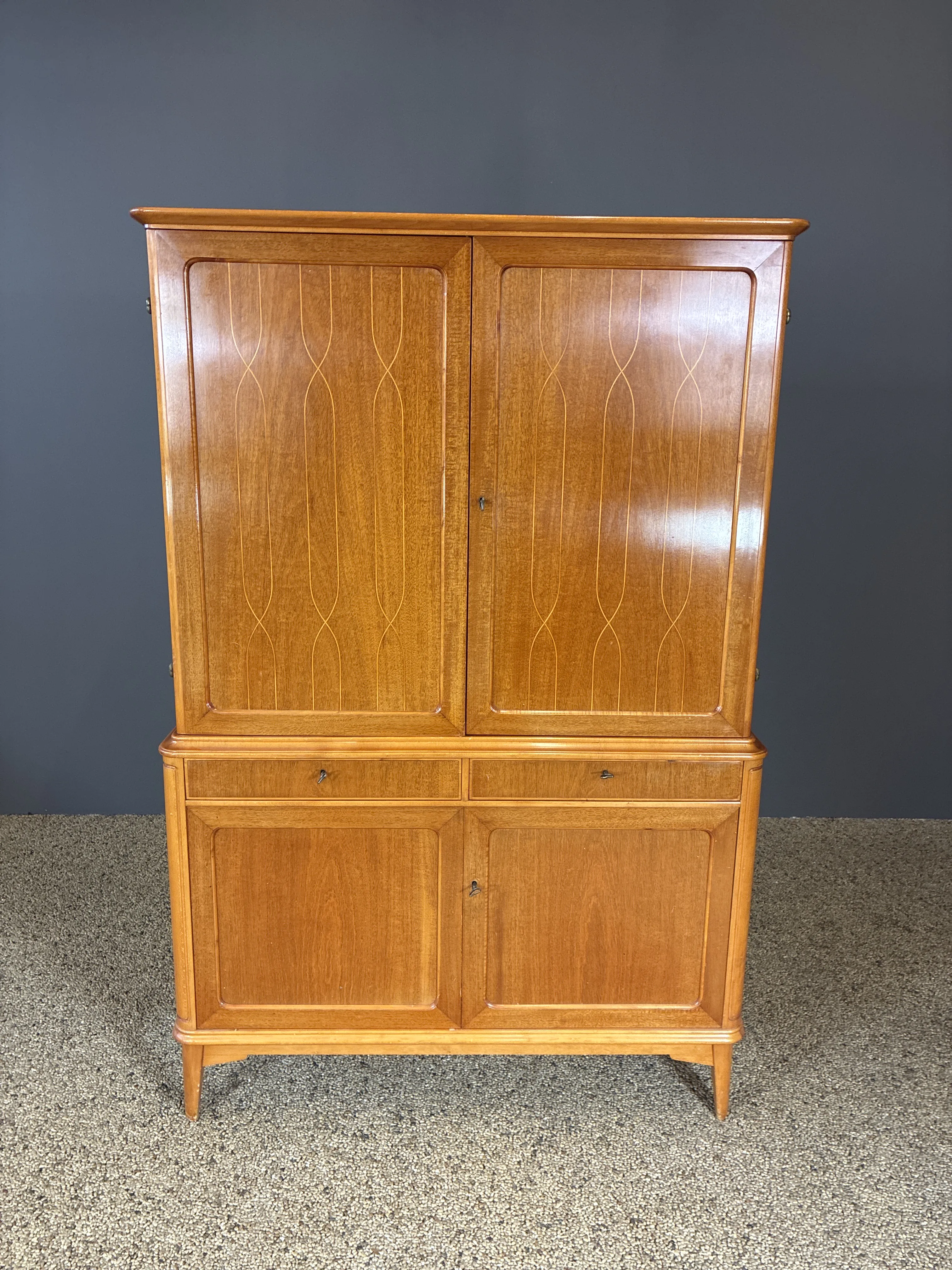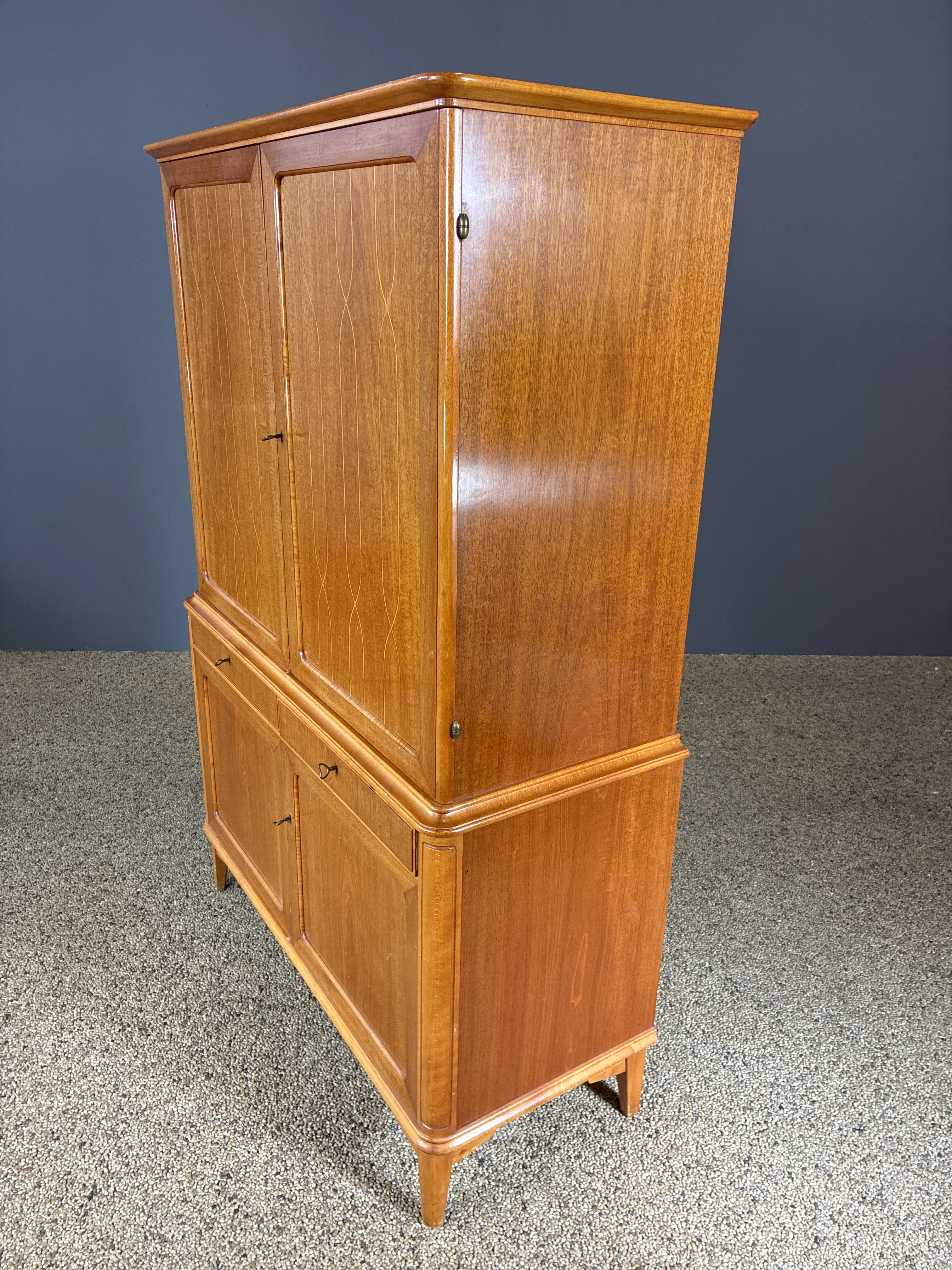 Matsalsskåp liknande David Rosén. Höjd: 176cm. Bredd: 110cm. Djup: 47,5cm. 4st nycklar. Bruksslitage.