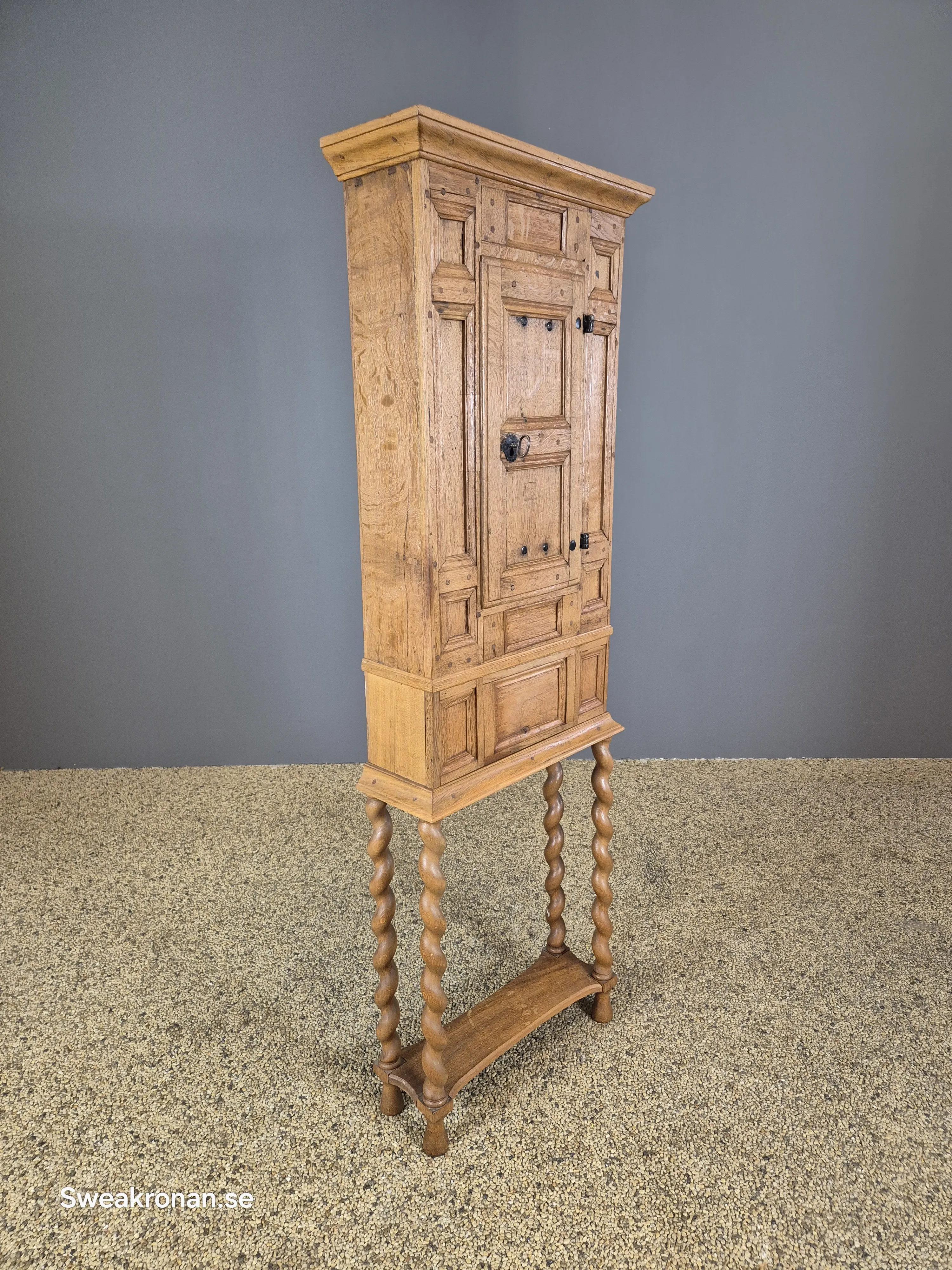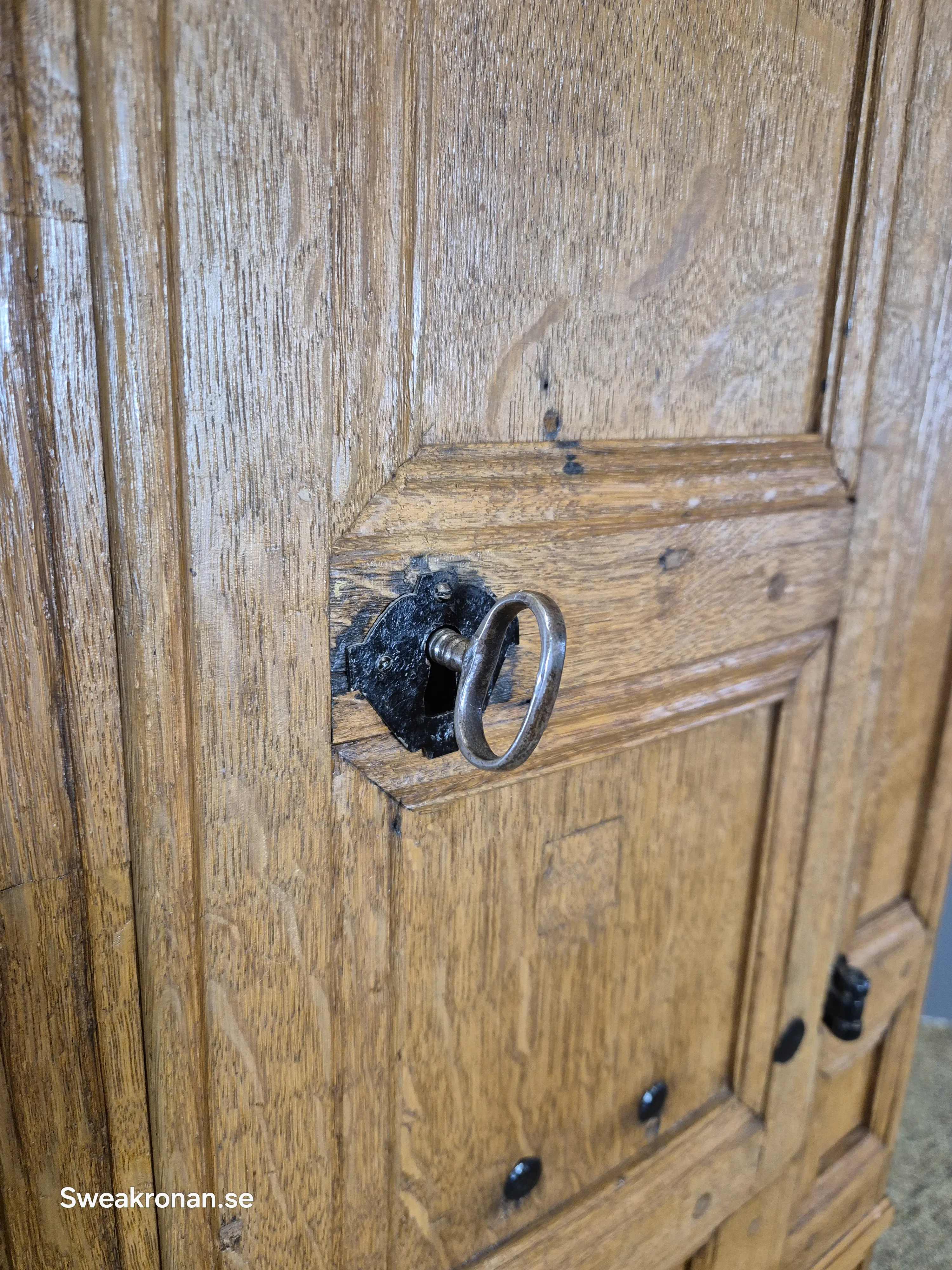 Höjd 157cm Bredd 52cm Djup 18cm. Bruksslitage. Låset gått i baklås.