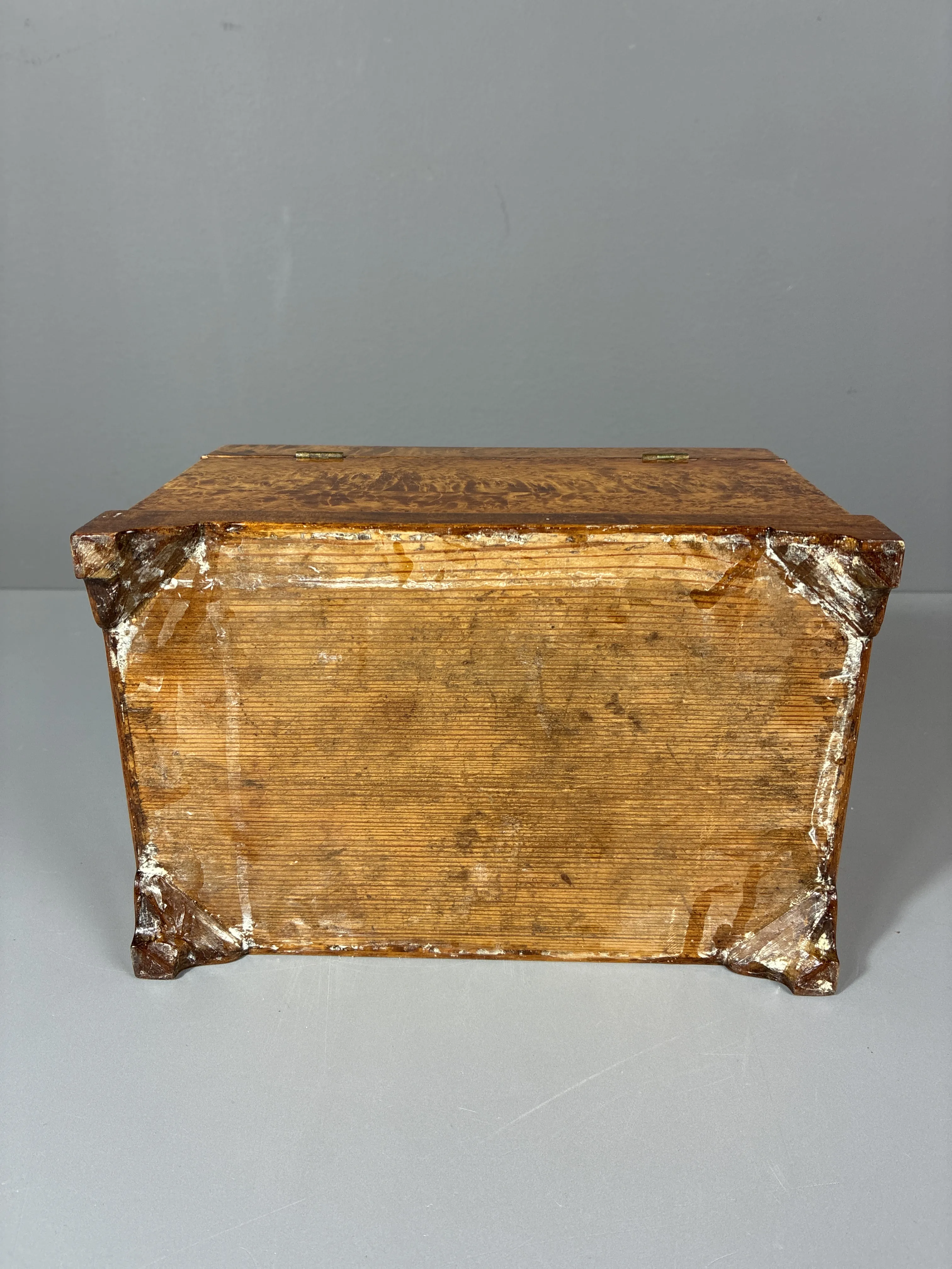 Detaljer i mässing, nyckel saknas. Åldersslitage. H: 14,5cm, B: 22,5cm D: 15cm