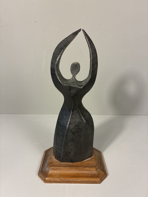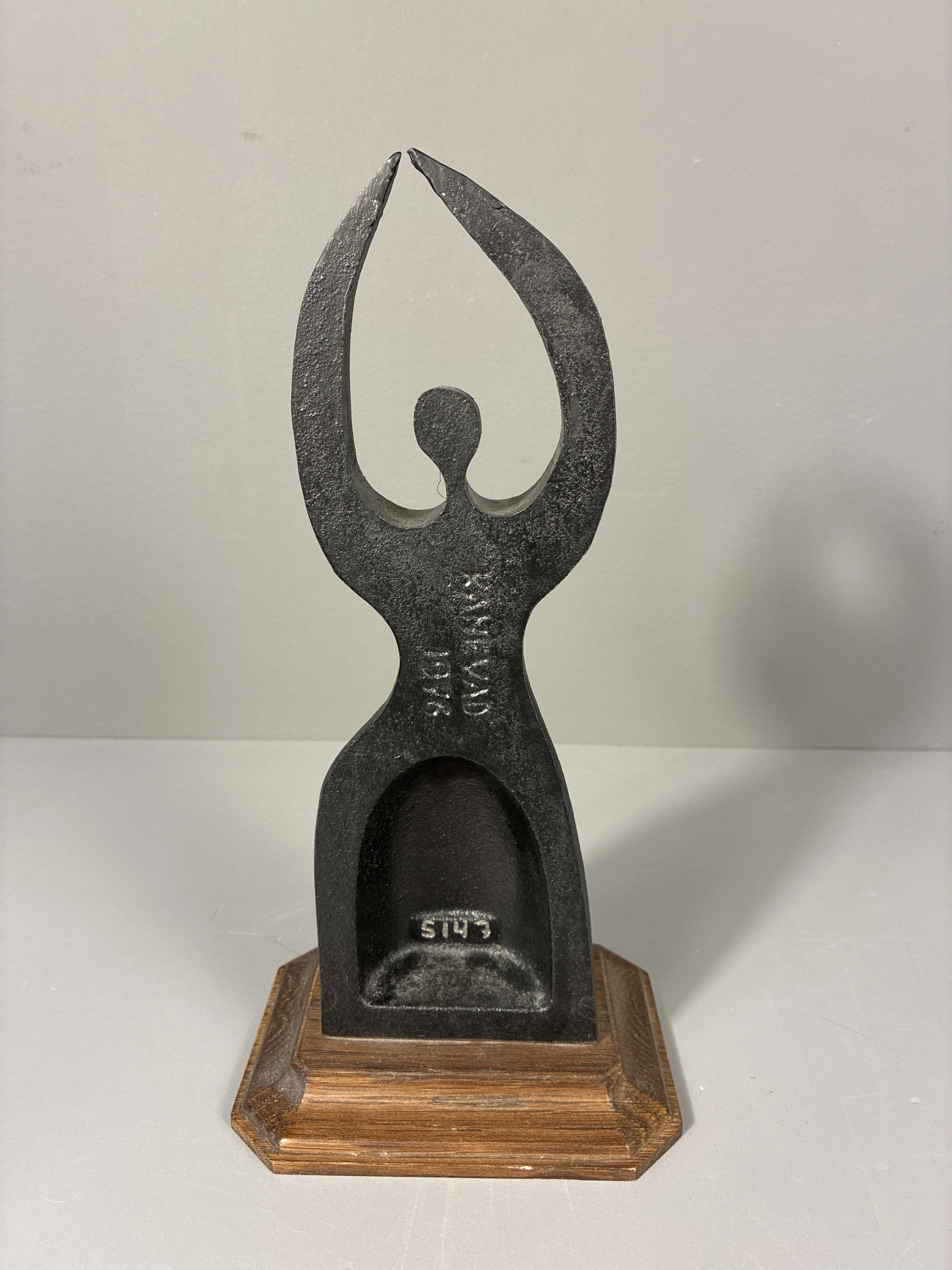Signerad i godset 1976. Numrerad 5147. Gjutjärn och platta i trä. Höjd: 30cm.