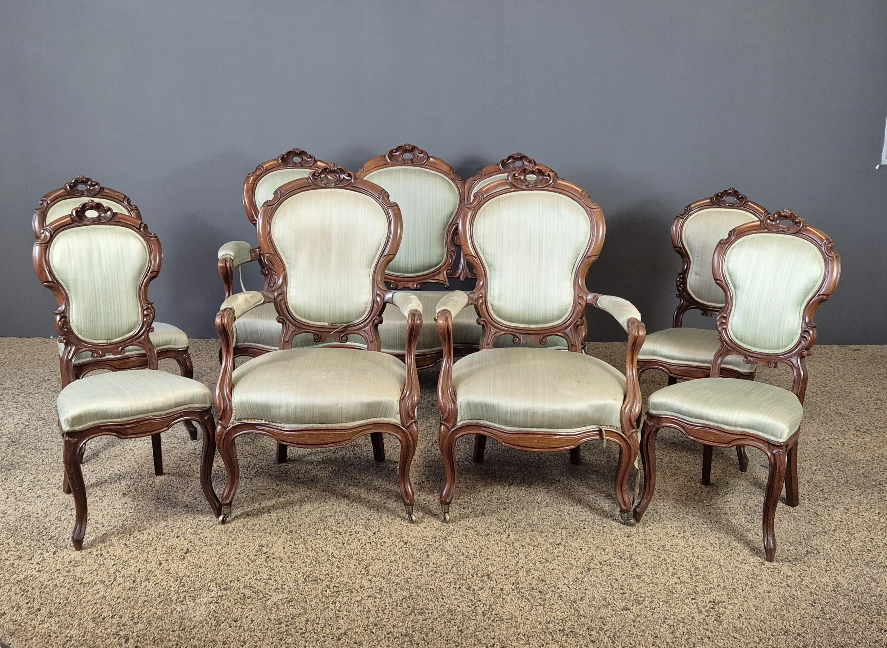 50. Soffa, 2st karmstolar och 4st stolar. Nyrokokostil.