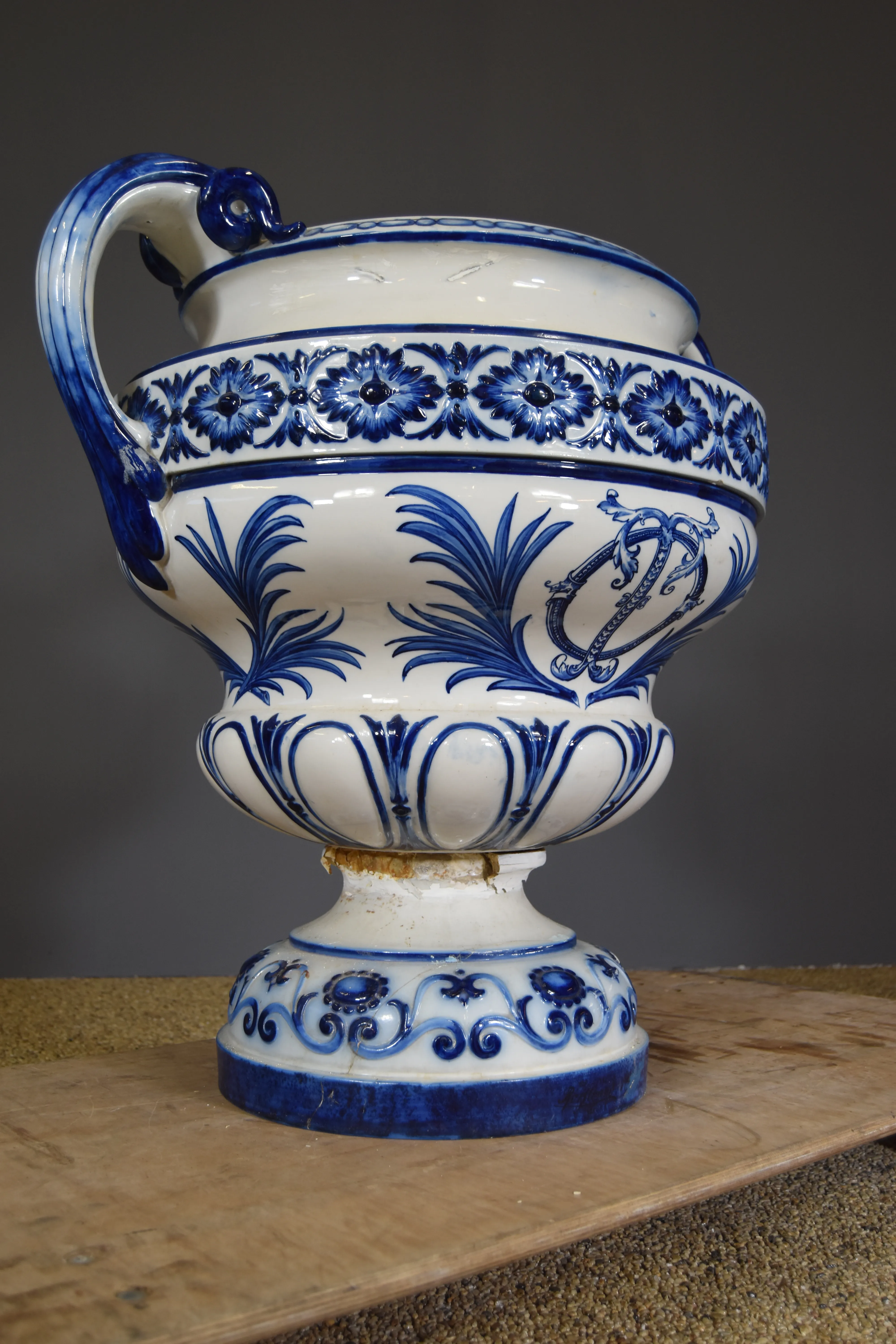 Höjd 70cm Bredd 75cm. Sprickor. Slitage. Lagad.