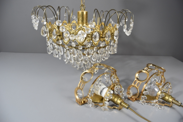 Takarmatur och två vägglampetter med prismor.