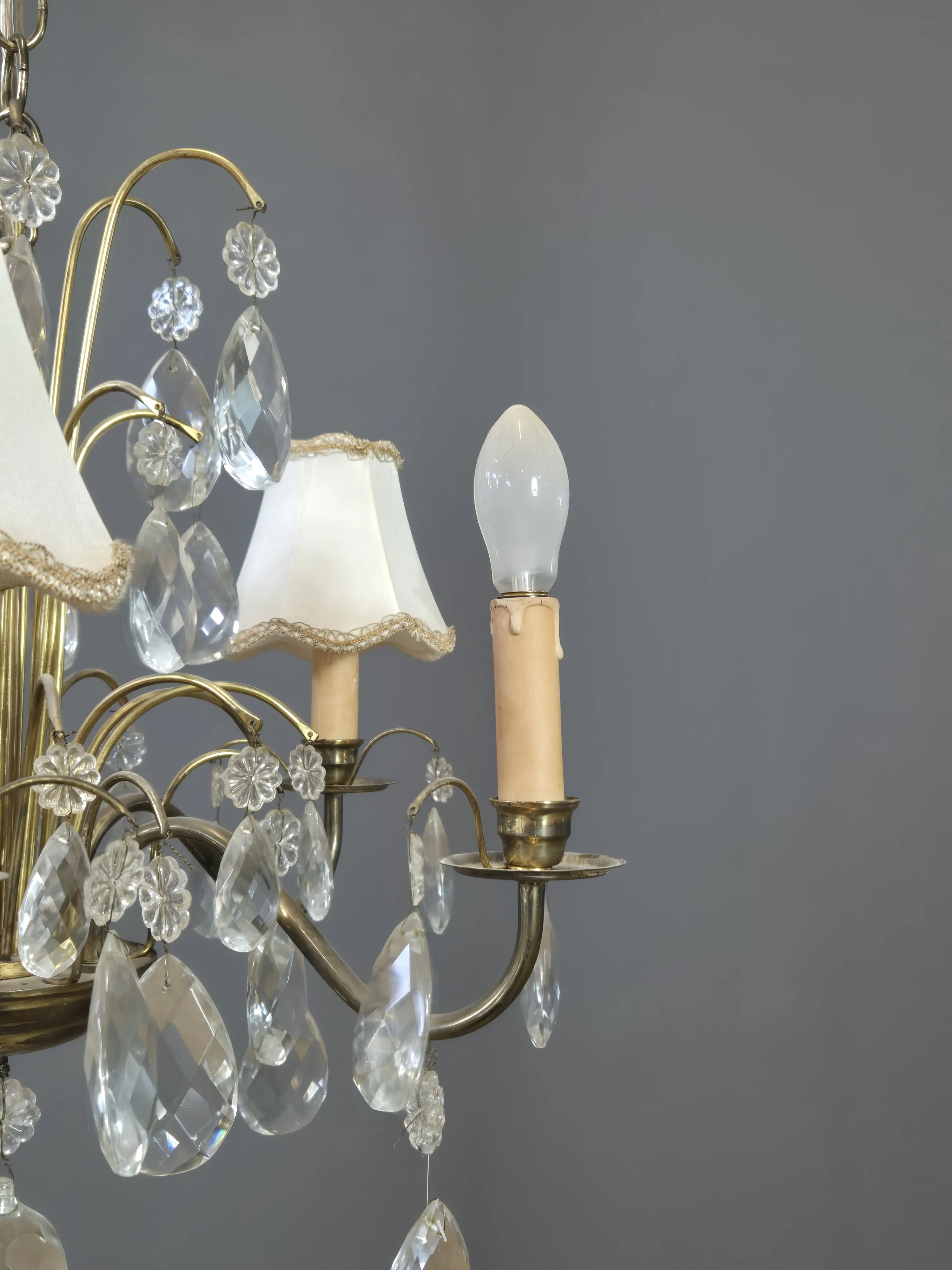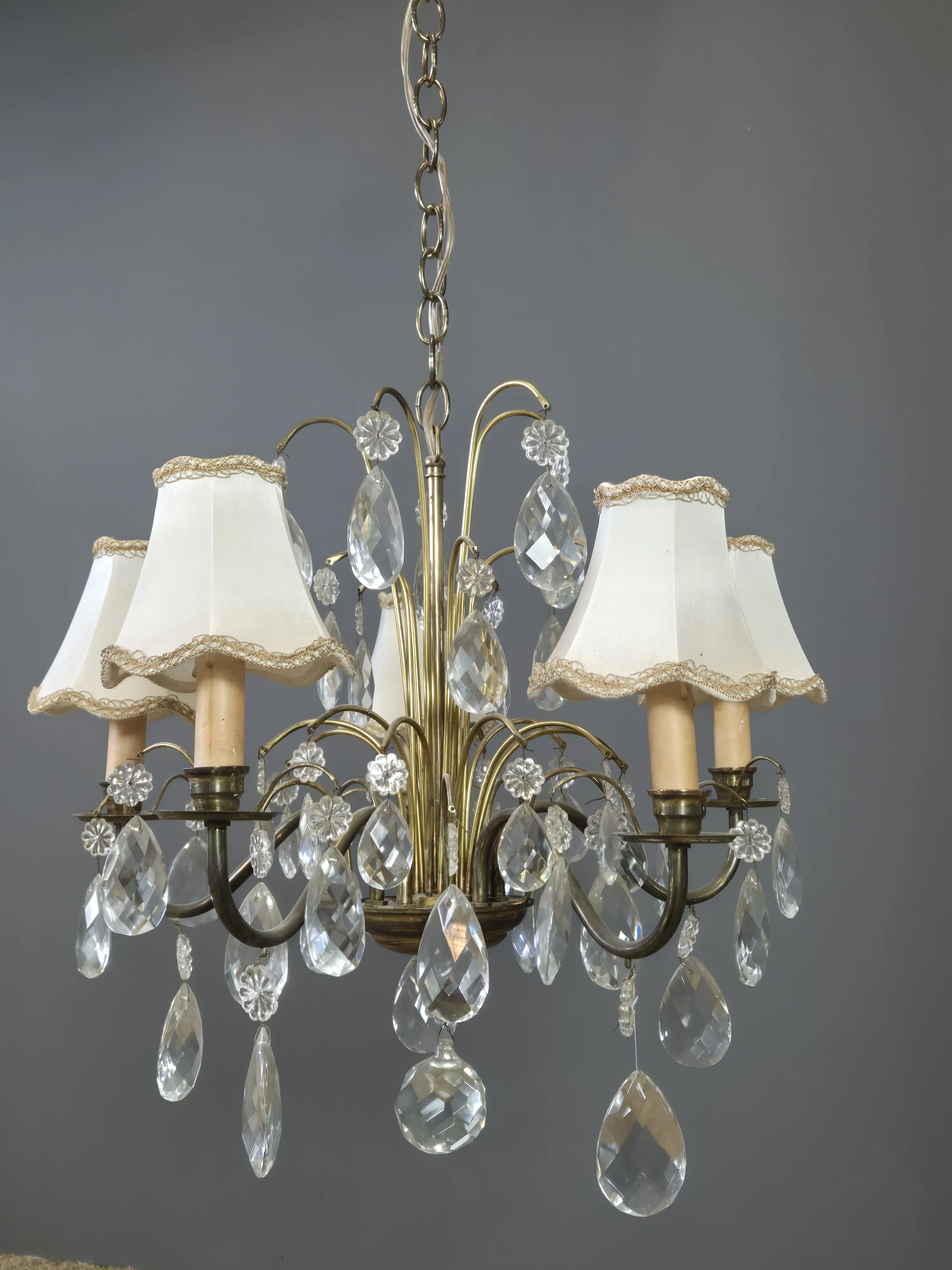 Kristallkrona med skärmar. Höjd ink kedja ca 96cm.