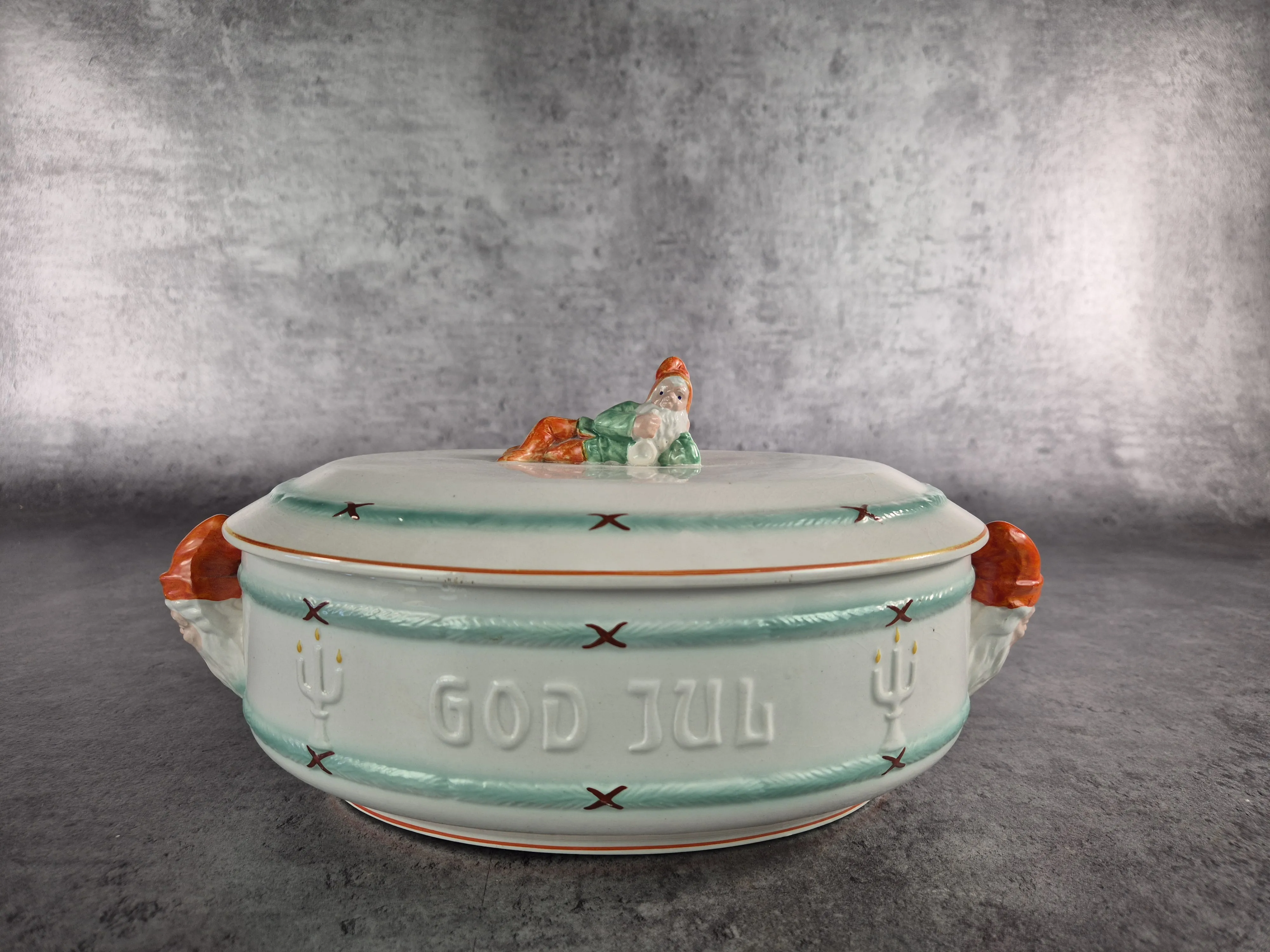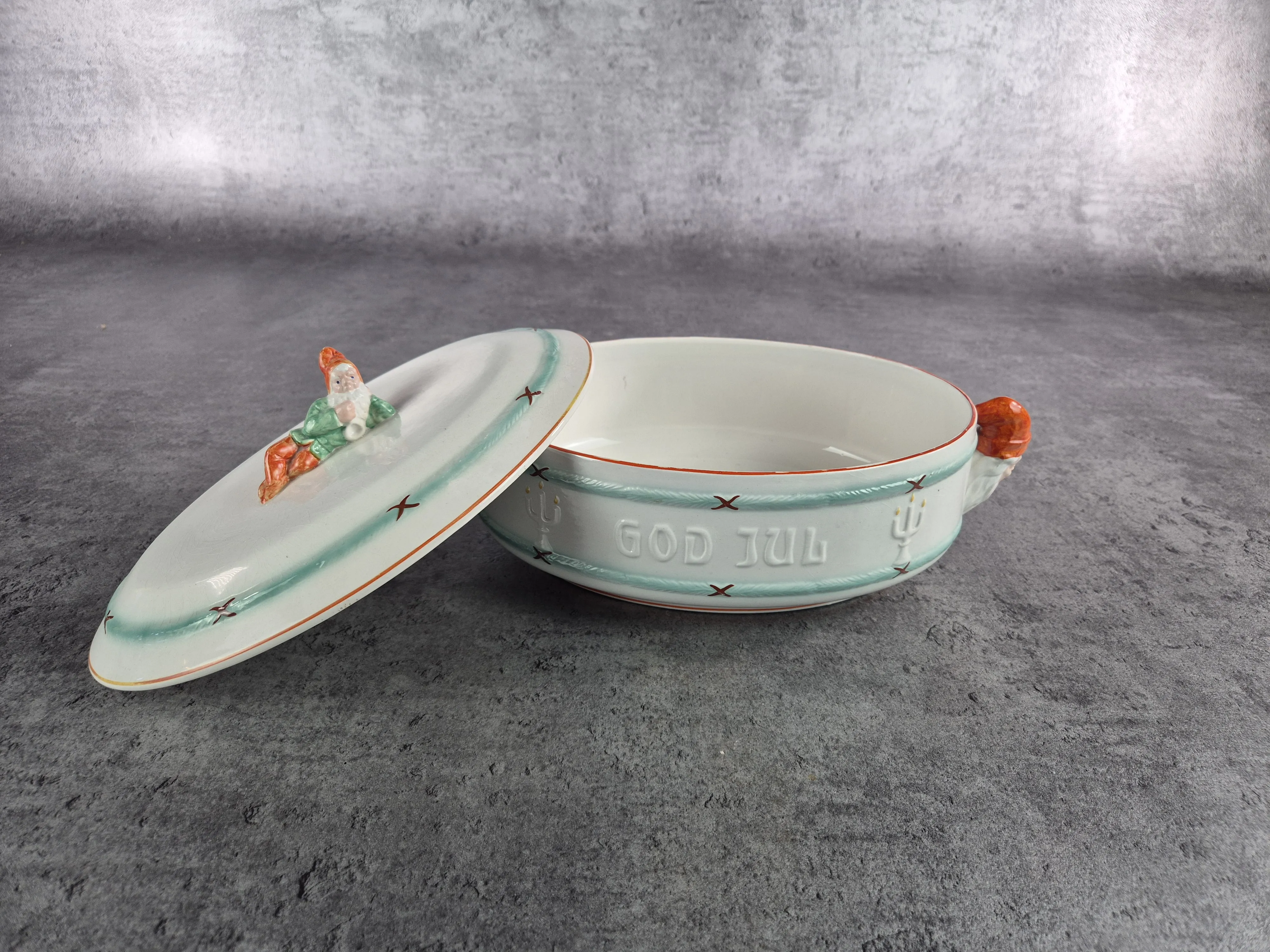 370.Terrin med lock, "God Jul". Gustavsberg. 1800/1900-tal.