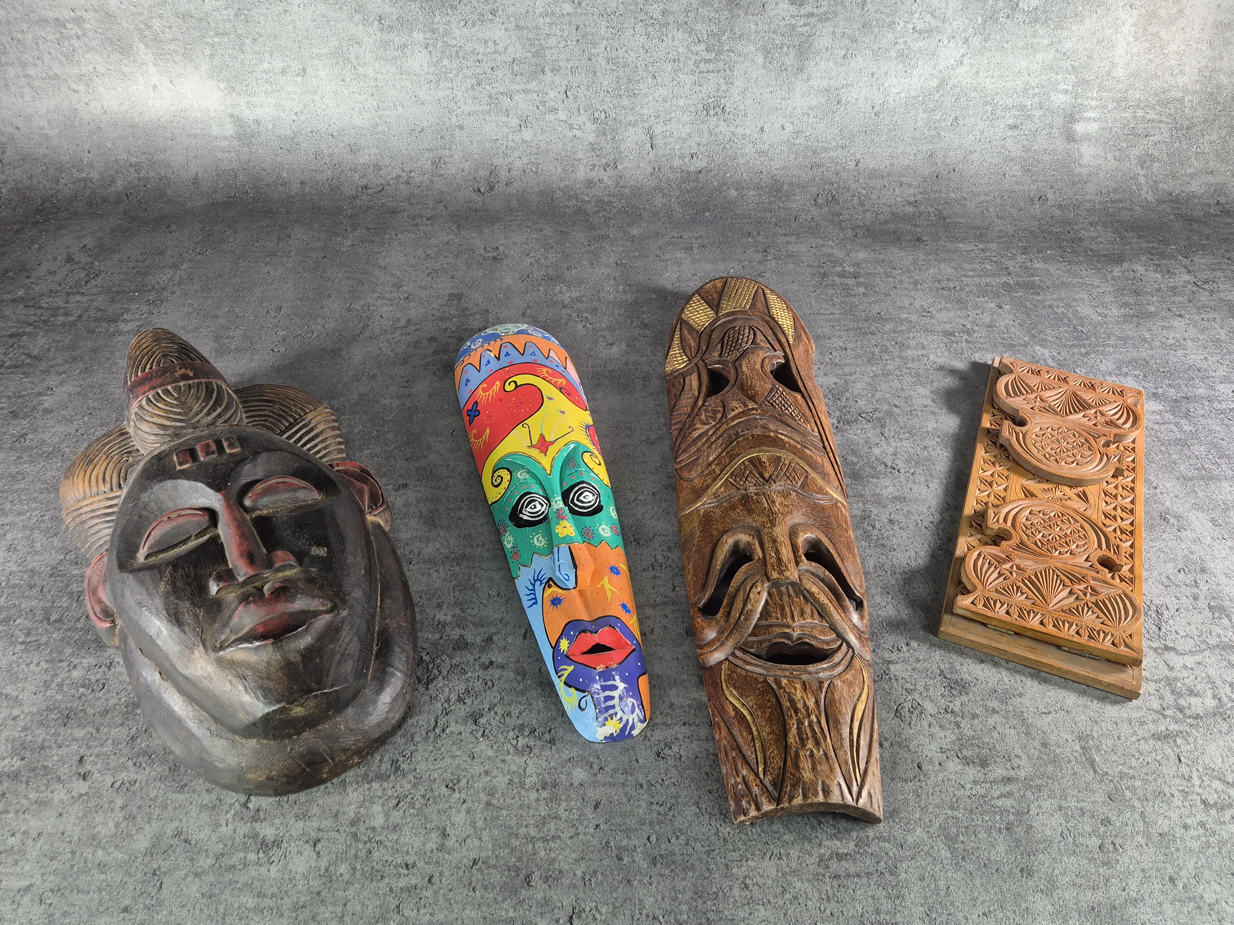 Längsta trämasken: Längd ca 60cm. Bruksslitage. Skivorna ej genomkollade.