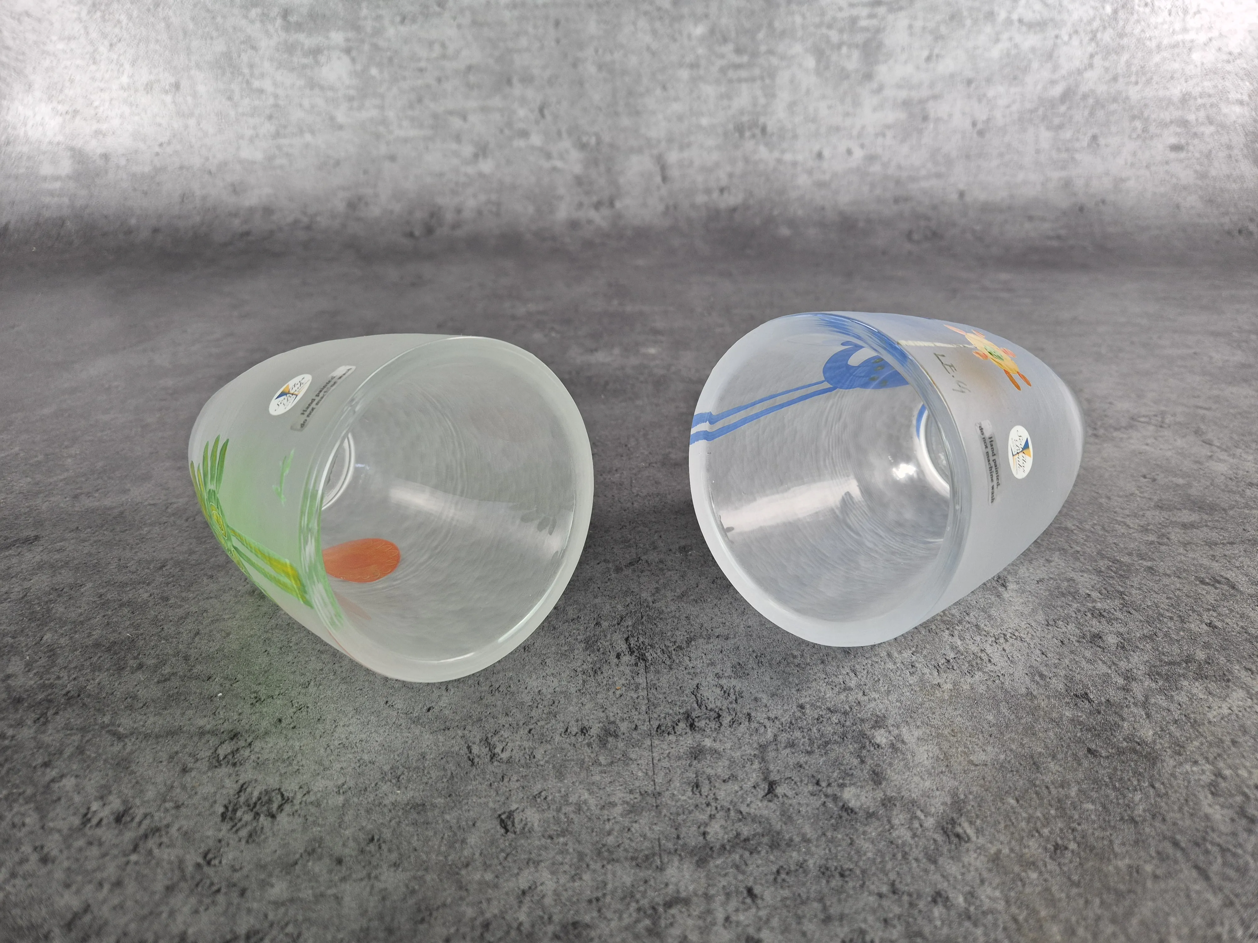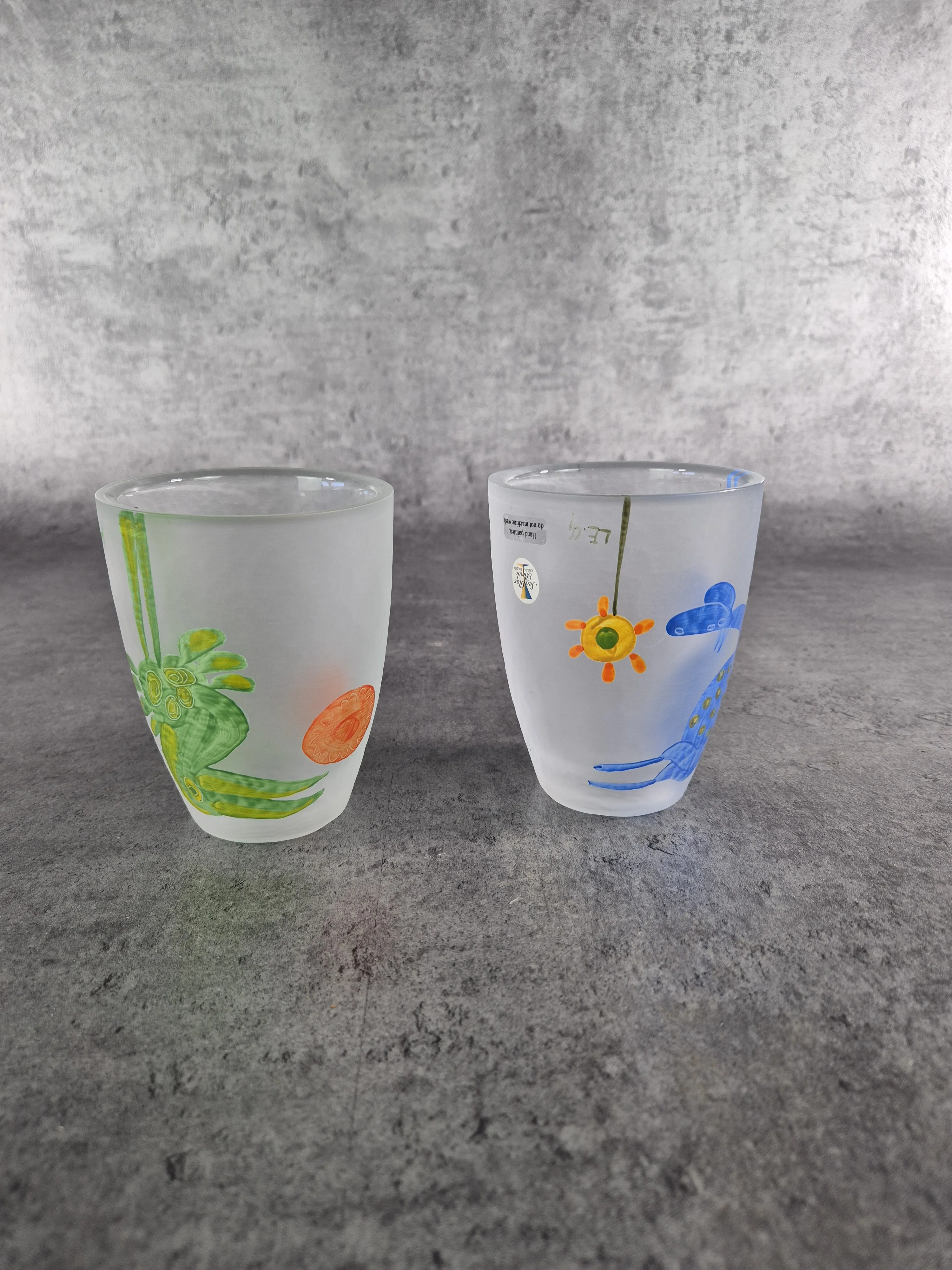 371.Vas och två ljuslyktor. Lena Engman, Sea Glasbruk.
