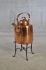 12. Kopparkanna med tillhörande ställning i smide, 63cm hög upp till handtaget
