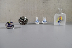 Slitage. Något sneda. Höjd ca 7cm Diameter bottenplatta ca 8,5cm.
