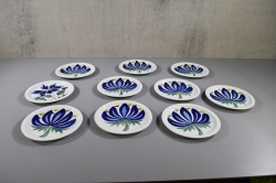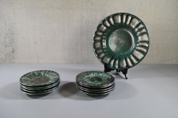 Bruksslitage. Uppläggningsfat: Diameter ca 35cm. Assietter: Diameter ca 19cm.